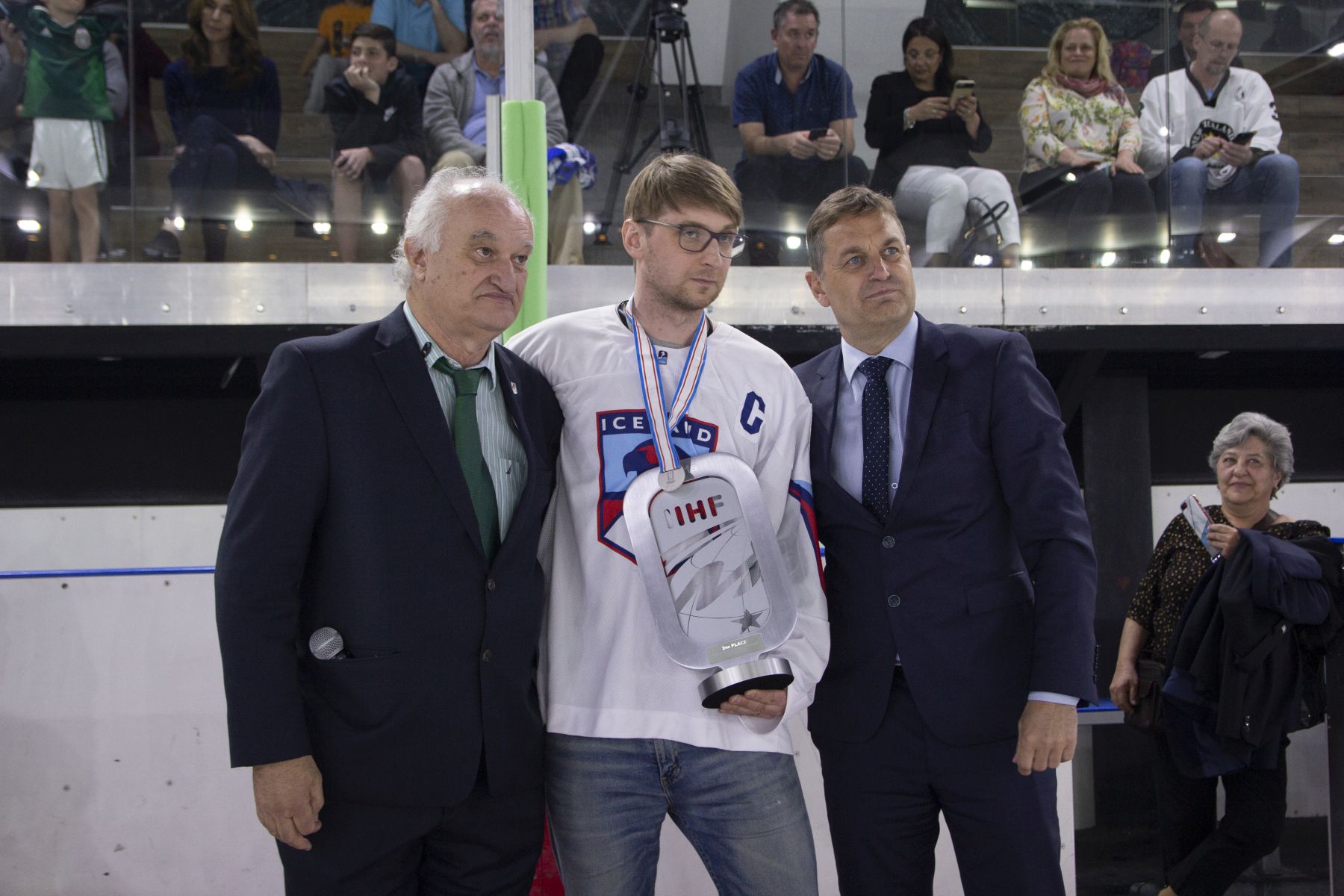 Among the individual awards, Sherbatov was unsurprisingly chosen as top forward. Iceland’s Dennis Hedstrom was voted best goalie, his save percentage of 88.66 highlighted the impressive scoring on view throughout the tournament. Iceland allowed 15 goals in its five games, the least porous defence at the event. New Zealand’s Stefan Amston was picked as best defenceman. He had 5 (2+3) points in the competition.