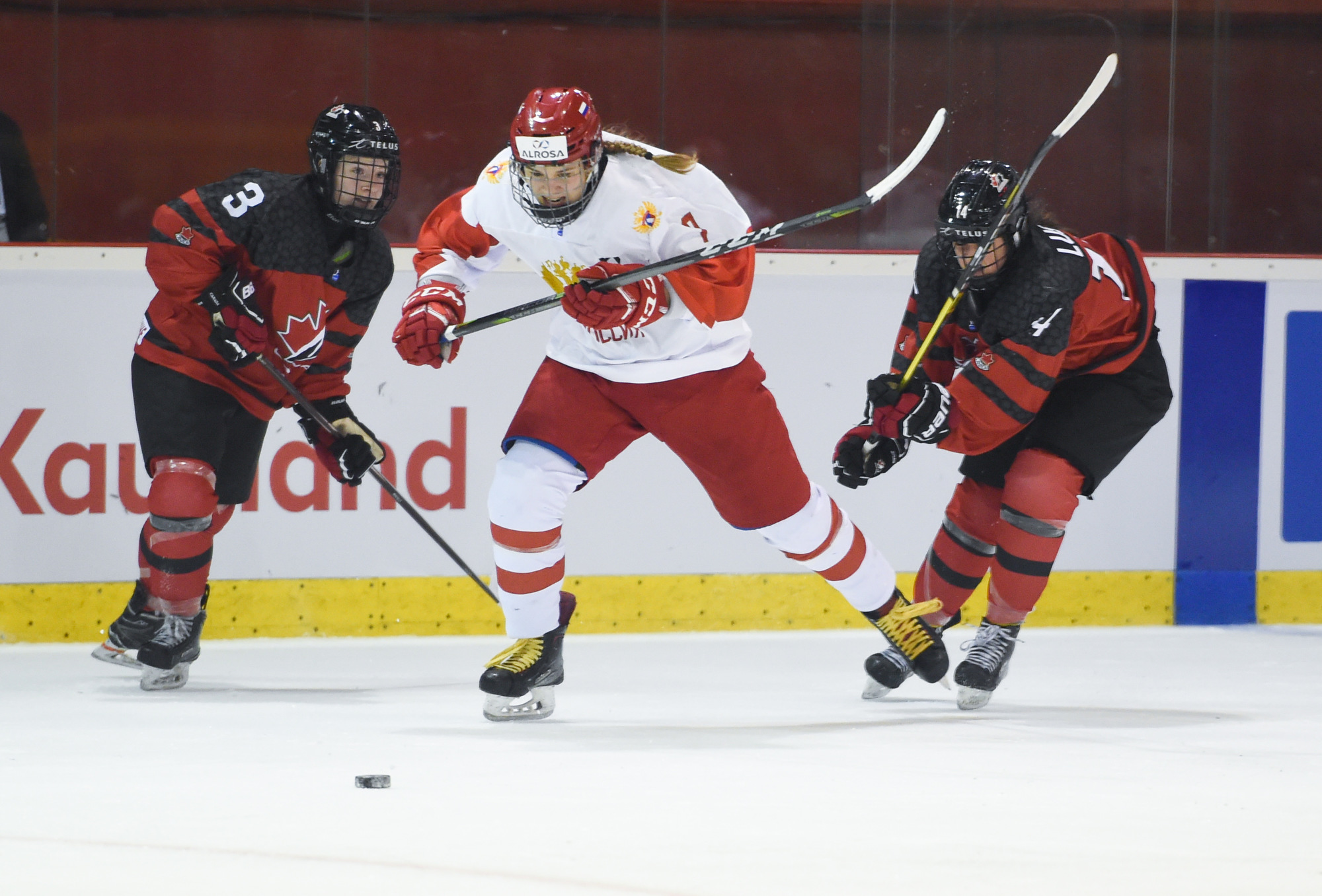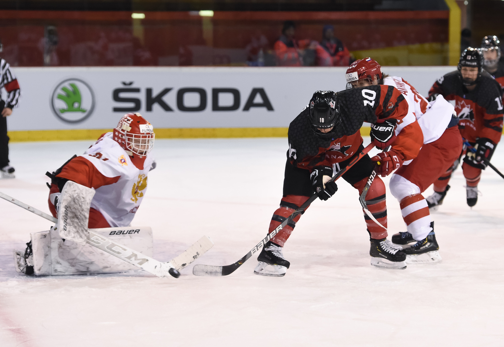 And the 16-year-old SKIF Nizhny Novgorod forward tied the game three minutes later when she took a Korzhakova feed and wired a wrister to the top shelf from the top of the right-hand circle. Canada’s hopes of a comfortable start to its title defence were shattered and the game was on its way to overtime. There was still one scare for Russia when Ashley Messier let fly from the face-off spot in the last minute and Alpatova did well to hold on in a melee in front of her net to make her 30th save of the game and secure a point for her team. However, the Tornado youngster was beaten for a third time when Gosling struck three minutes into the extras.