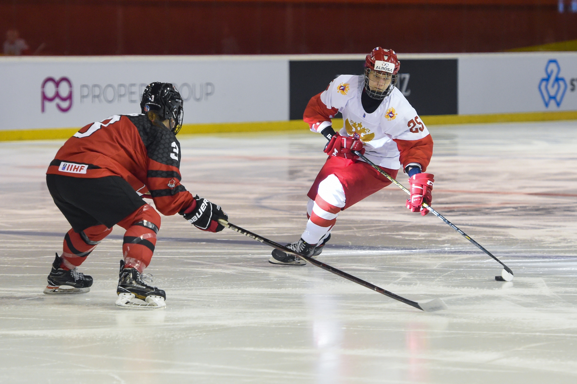 Russia battled back from 0-2 to give defending champion Canada a real scare in an entertaining opening game of the World Women’s U18 Championship in Bratislava. Despite struggling at times in the first period, the Russians refused to allow Canada to run away with the game. And the third period saw a big fightback as goals from Veronika Korzhakova and Kristi Shashkina tied the game at 2-2 and took us into overtime.