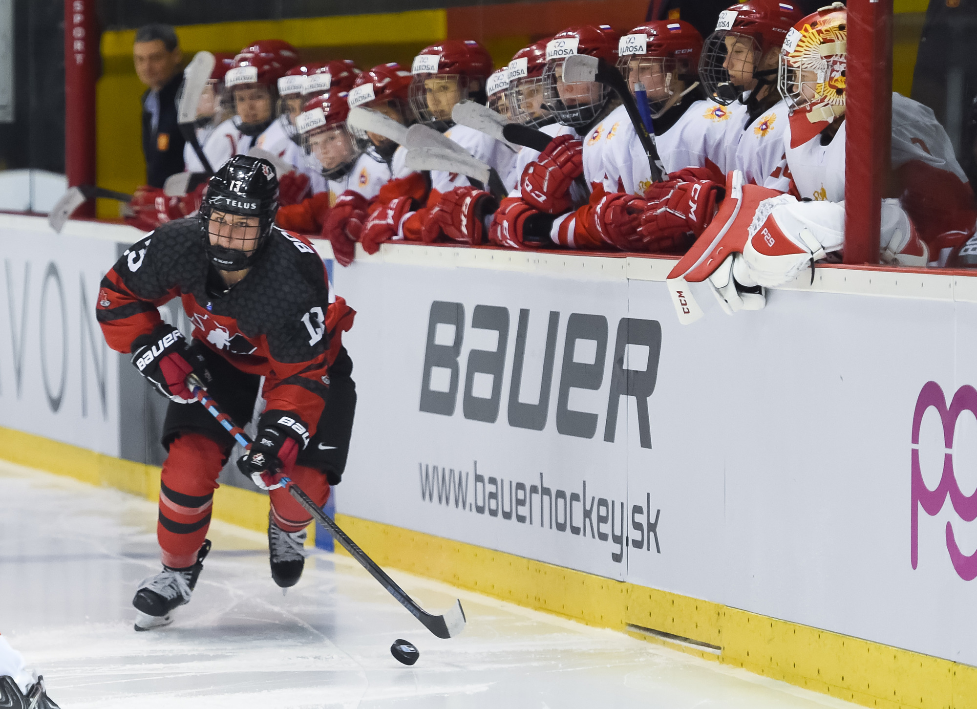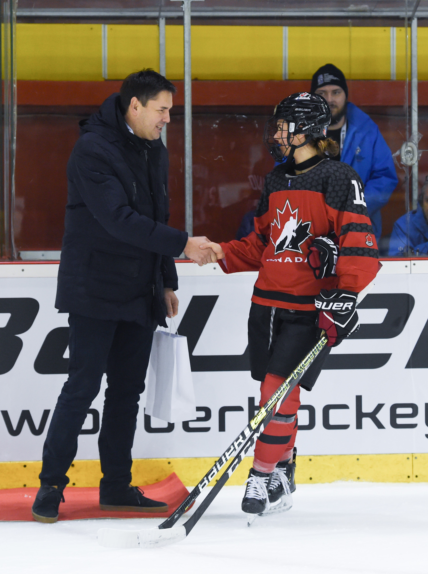 It started behind the Canadian net, where Maya Labad retrieved the puck from a scrum of players. She brought play into centre ice before finding her John Abbott College team mate Ann-Frederik Naud on the halfway line. The 17-year-old, back at this tournament for a second year after winning gold in Japan 12 months ago, advanced into the Russian zone, found a shooting lane beyond the Russian D and placed a low shot beyond Anna Alpatova’s outstretched skate.