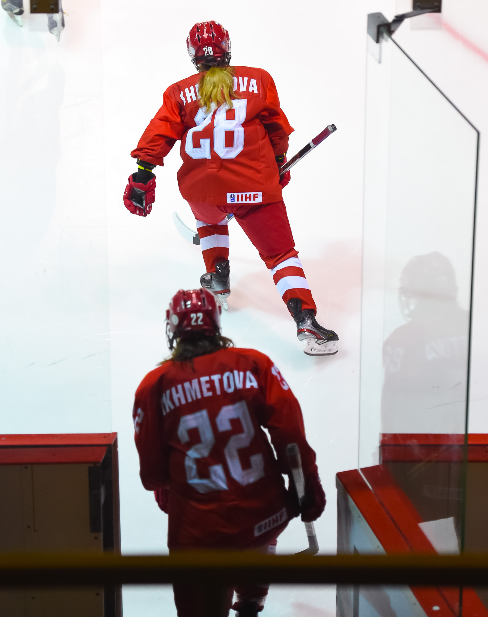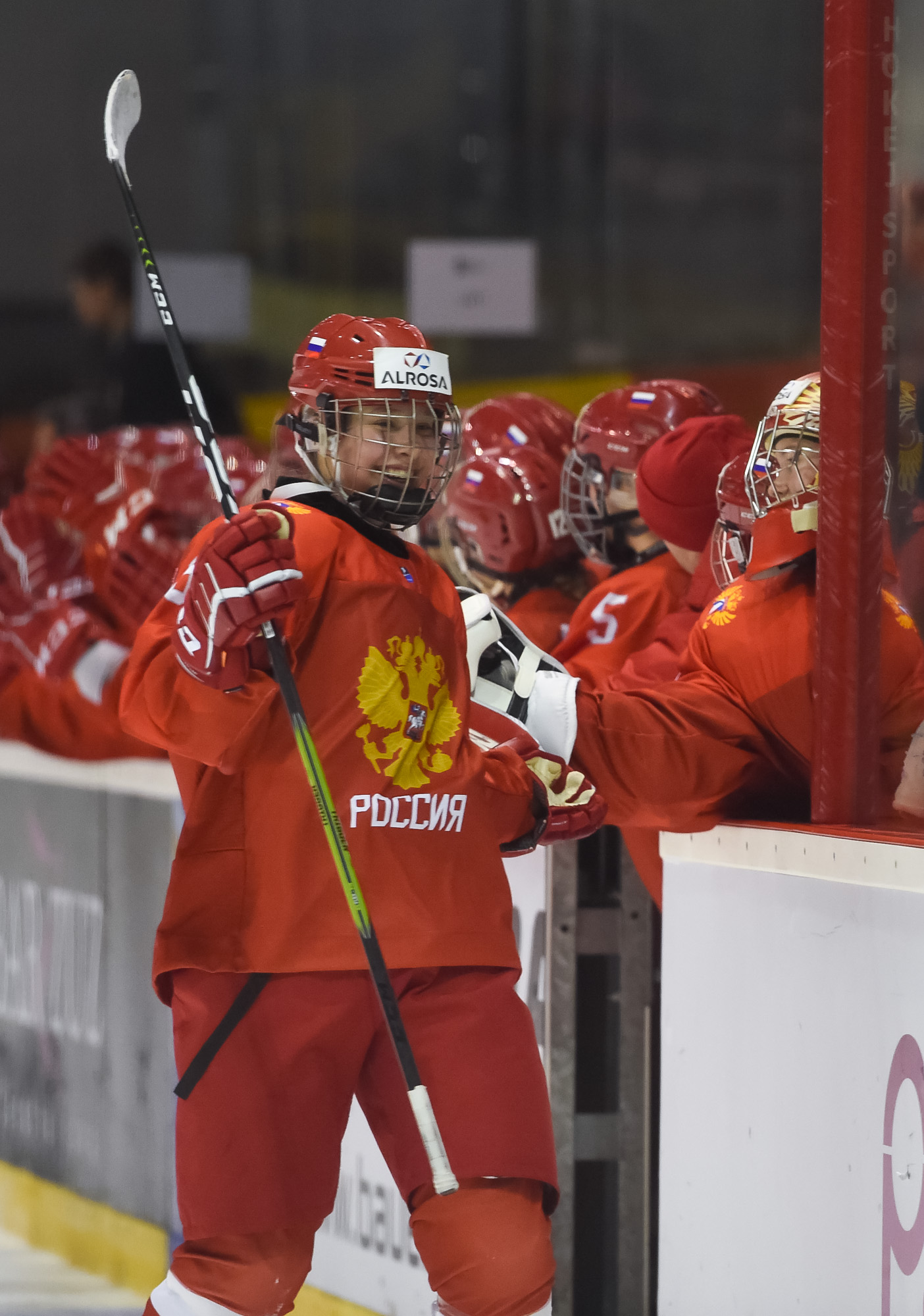 And the Red Machine took its chances. First, Kristina Glukhareva got a redirect on a puck that flashed goalwards from the right-hand circle after good work from Polina Kirichenko behind the net. For Glukharova, a 16-year-old playing for Dynamo St. Petersburg, it was a first World Championship goal after she made her debut in last year’s tournament in Japan; for Russia it was the first step towards an important win.