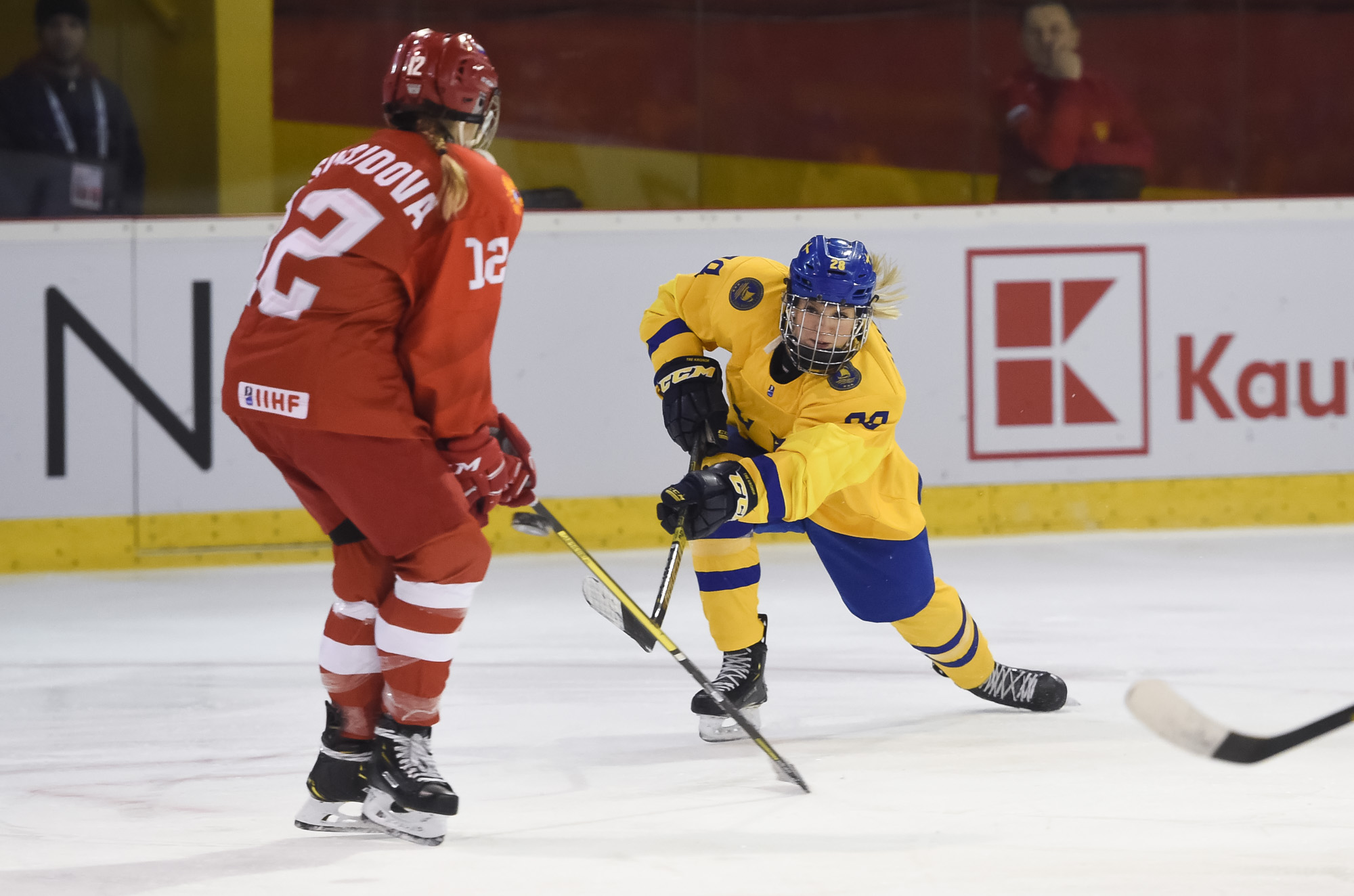 Sweden needed a fast start to the second period if it was to find a way back into the game, and Ella Albinsson almost provided one. She won the puck in centre ice and headed off to the races. Up close with Russian goalie Alpatova, the Karlstad native looked to deke past her but couldn’t get the final touch to slide the puck into the net.