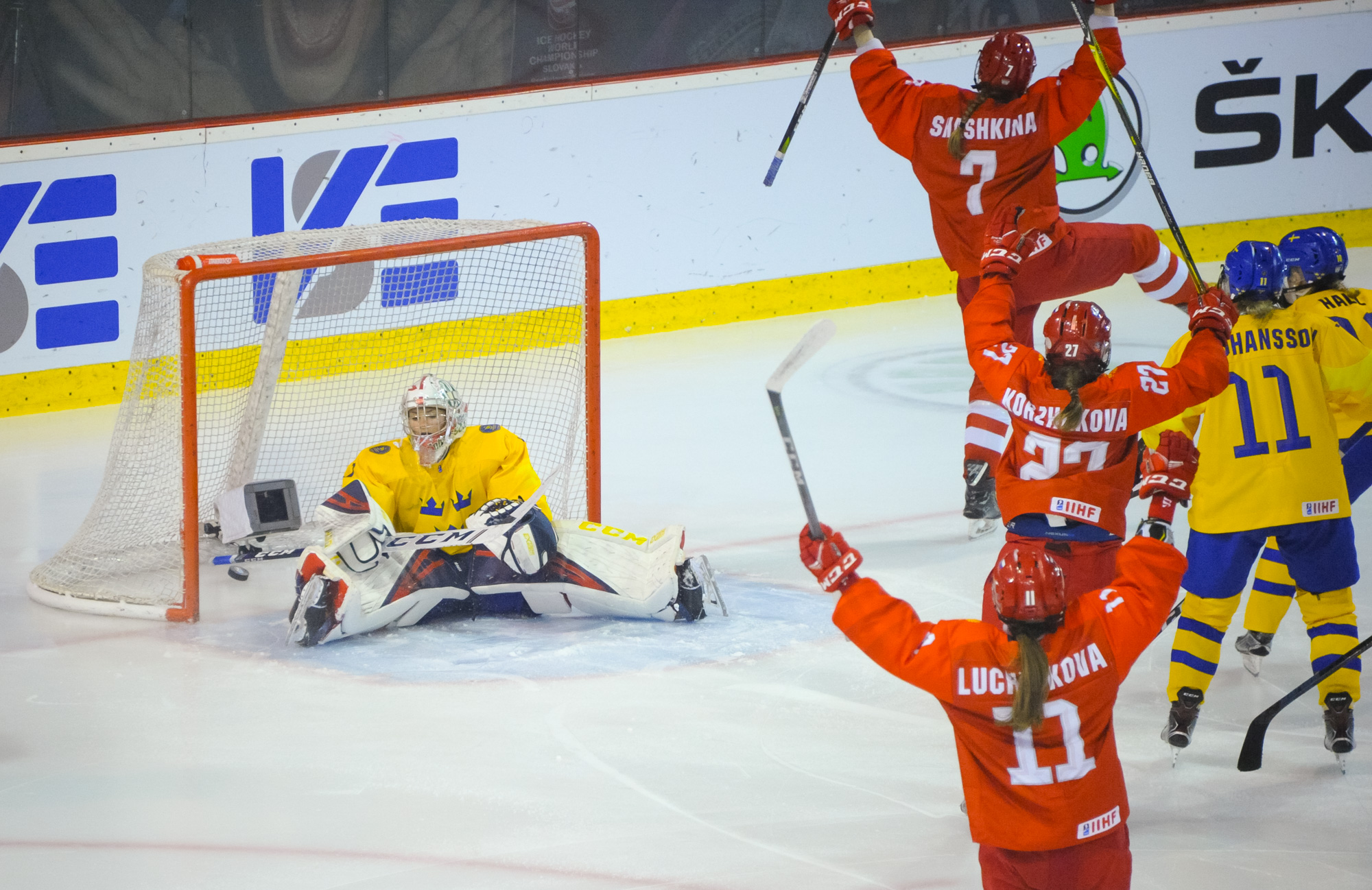 Late in the frame, Russia deservedly extended its lead. After play got bogged down behind the net, Polina Luchnikova sent the puck out in front and Veronika Korzhakova’s one-timer was too good for Boman.