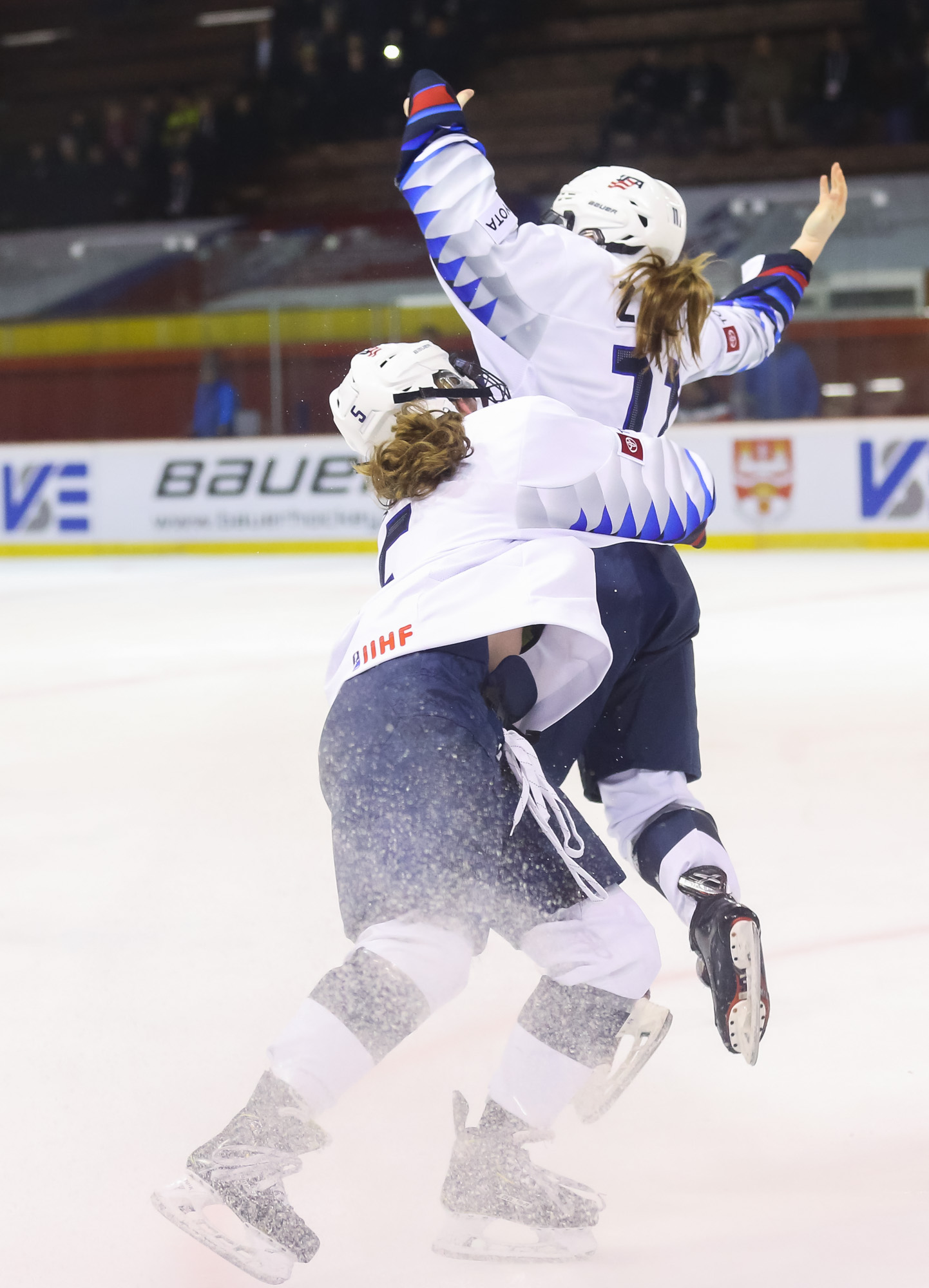 Cheers filled the arena while the floor was filled with plenty of jaws as well. The final strike had been made and was followed by all three Americans on the ice throwing their sticks and gloves into the air, jumping in celebration until they collided, joined in short by the entire U.S. bench.