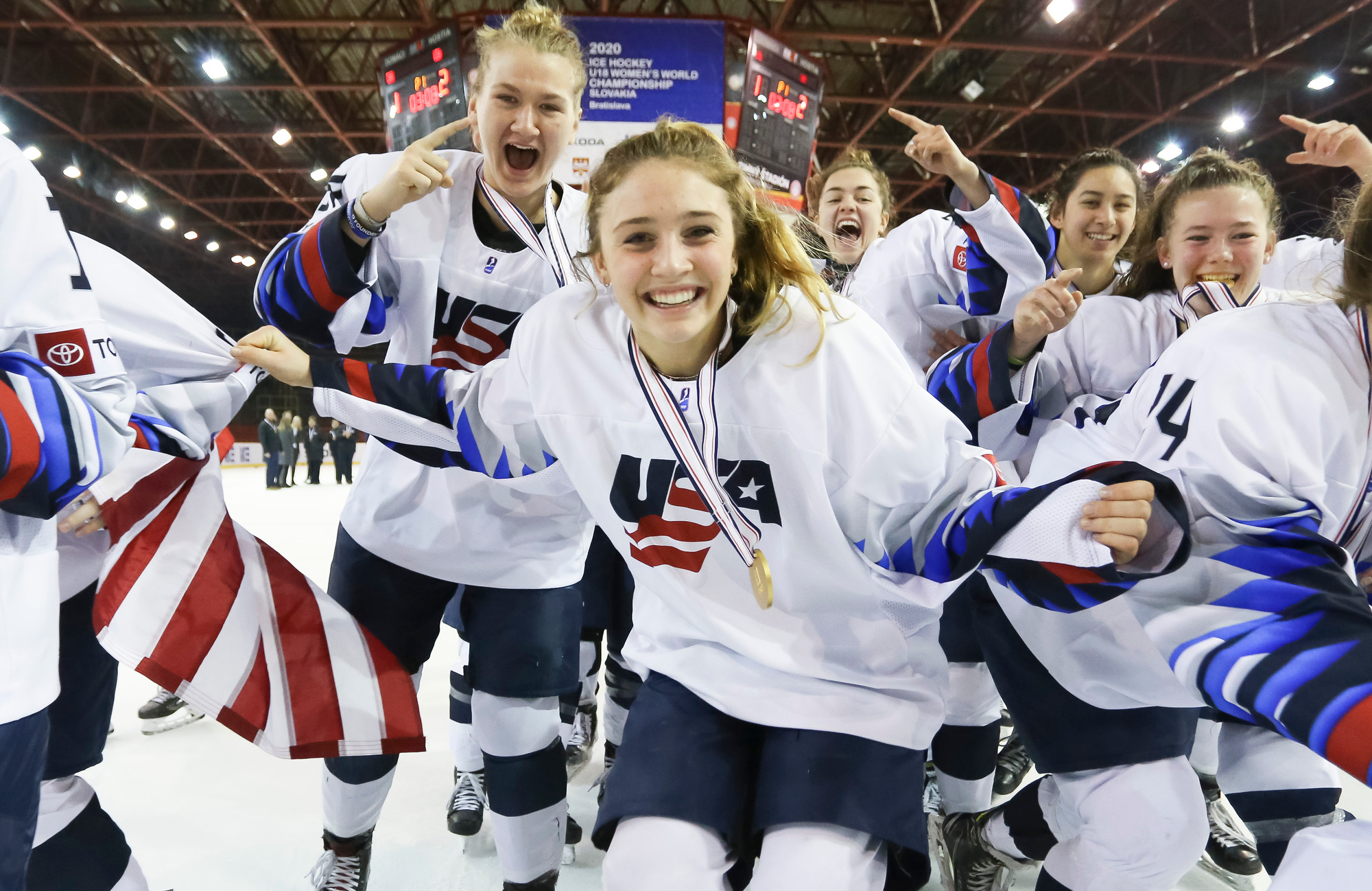 Team USA is back on the throne. The Americans celebrate their 2020 IIHF Ice Hockey U18 Women's World Championship gold medal win after beating Canada in overtime.