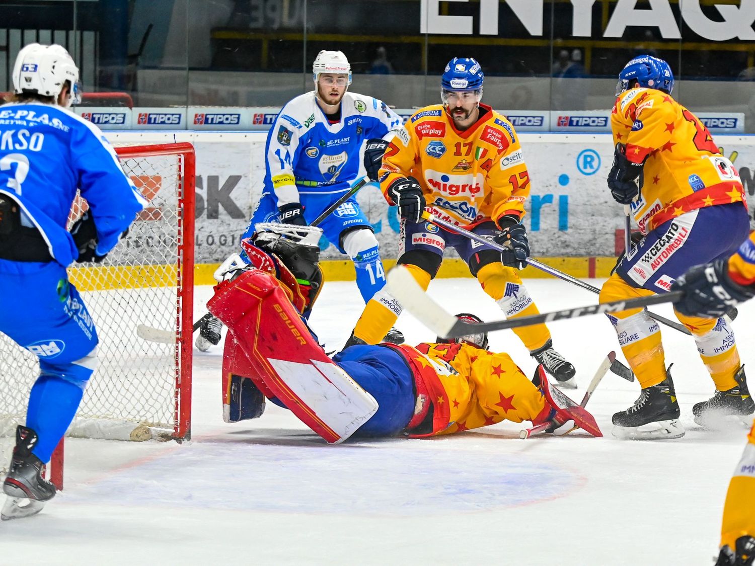 The Asiago players appeared to take their coach’s words to heart. After falling behind 3-0 in the first period of their first game, they outscored their opponents 11-5 the rest of the way. In a key game that ultimately decided second place, Asiago edged Oswiecim 4-3 on Saturday. The Italian team took a 4-1 lead early in the third period but a pair of late goals from the Polish side made it close.