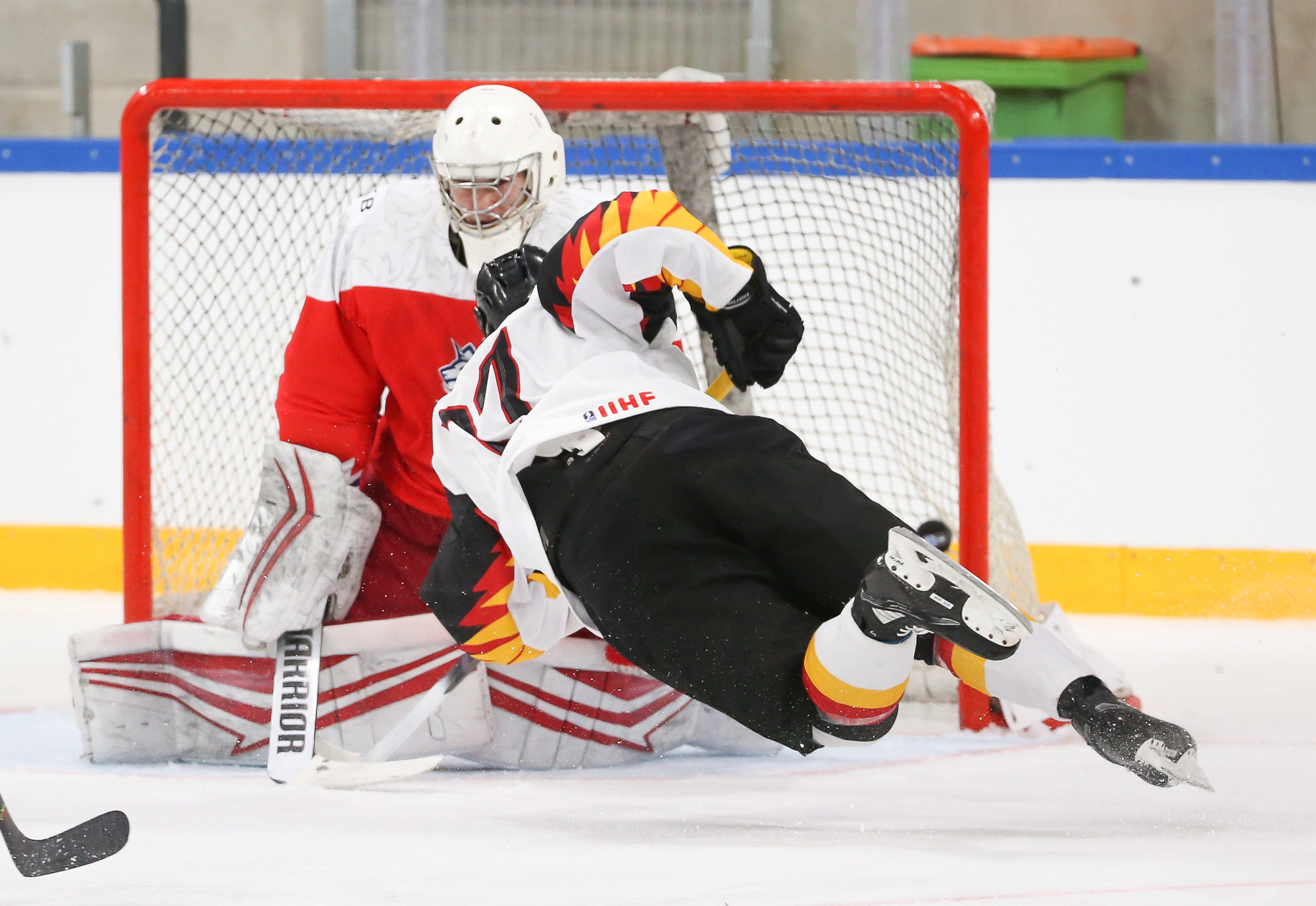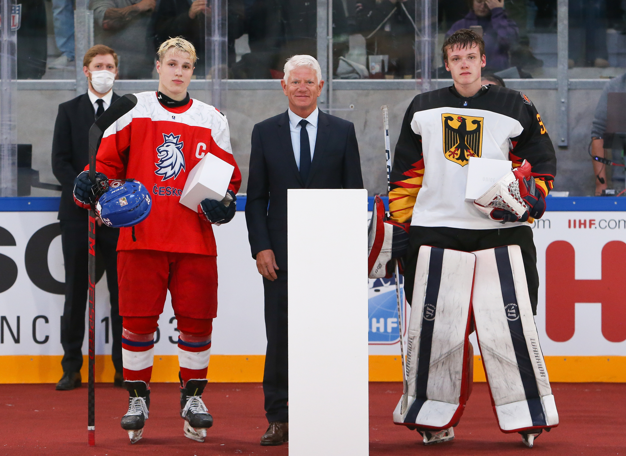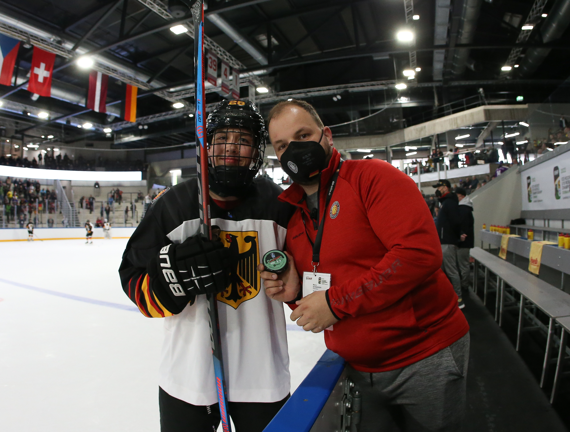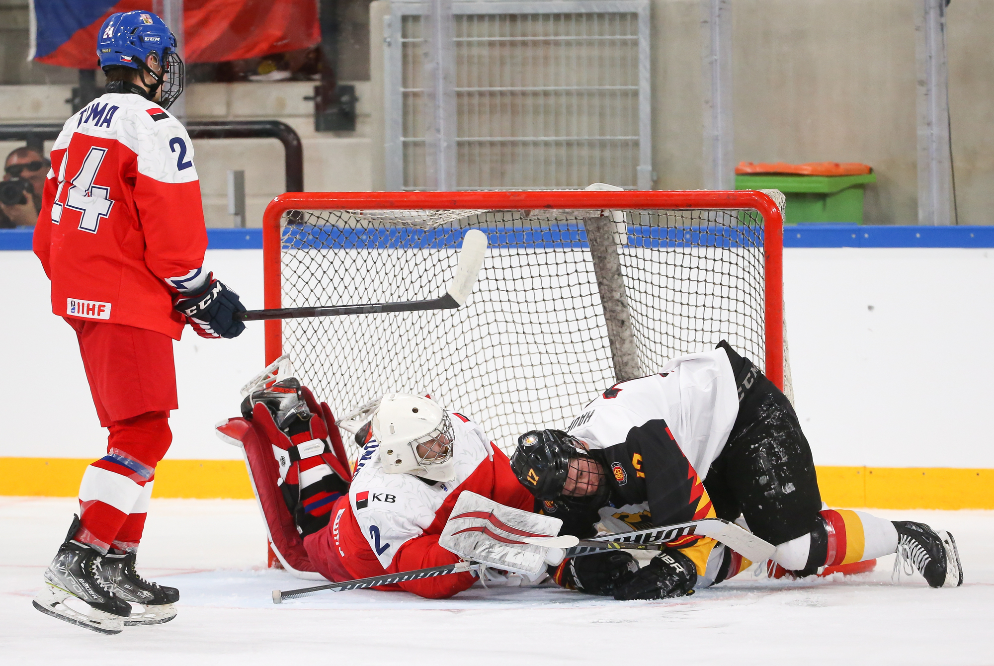The Germans opened the scoring right off an attacking-zone faceoff in the seventh minute when Julian Lutz’s quick shot got through Jan Spunar’s pads and just sat in the crease, where captain Roman Kechter just had to tap it in.