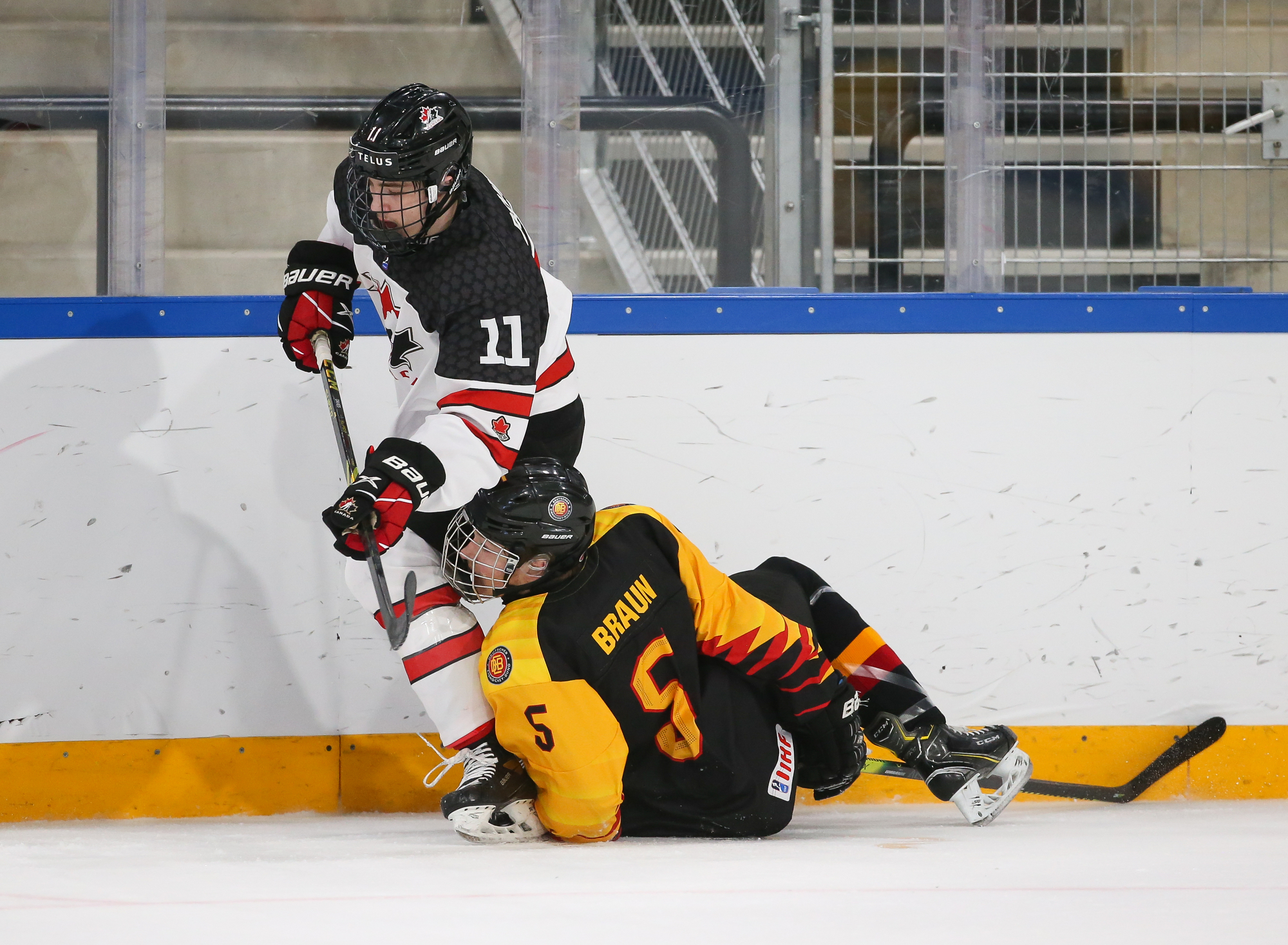 For the most part, however, play was in the German zone and Canada was able to strike twice in the eighth minute of play. In fact, it was the same line striking twice on the same shift.
