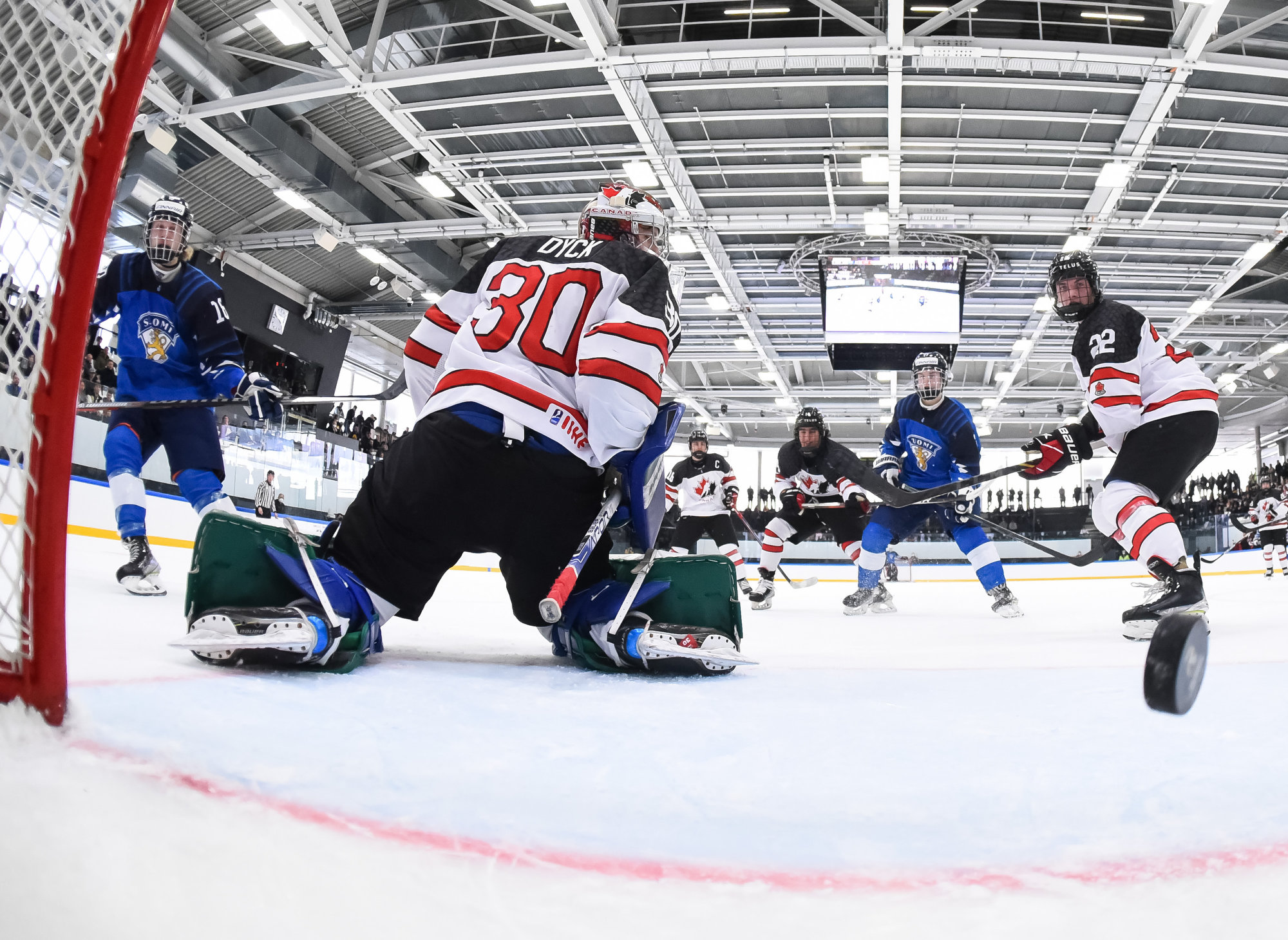 If that wasn't enough, Canada took another penalty and coach Mika Marttila pulled Leinonen for a two-man advantage. They tied the game off a high shot by Halttunen over the glove of Dyck, another suspect goal that tied the game at 5 with only 1:42 remaining and forcing overtime.