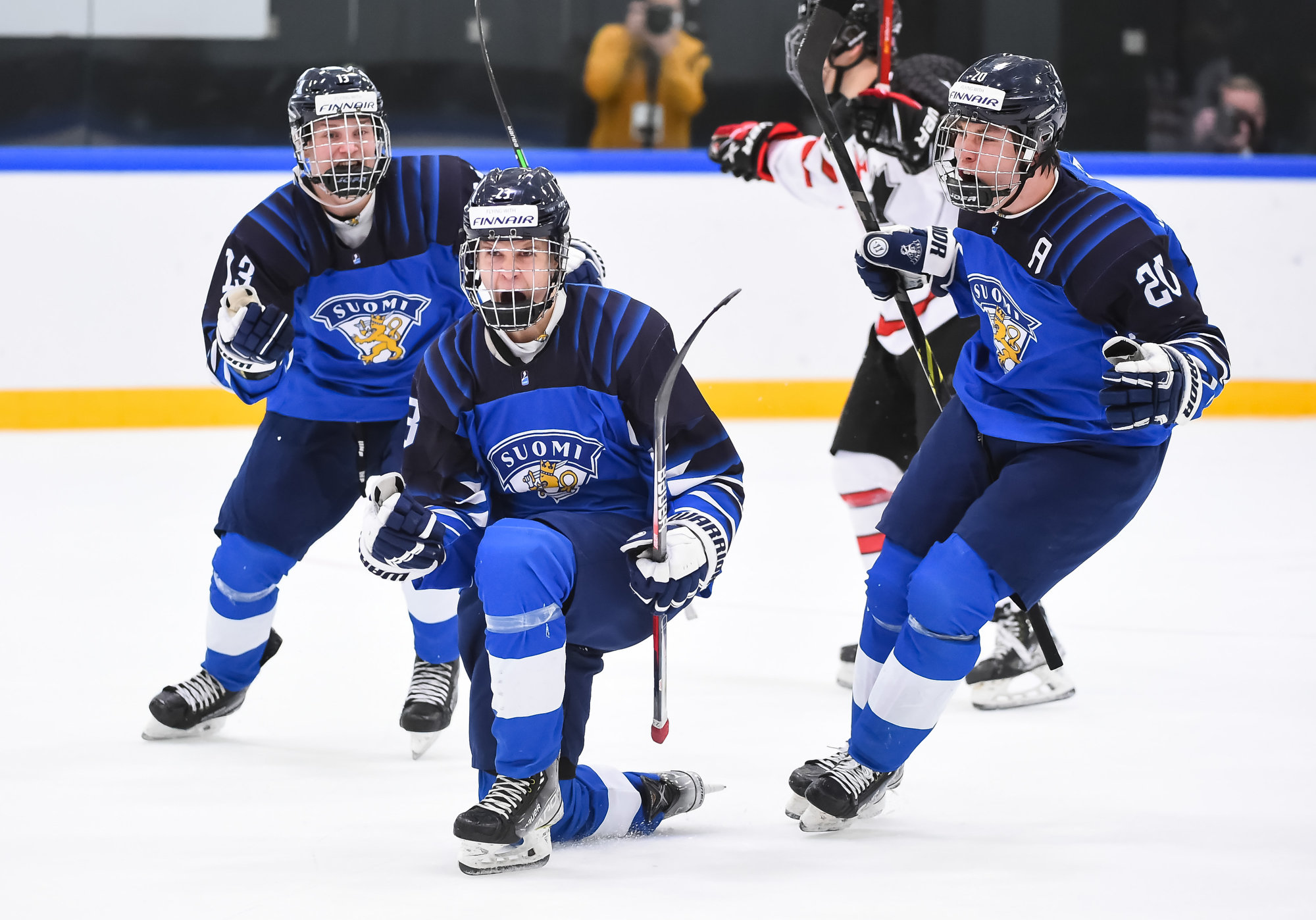 Joakim Kemell scored 28 seconds into overtime to give Finland a 6-5 win against Canada in the first quarter-finals in Kaufbeuren today to earn a spot in the semi-finals and send last year's gold medallists packing.