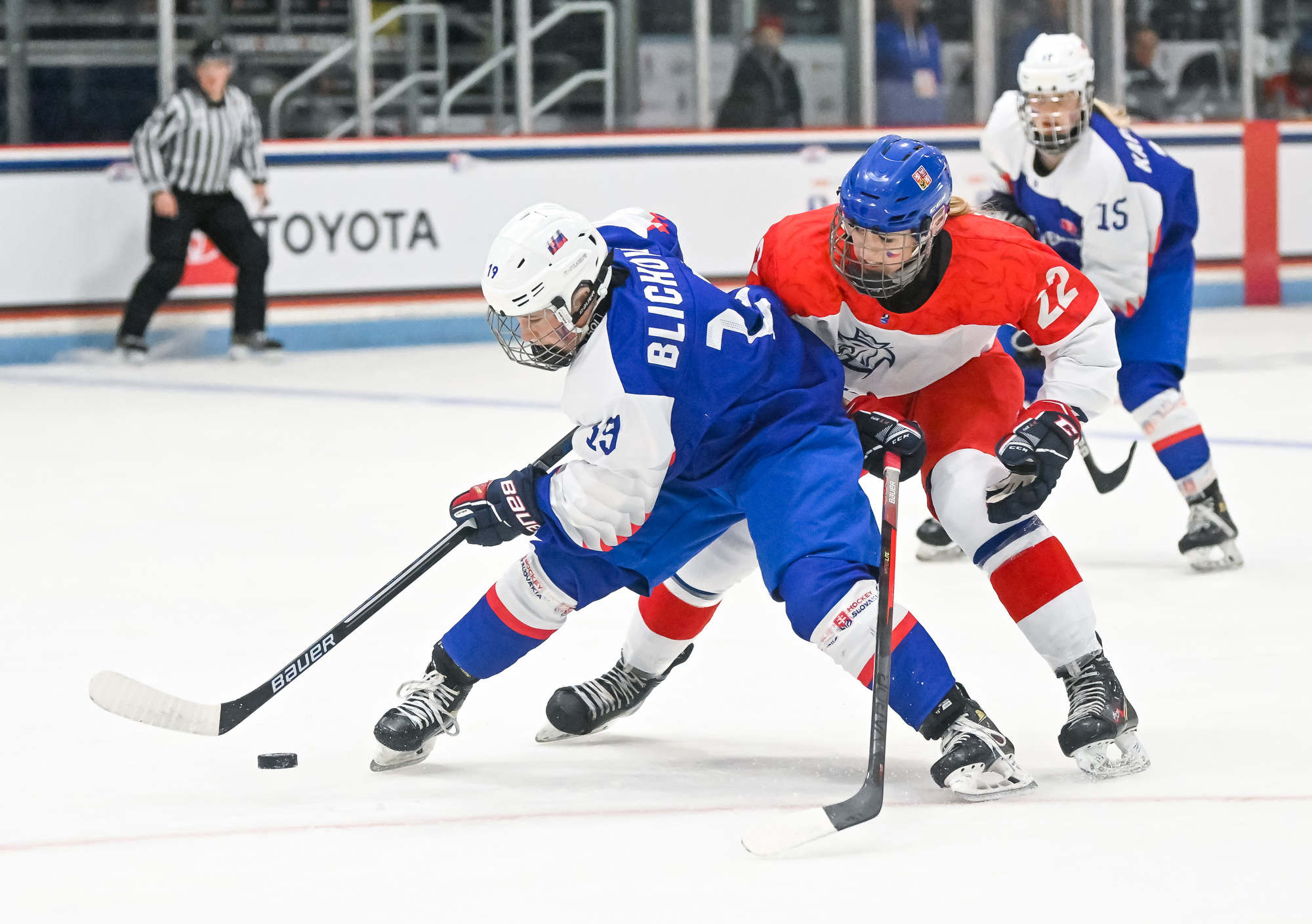 While trailing, Slovakia had two chances to get on the board — one on a 2-on-1 late in the second period, and another with 1:22 left in the contest, but Tatiana Blichova's shot went over the net.