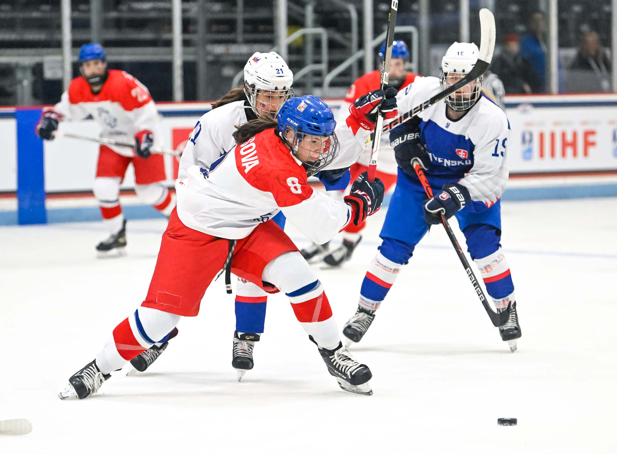 The duo registered three points apiece as Czechia opened round-robin play at the 2022 IIHF Ice Hockey U18 Women’s World Championship with a convincing 4-0 win over rival Slovakia.