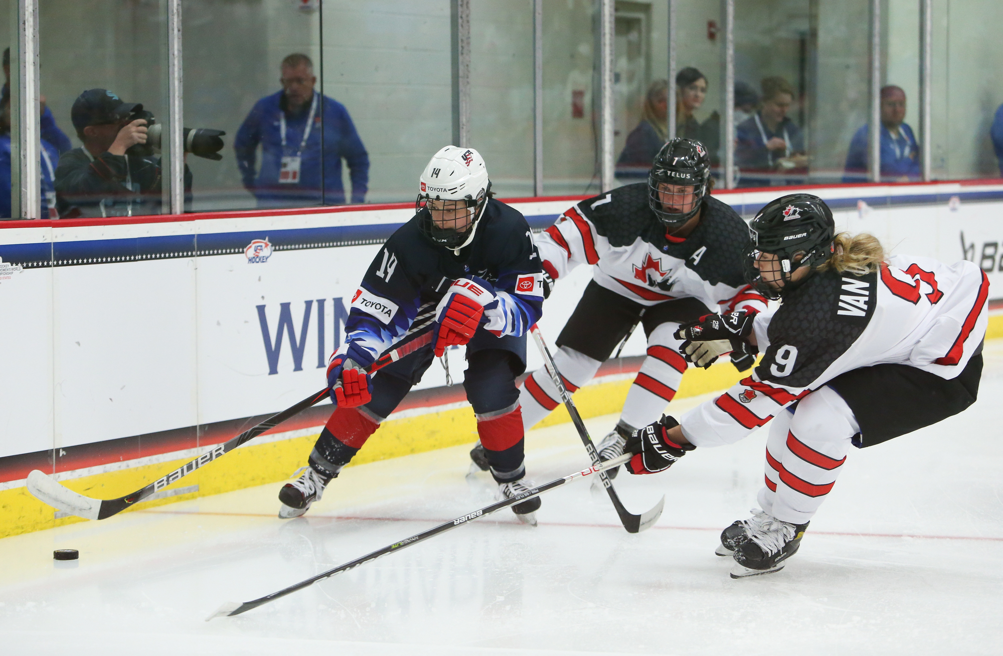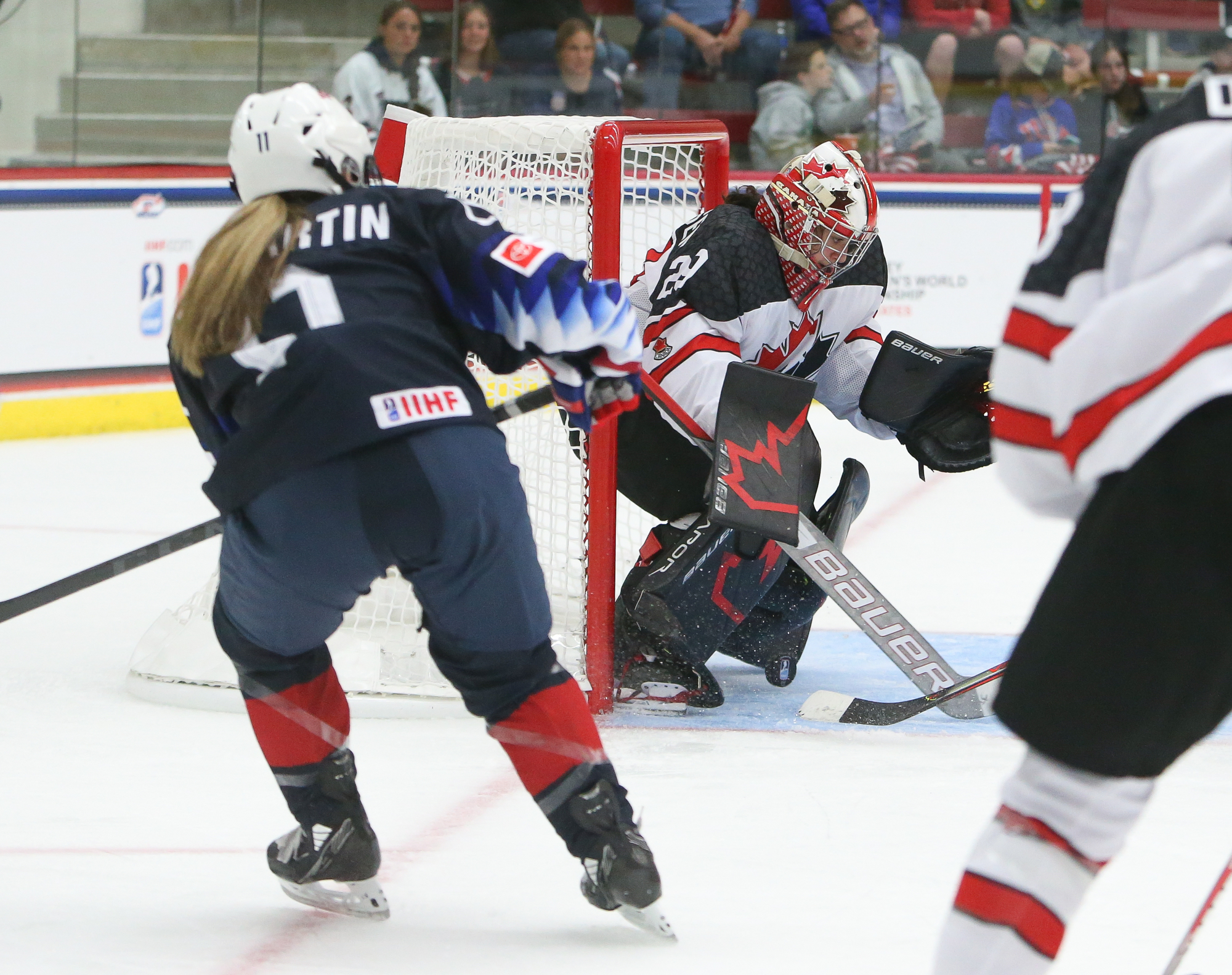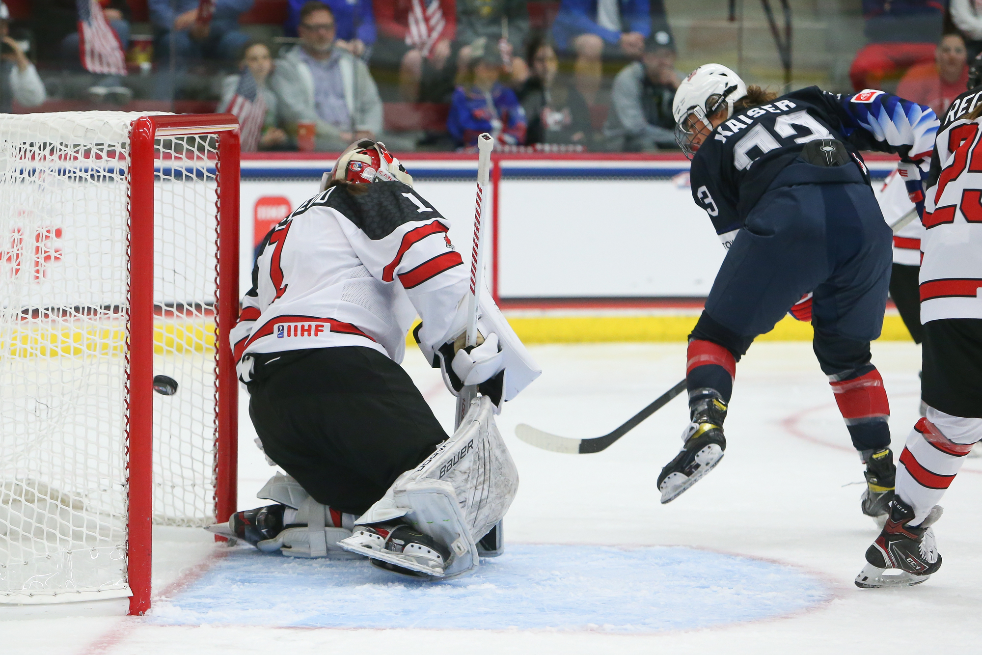 The Canadians would get their first power play mid-period when Kaiser wrestled blueliner Sara Swiderski to the ice behind MacLeod’s net. It became a 5-on-3 for 1:17 when Cassandra Hall threw an illegal hit in the American zone. The best Canadian chance saw Jocelyn Amos ring one off the cross bar. Canada wouldn't get any closer.