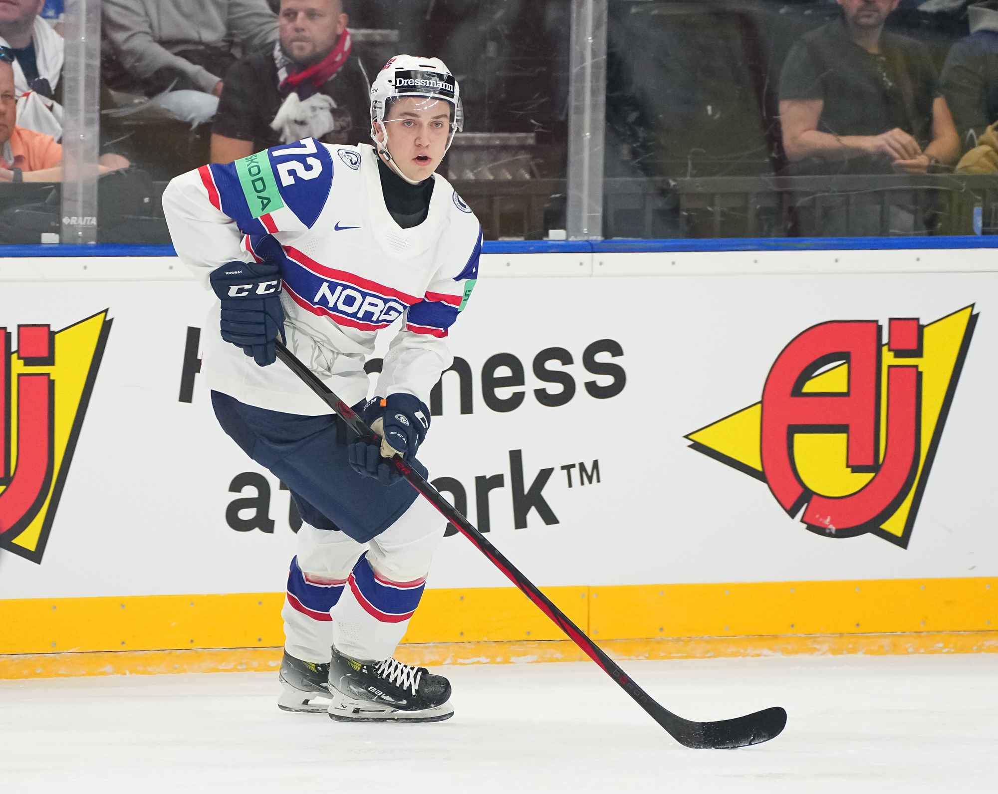 The breakthrough came after 11 minutes when great work from Nino Niederreiter set up Sven Andrighetto for an instant wrist shot that ripped past Arntzen. However, Norway continued to battle and tied the scores thanks to that experienced top line. Zuccarello’s determination kept the play alive before Thoresen produced a great pass out of the corner for Markus Vikingstad to score. Then Thoresen had a great chance to make it 2-1 just before the intermission, but he squeezed a shot narrowly wide after a good look from the right-hand circle.