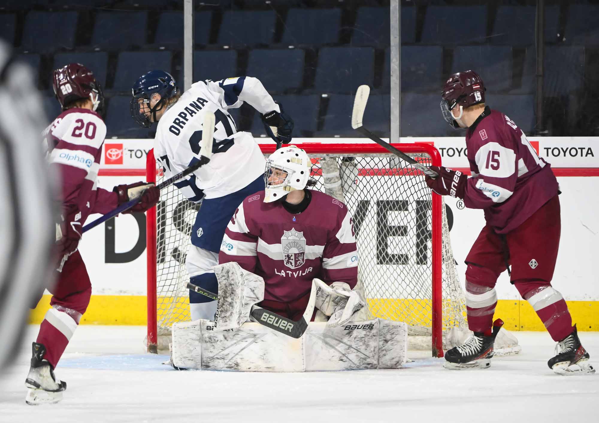 Teams exchanged two more quick goals. Finland went up at 5:40 on a quick pass across the crease from Westergard to Rasmus Pakarinen, prompting Latvian coach to pull Capars in favour of Ivans Kufterins. Just 64 seconds later, Latvia tied it again. Reinis Auzins was in the slot to claim a loose puck, and he snapped another high shot past Kerkola.
