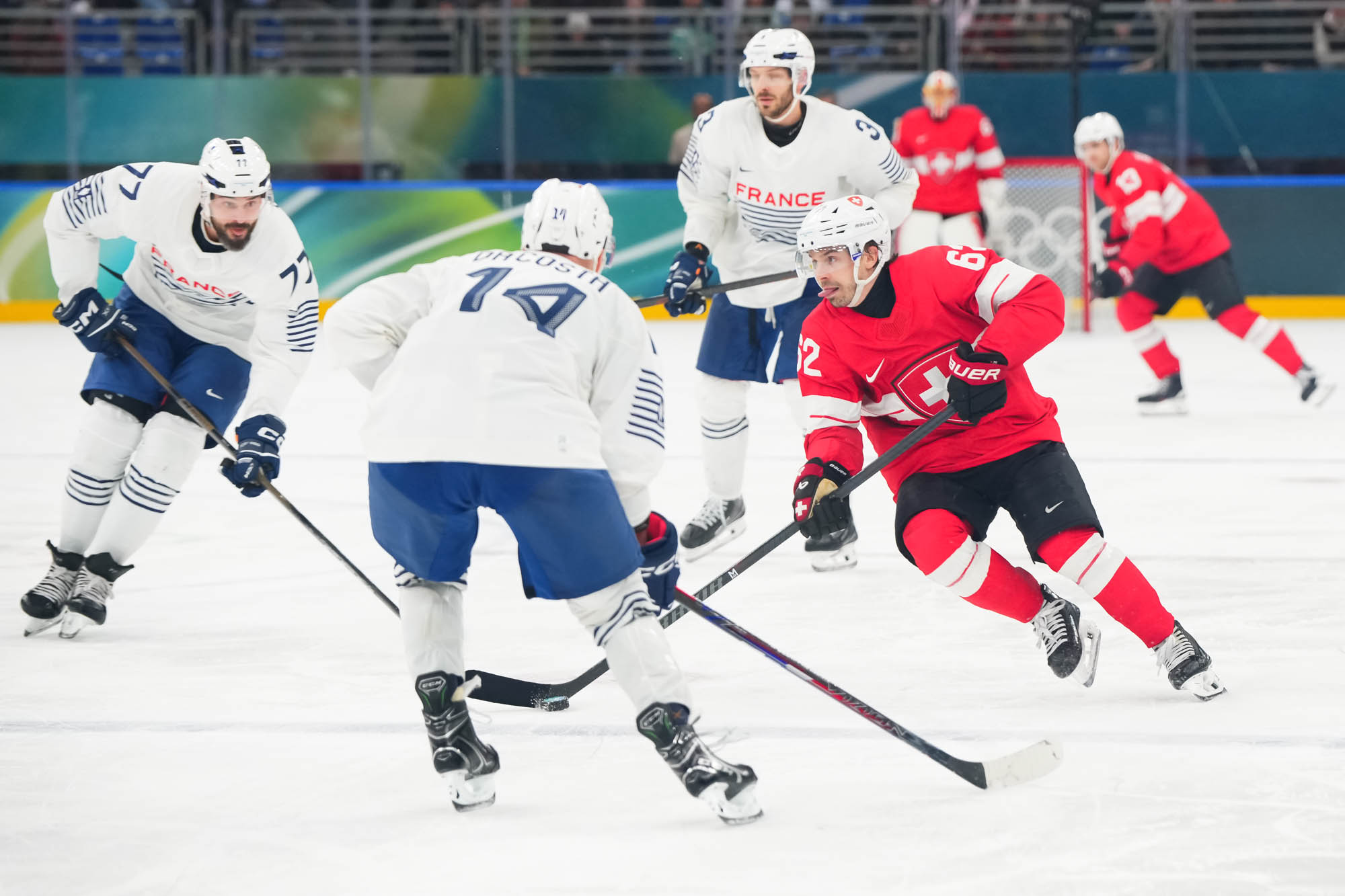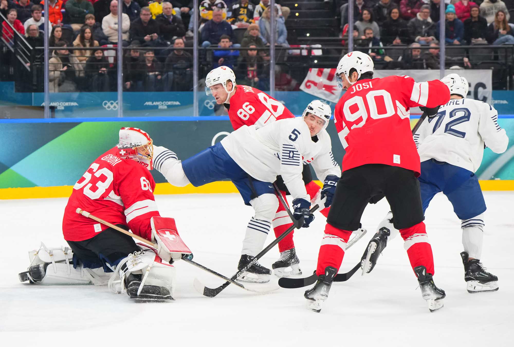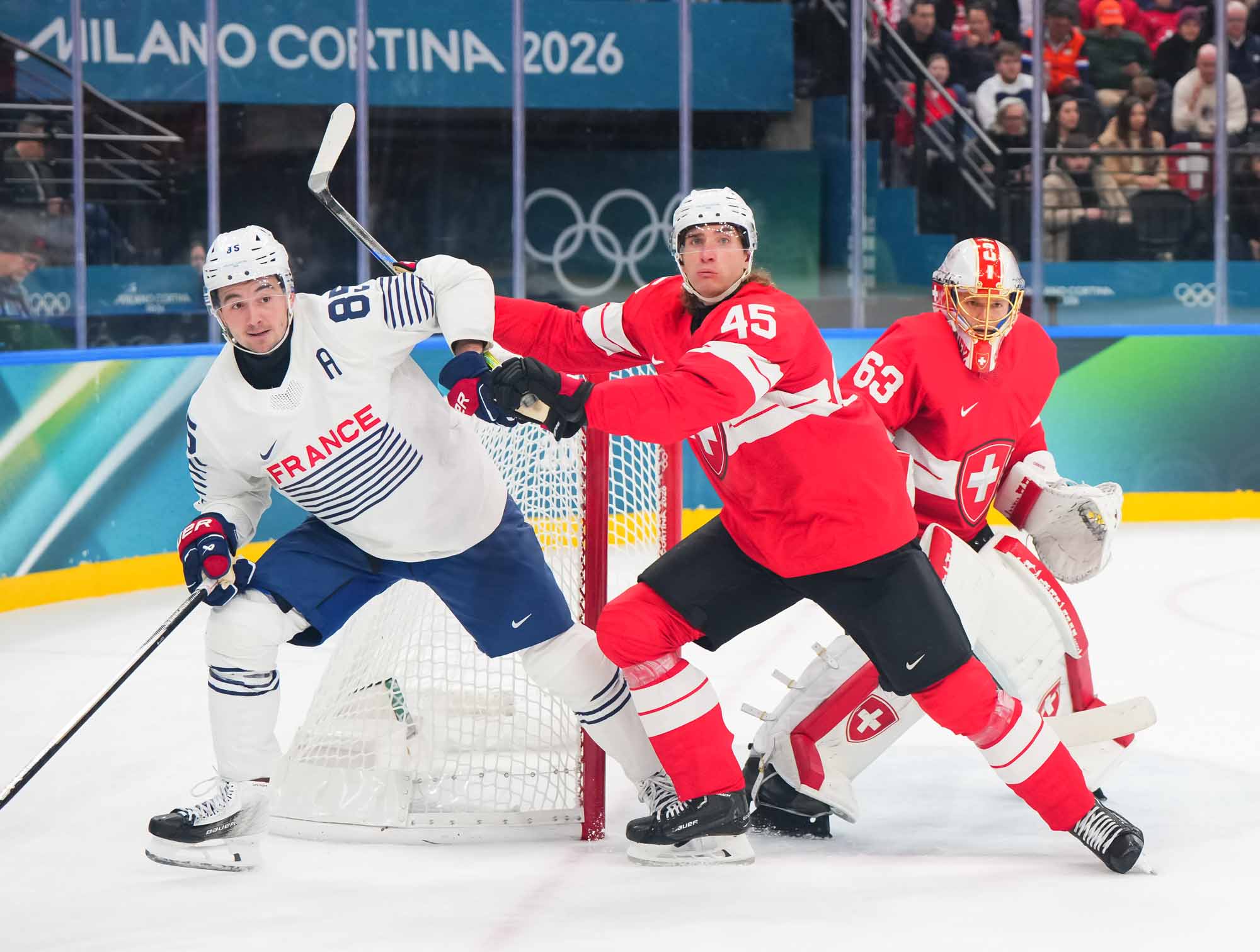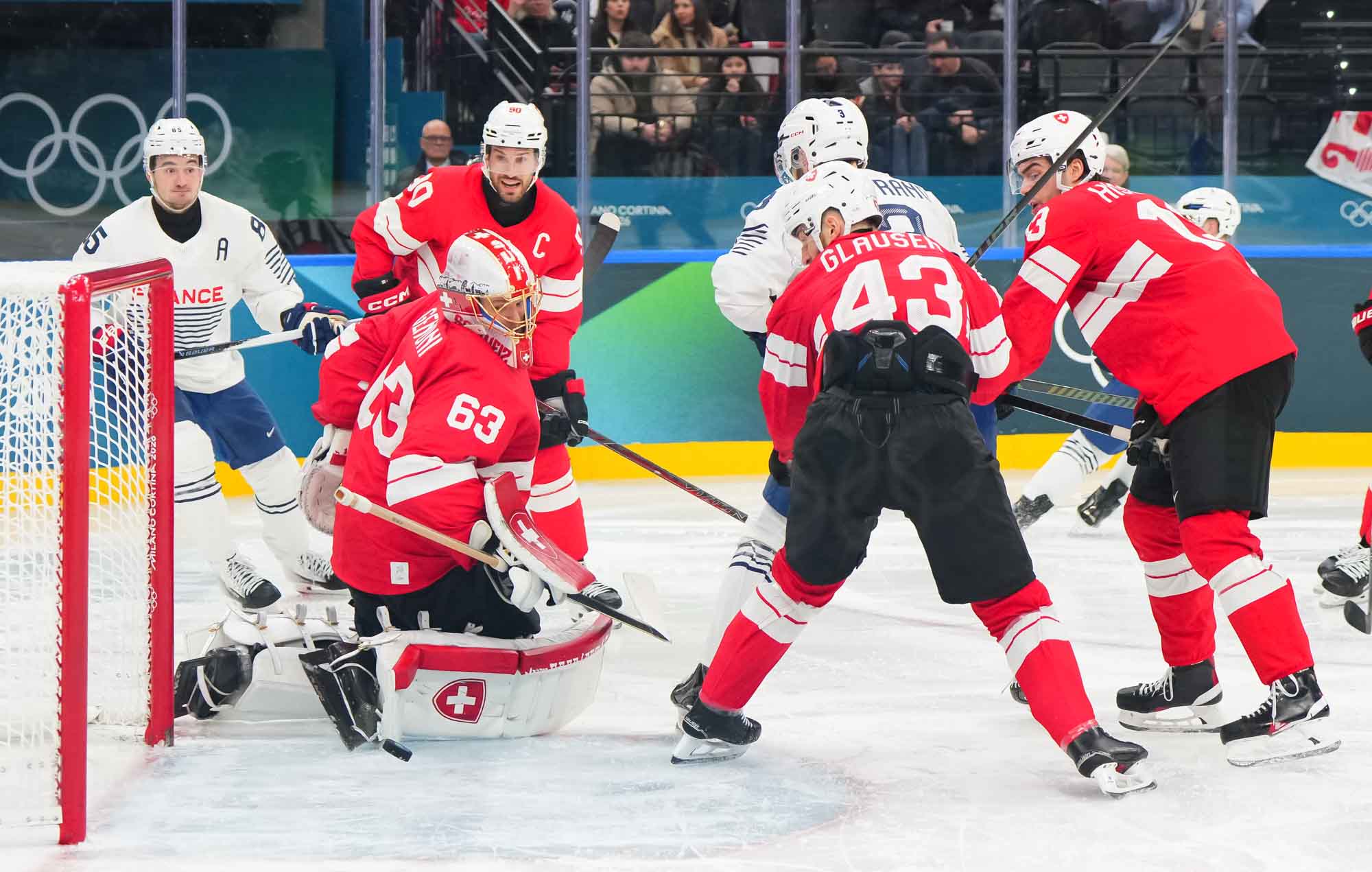 Switzerland got the early jump on France and won its Olympic men's hockey opener 4-0 at the Milano Santagiulia Ice Hockey Arena.