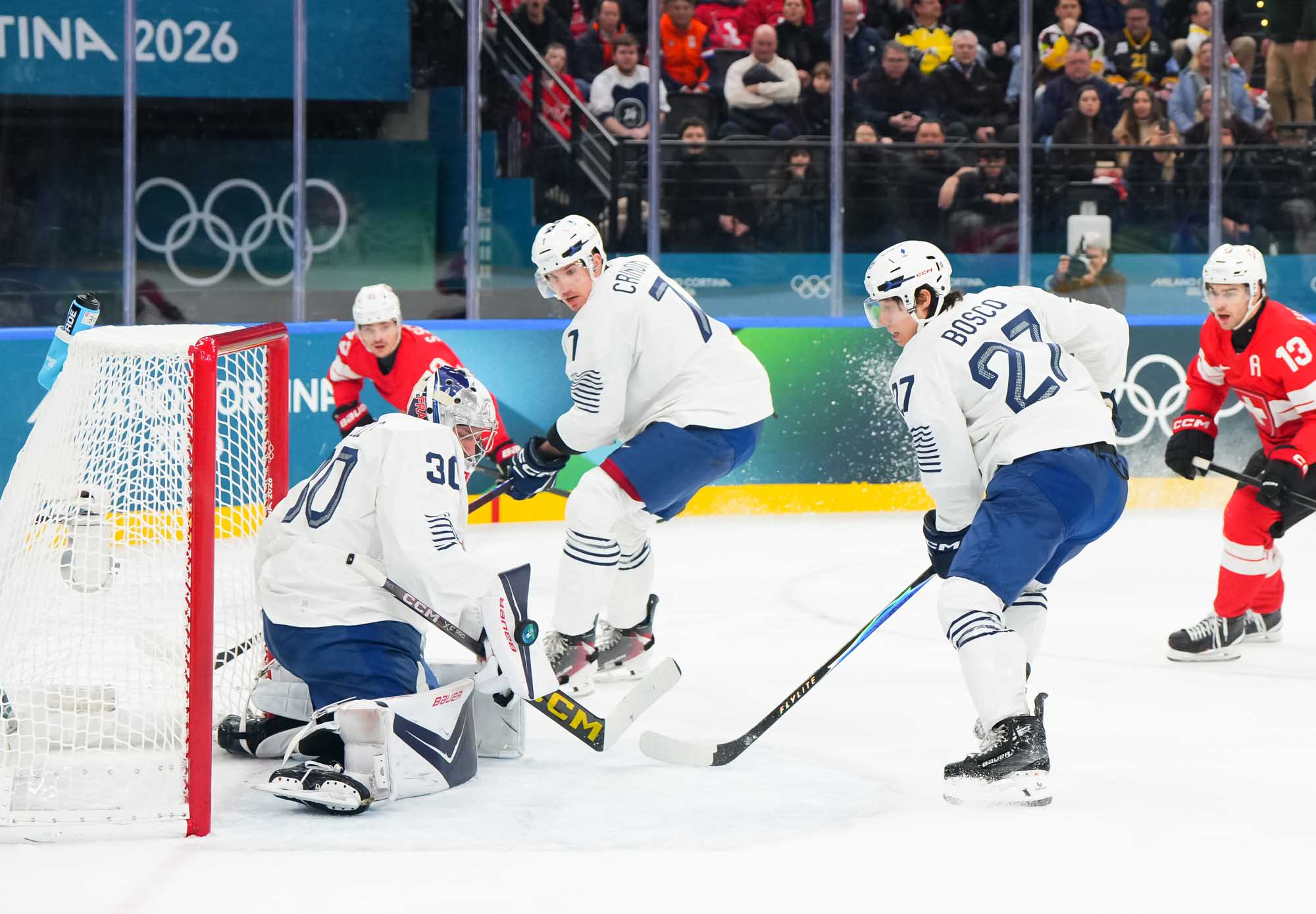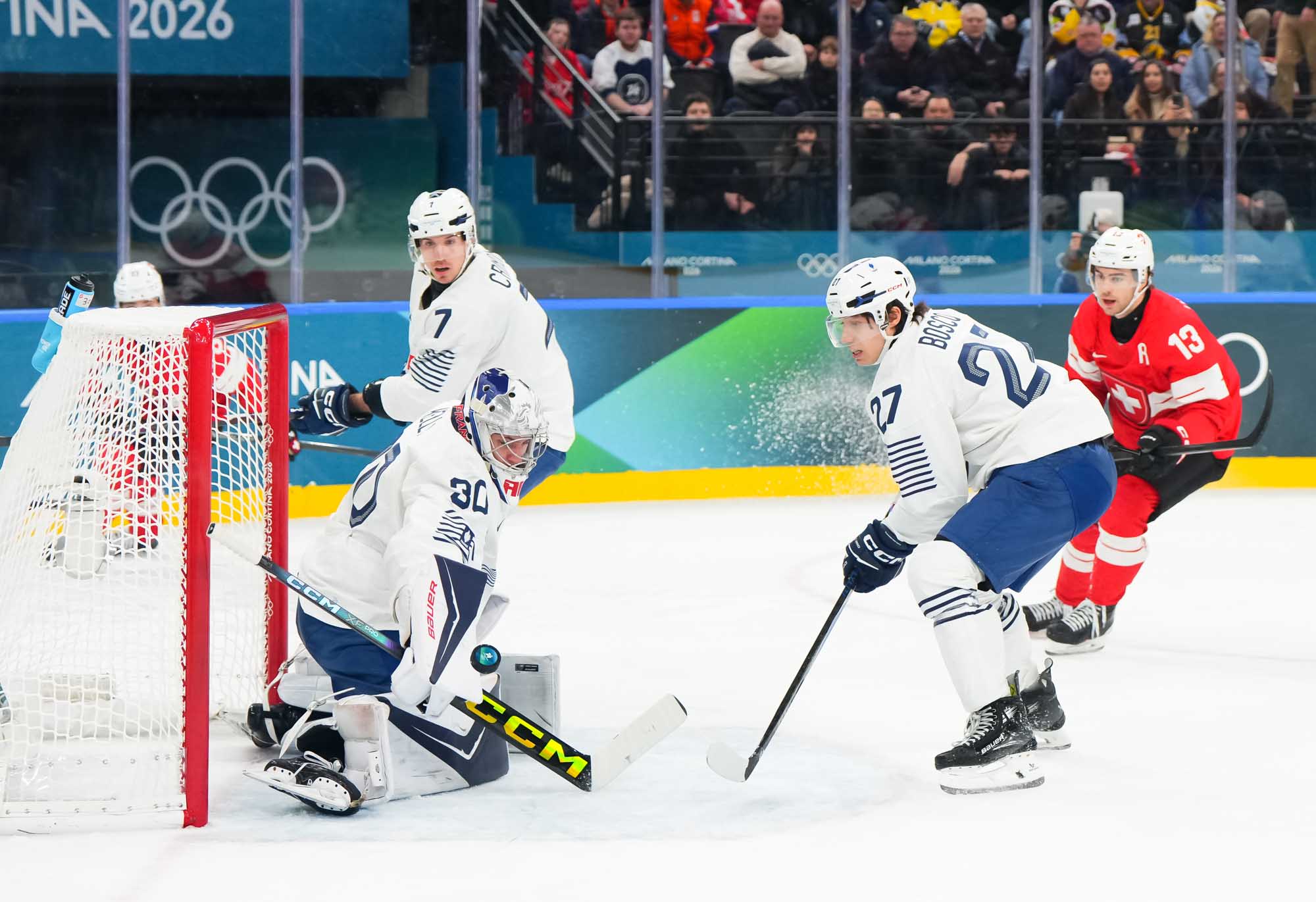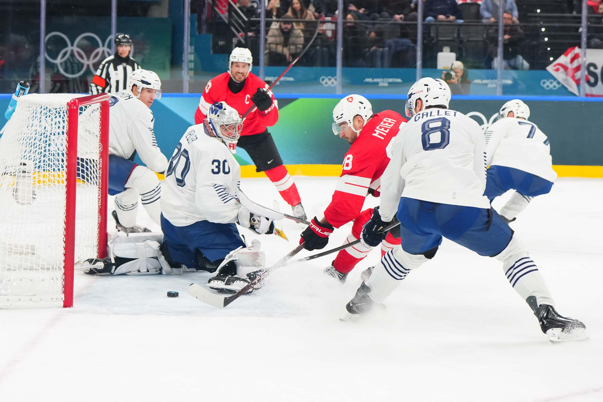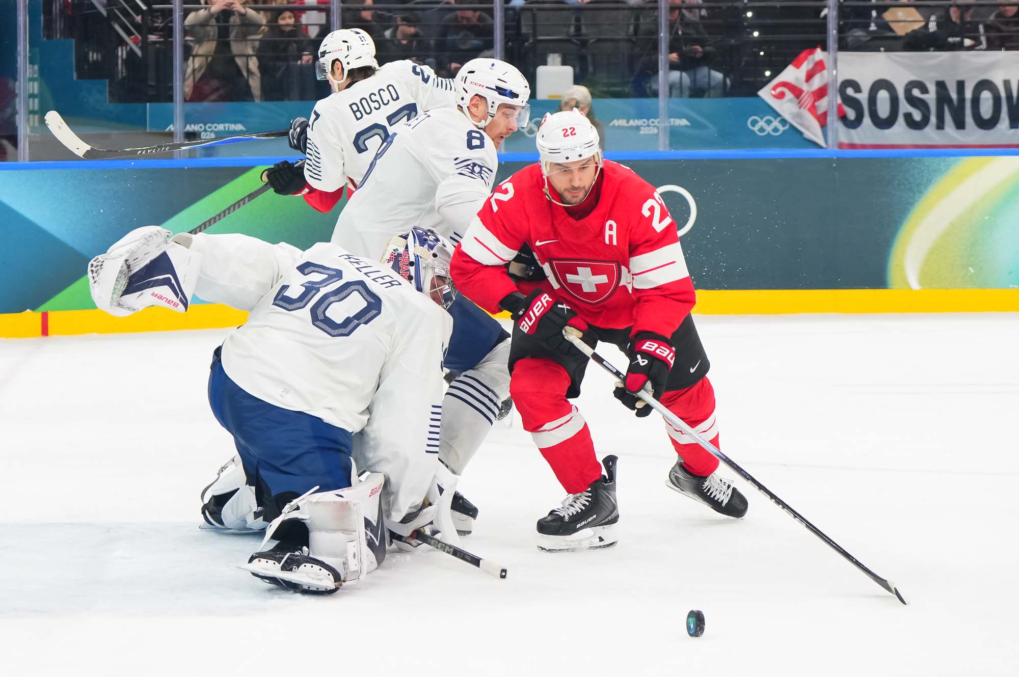 Switzerland got the early jump on France and won its Olympic men's hockey opener 4-0 at the Milano Santagiulia Ice Hockey Arena.