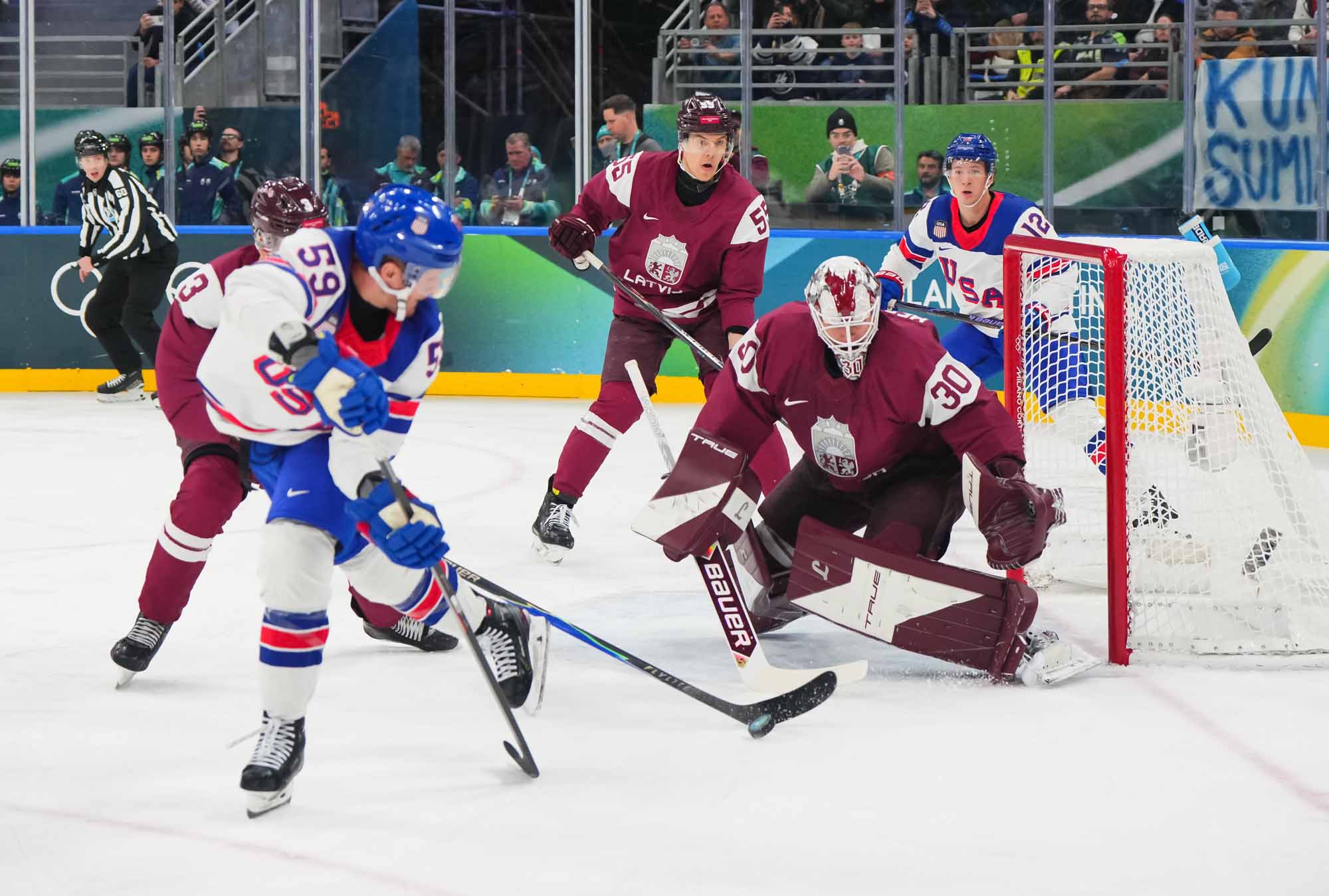 Latvian starting goalie Elvis Merzlikins, who plays for the Columbus Blue Jackets, was far busier than his American counterpart Connor Hellebuyck, a three-time Vezina Trophy winner with the Winnipeg Jets. In the third period, Arturs Silovs, the 2023 Worlds MVP now with the Pittsburgh Penguins, came in to relieve Merzlikins.
