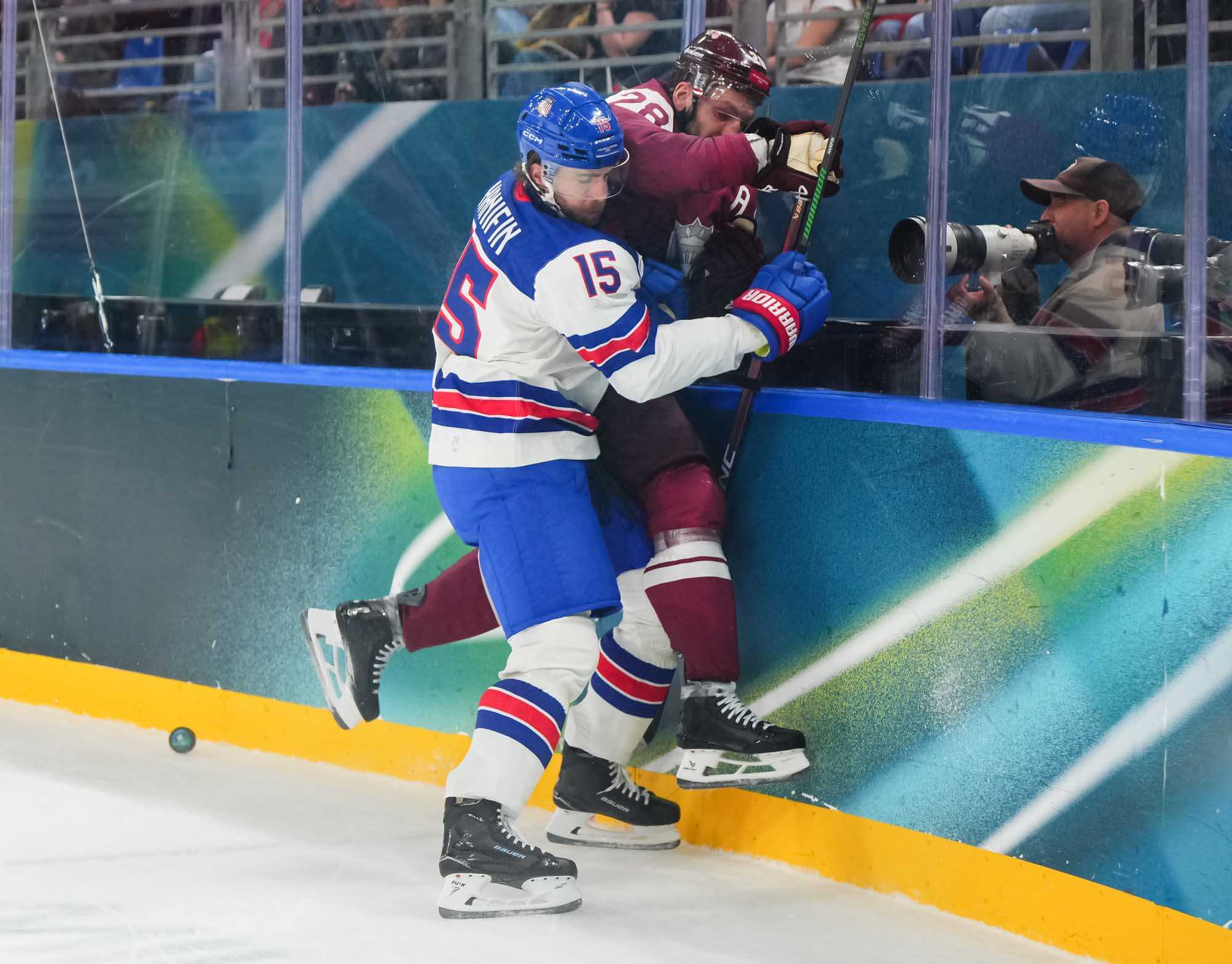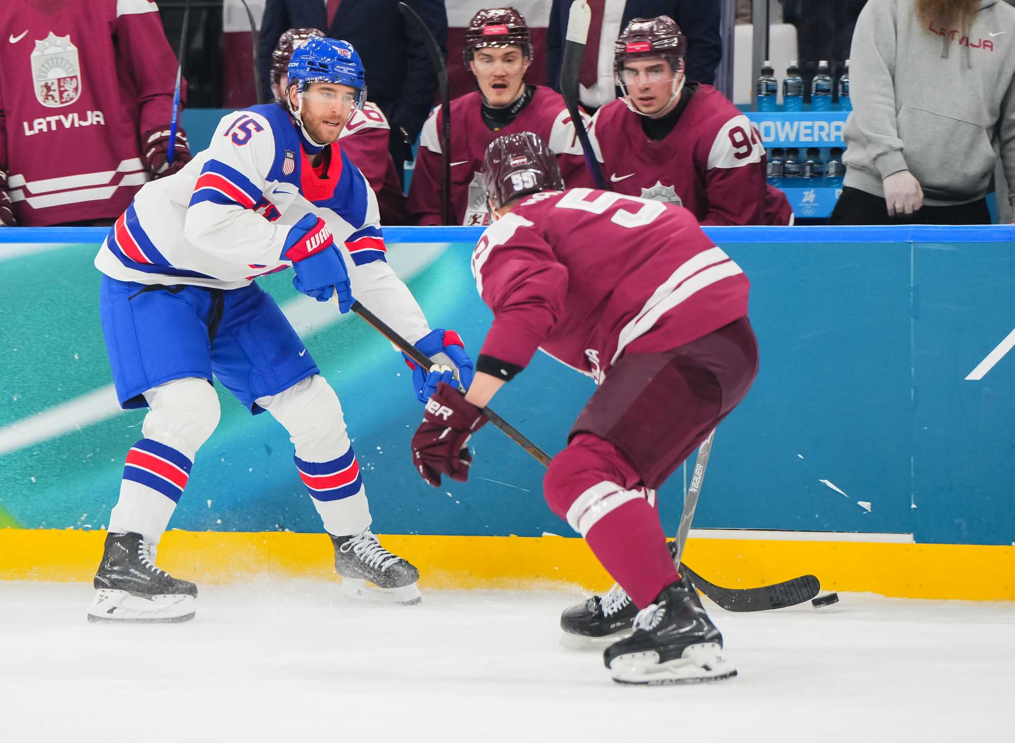 Blueliner Noah Hanifin tried to get America going by rocking Latvian forward Sandis Vilmanis with a big bodycheck near the U.S. bench. Late in the first period, the Latvians weathered the storm during the first American power play as Nelson rang one off the goalie's left post. Eichel also hit the iron moments later.