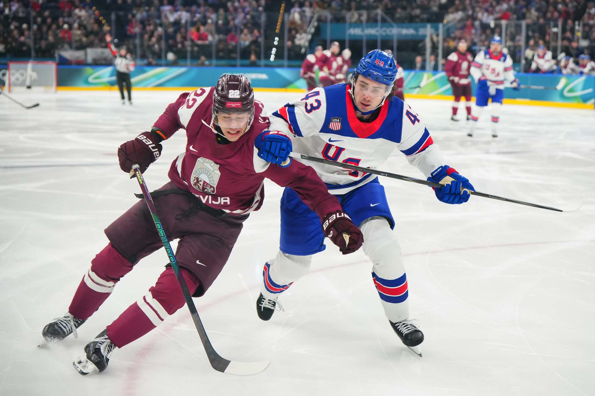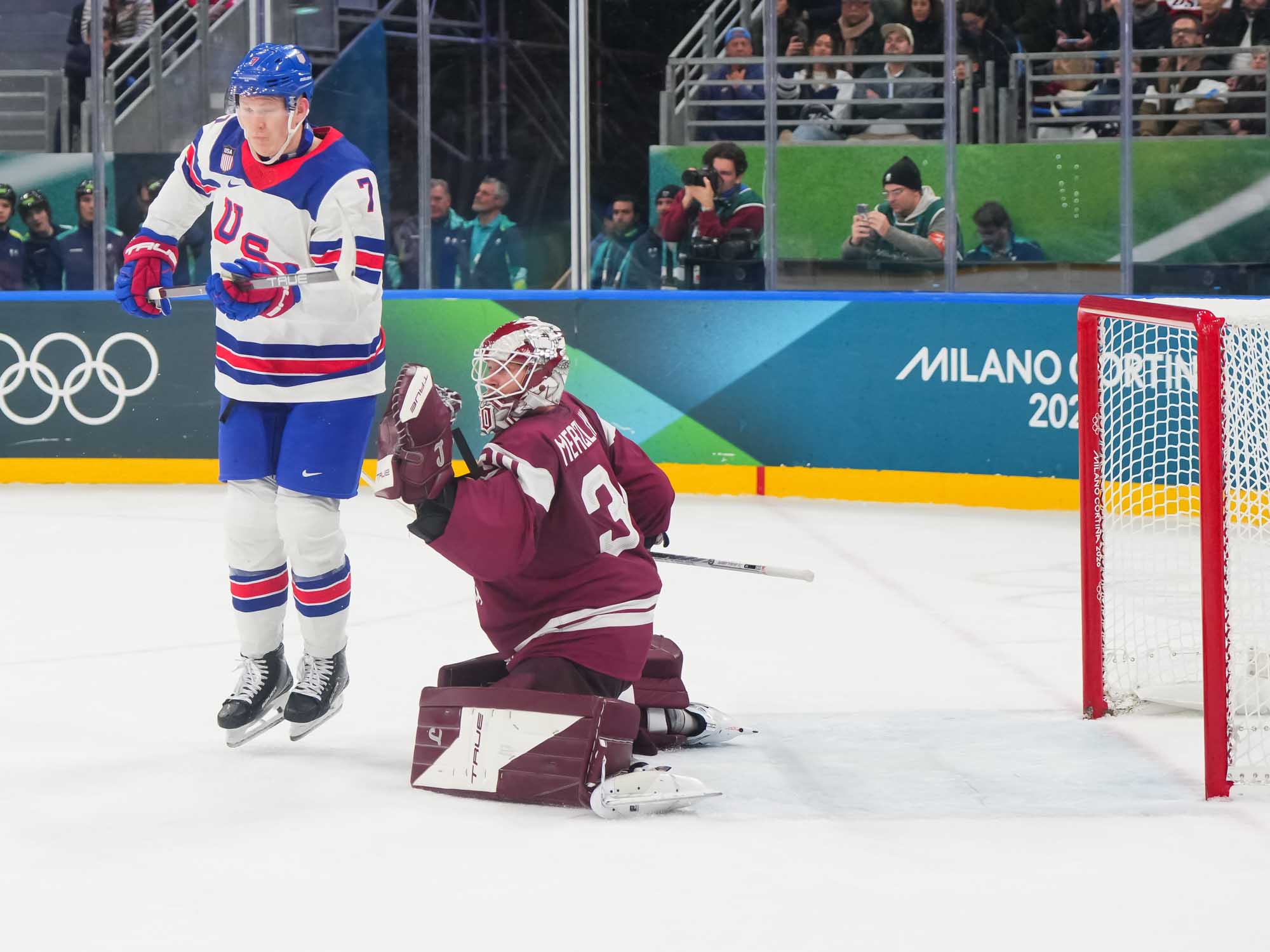 The atmosphere at the Milano Santagiulia Ice Hockey Arena was fantastic, as Latvian chants competed with American cheers all night long.