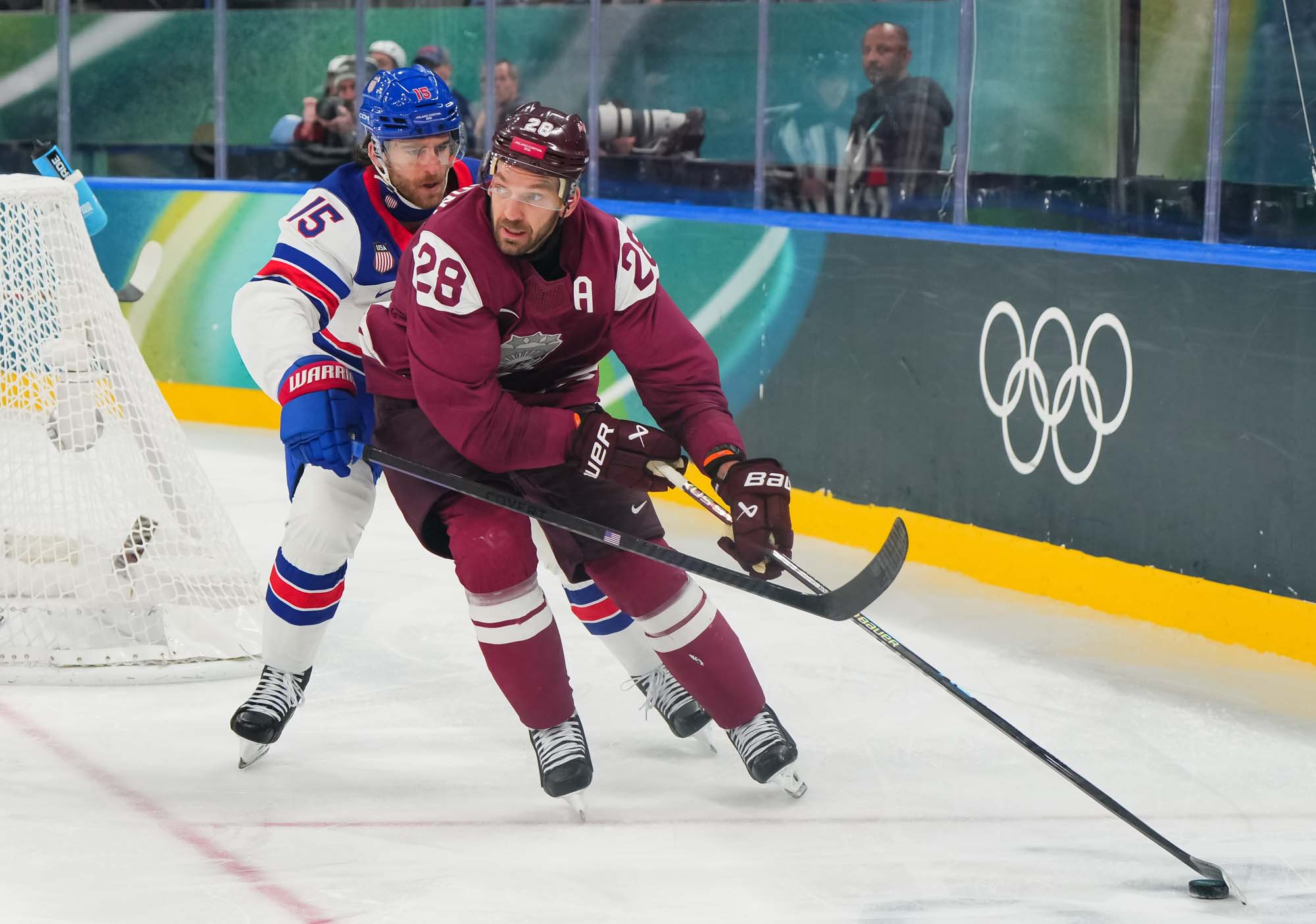 The momentum swung back to Latvia as Krastenbergs tied it up at 7:25, charging to the crease to backhand in a loose puck. A member of the 2023 Worlds bronze medal team, the 27-year-old HC Olomouc forward is participating in his second Olympics.