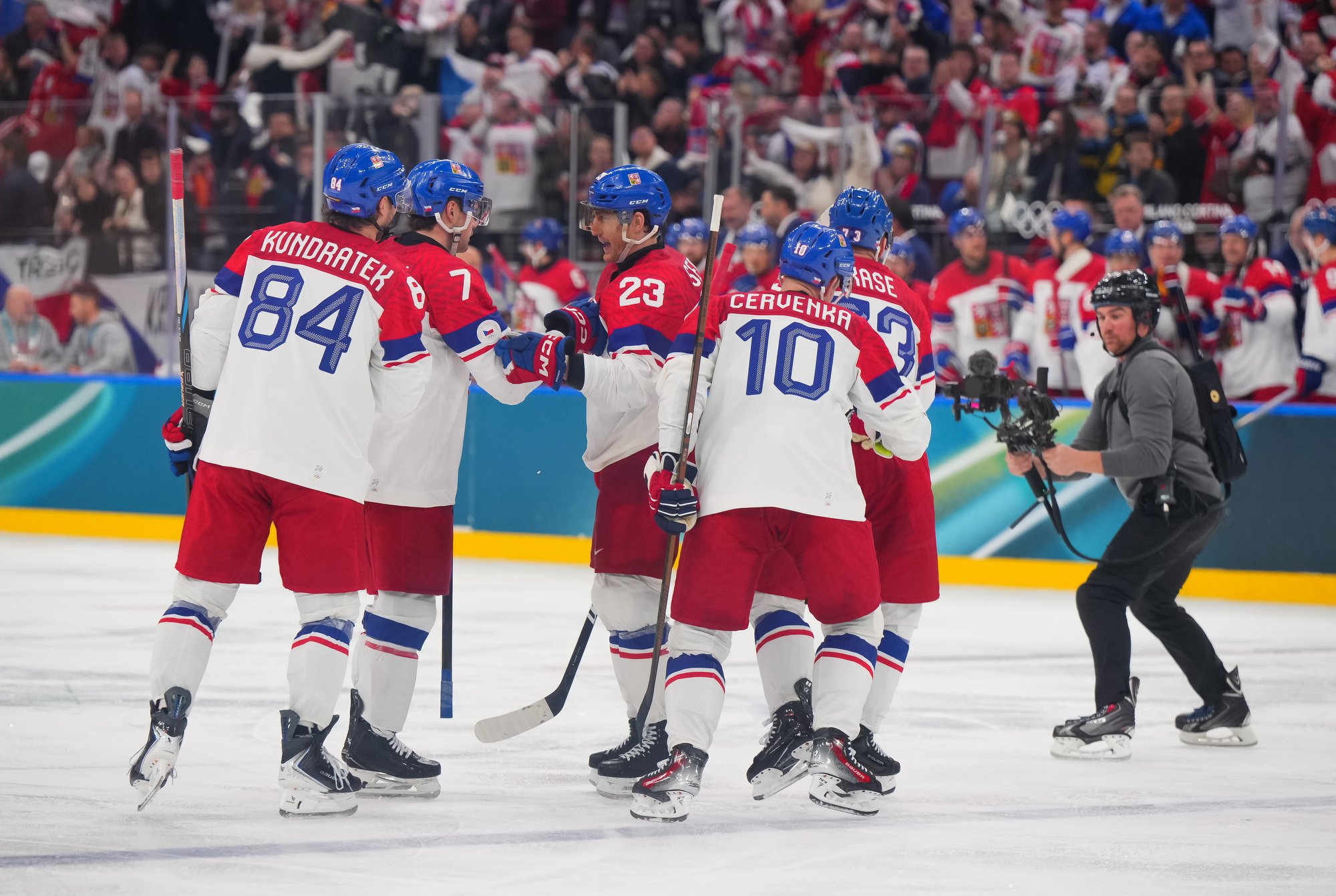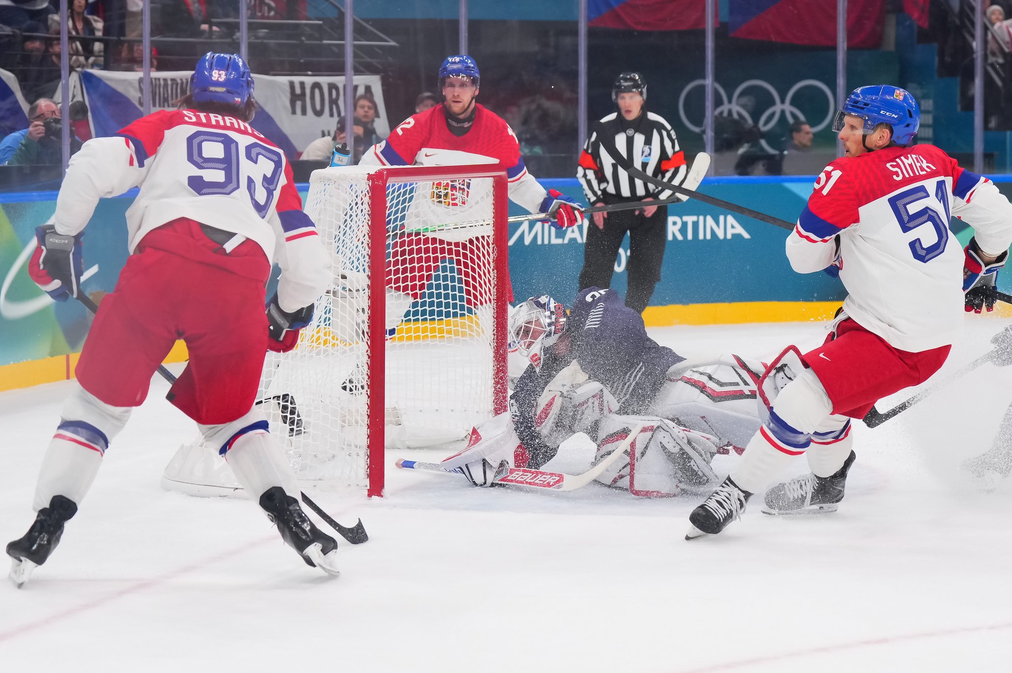 Just 48 seconds later, 40-year-old Roman Cervenka took a breakaway pass and went in alone, beating the goalie with a backhand over the glove to give the Czechs some breathing room. Treille decided to pull Neckar at this point in favour of Julian Junca.