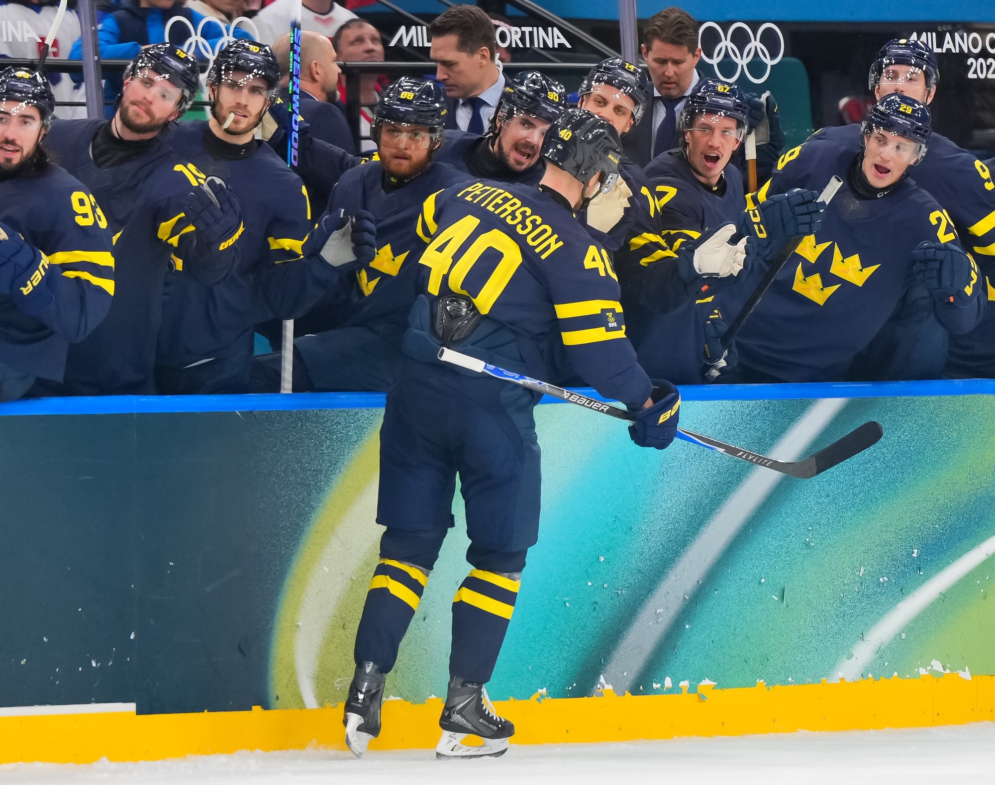 At 14:29, Pettersson made it 3-2 Sweden. On the rush, Filip Forsbereg, who moved up the lineup here after serving as Sweden's 13th forward previously, found the Vancouver Canucks star in the left faceoff circle. Pettersson fired the puck through Hlavaj's five-hole and roared with joy.