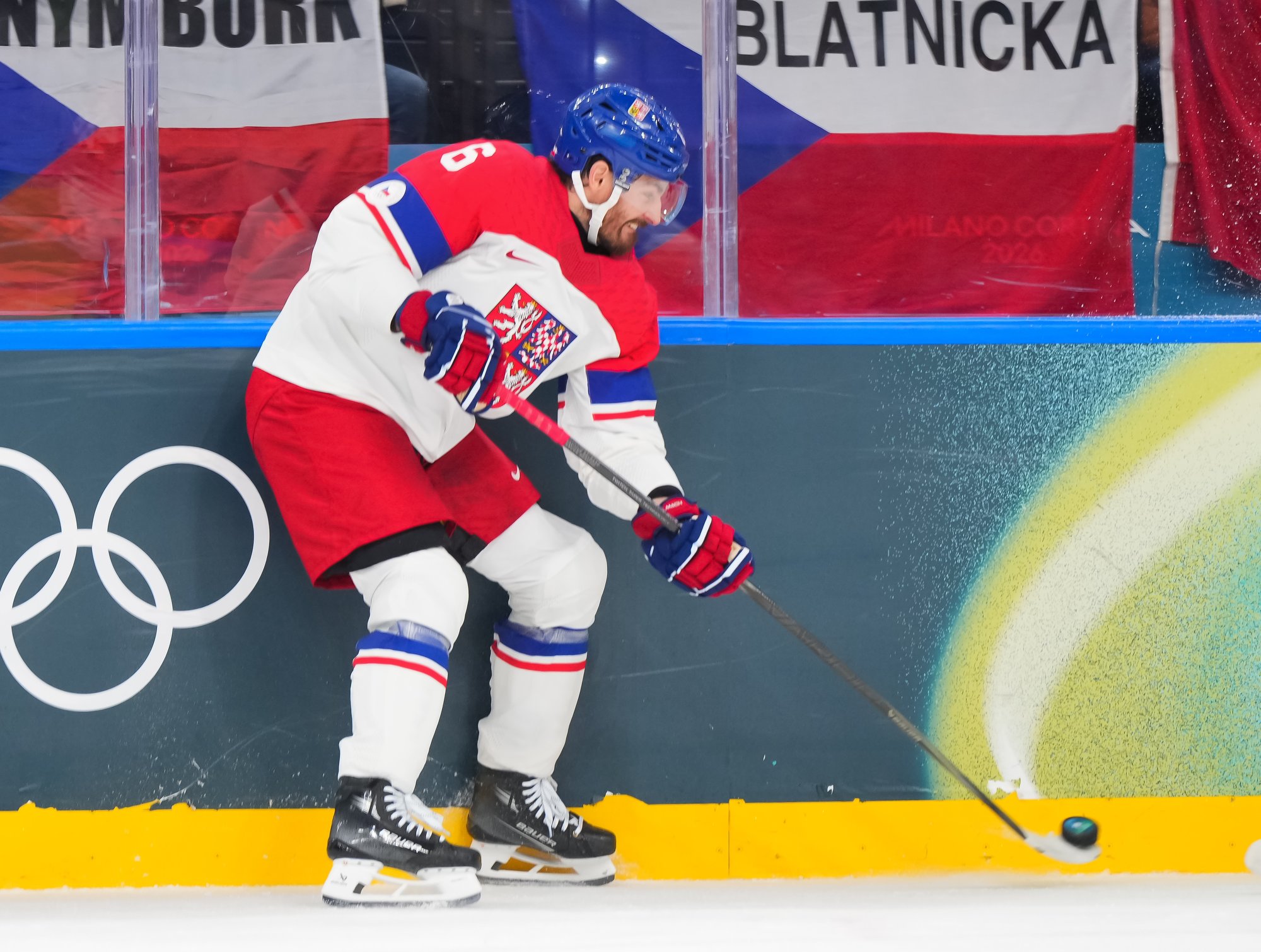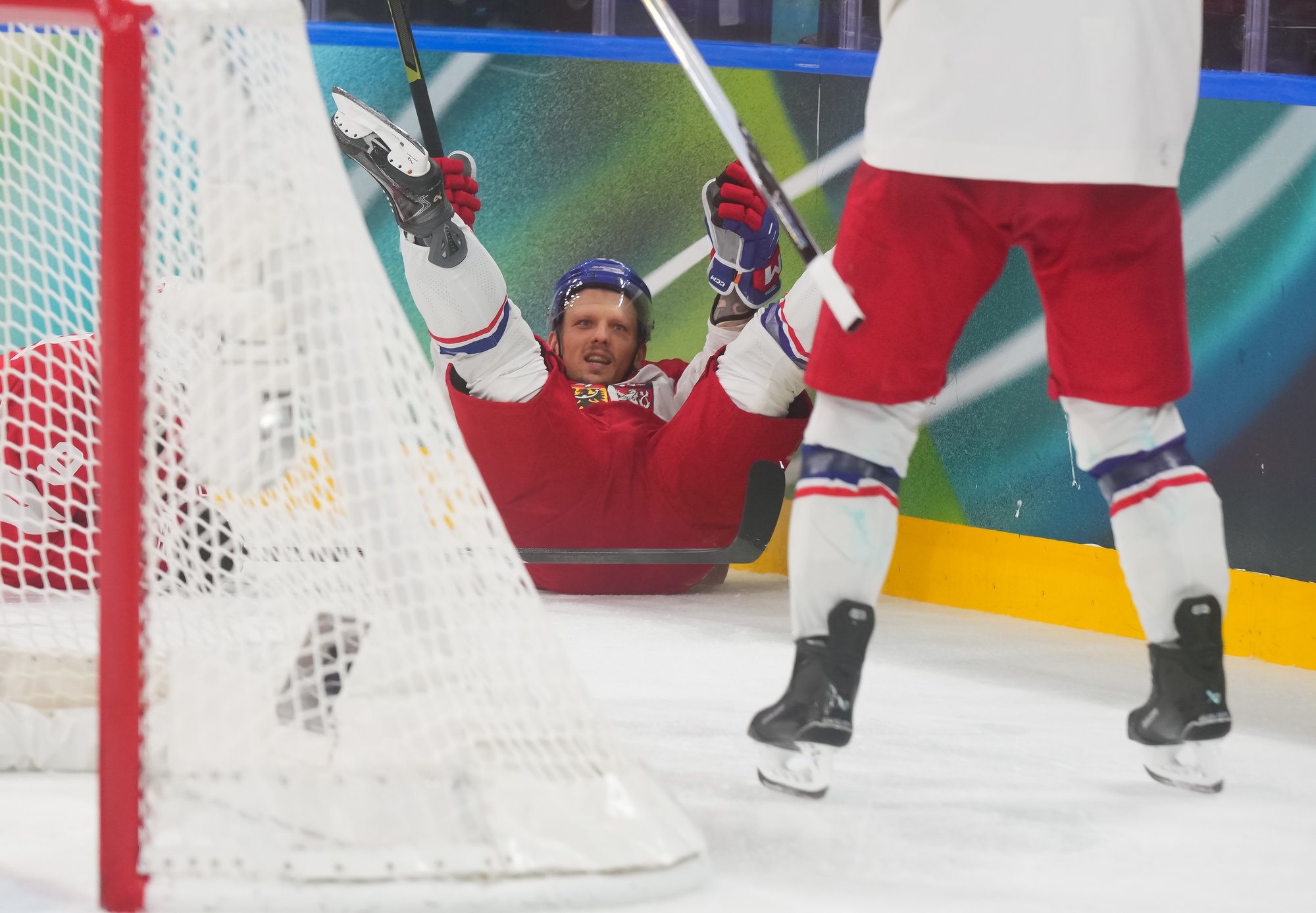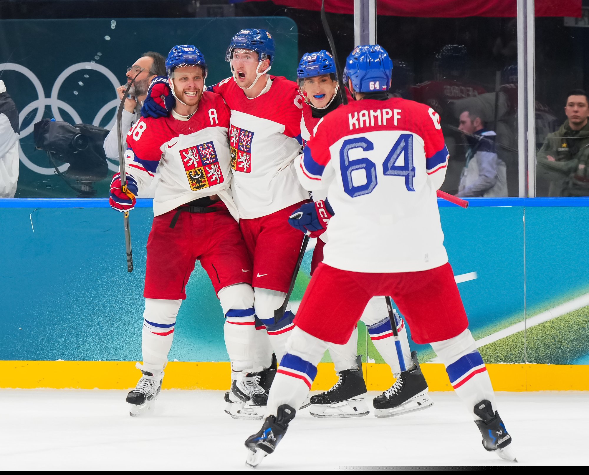 The Czechs pressed for the tying goal, which came at 6:33. Necas's point shot through traffic deflected off Chlapkik in front, and a charging Simek whacked the puck into a wide-open net before sliding into the end boards.