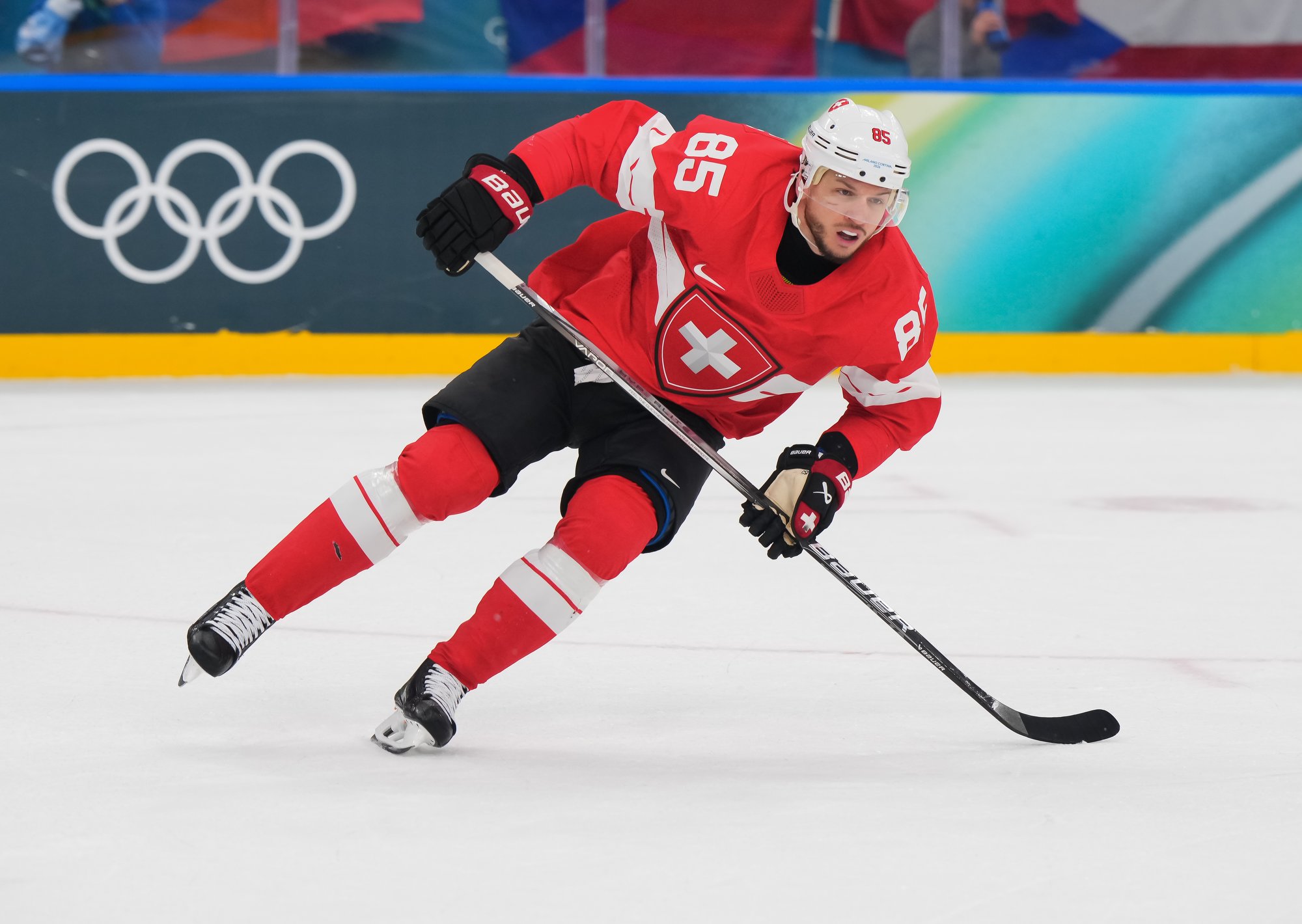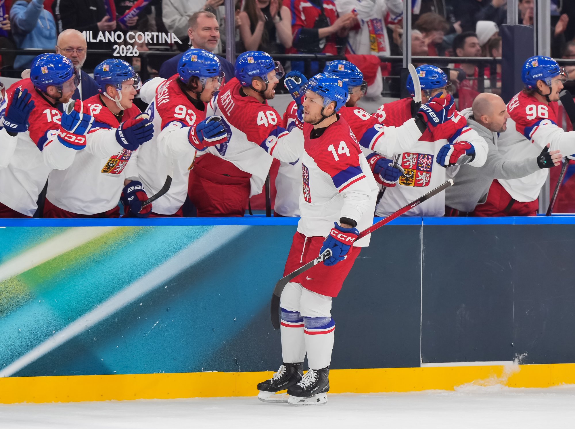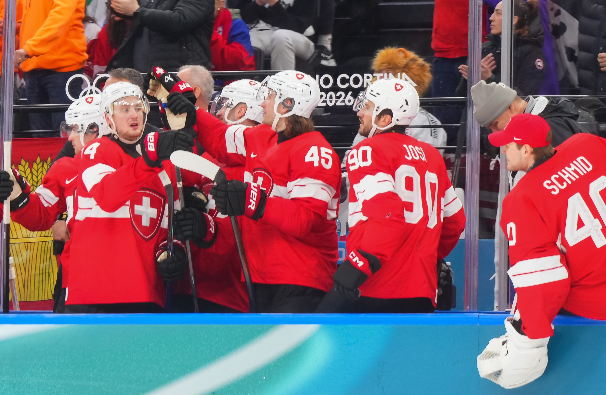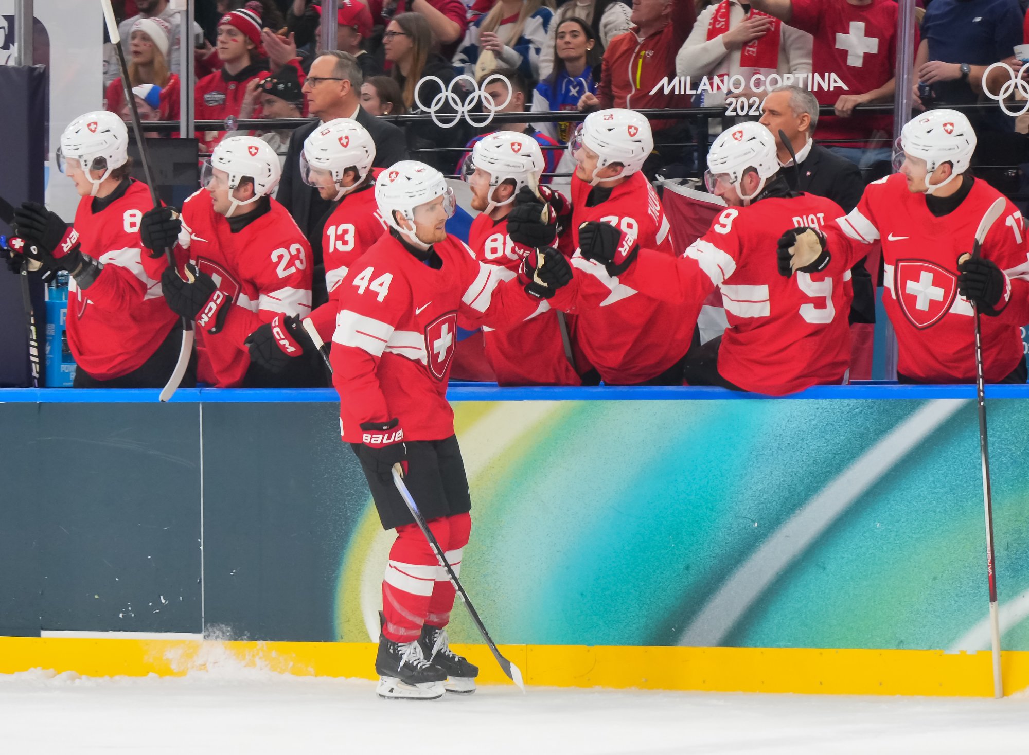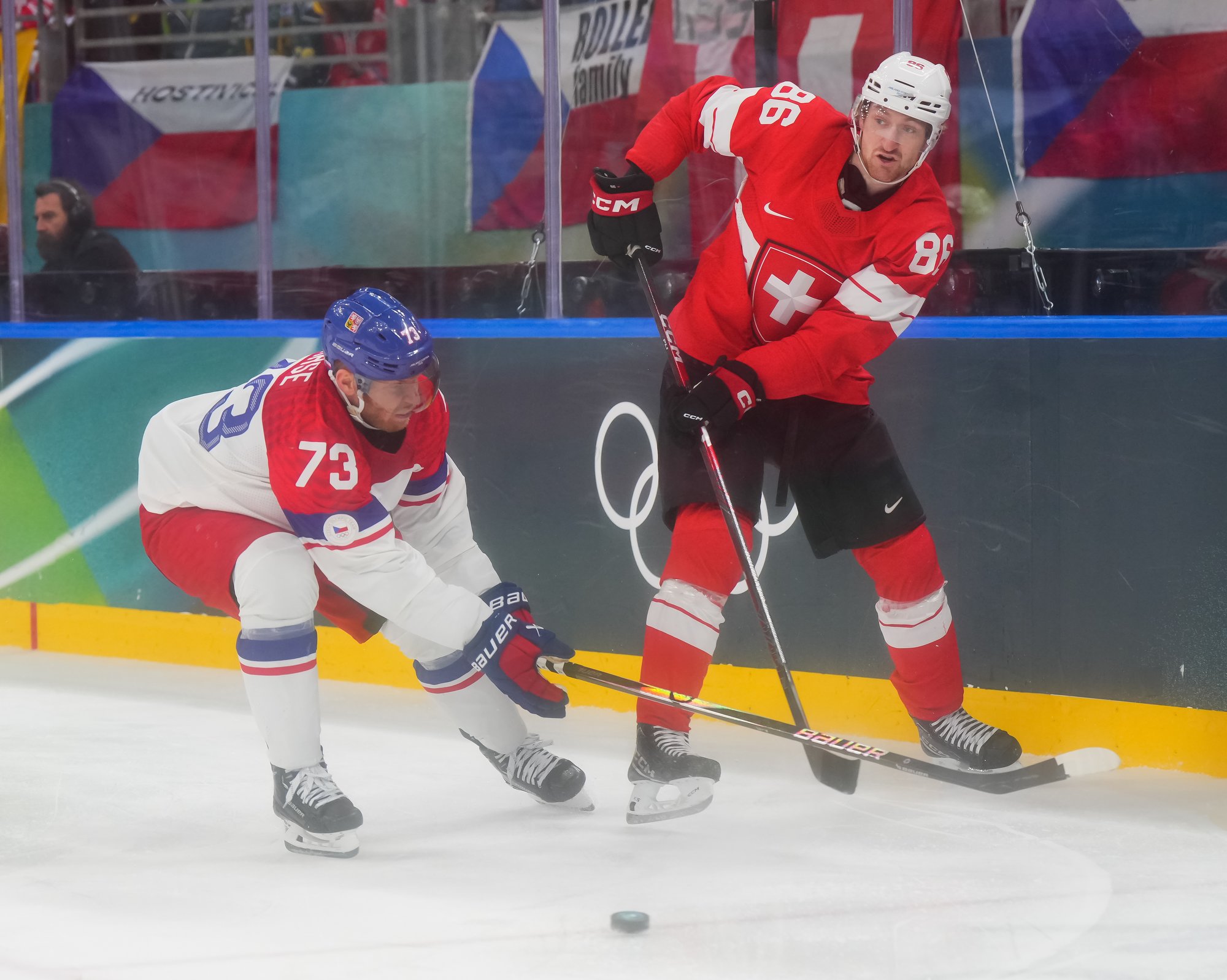 Activating their defence, the Swiss finally got some puck luck with the equalizer at 16:53. Busting into the Czech zone, Josi tried to skim the puck left to Moser, but his pass deflected off the skate of Radko Gudas and past Dostal. The Swiss faithful at the Milano Santa Giulia Ice Hockey Arena burst into song.