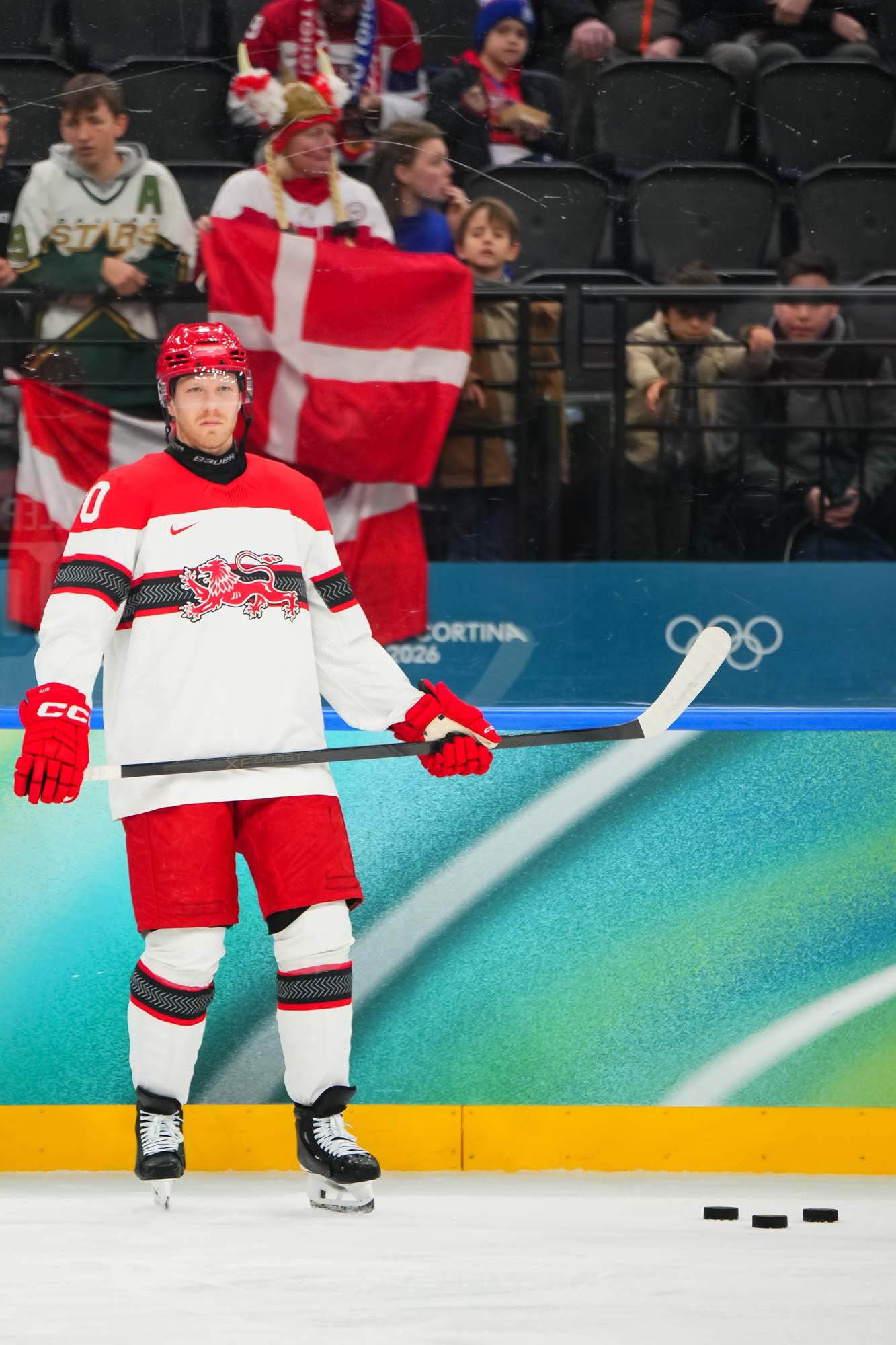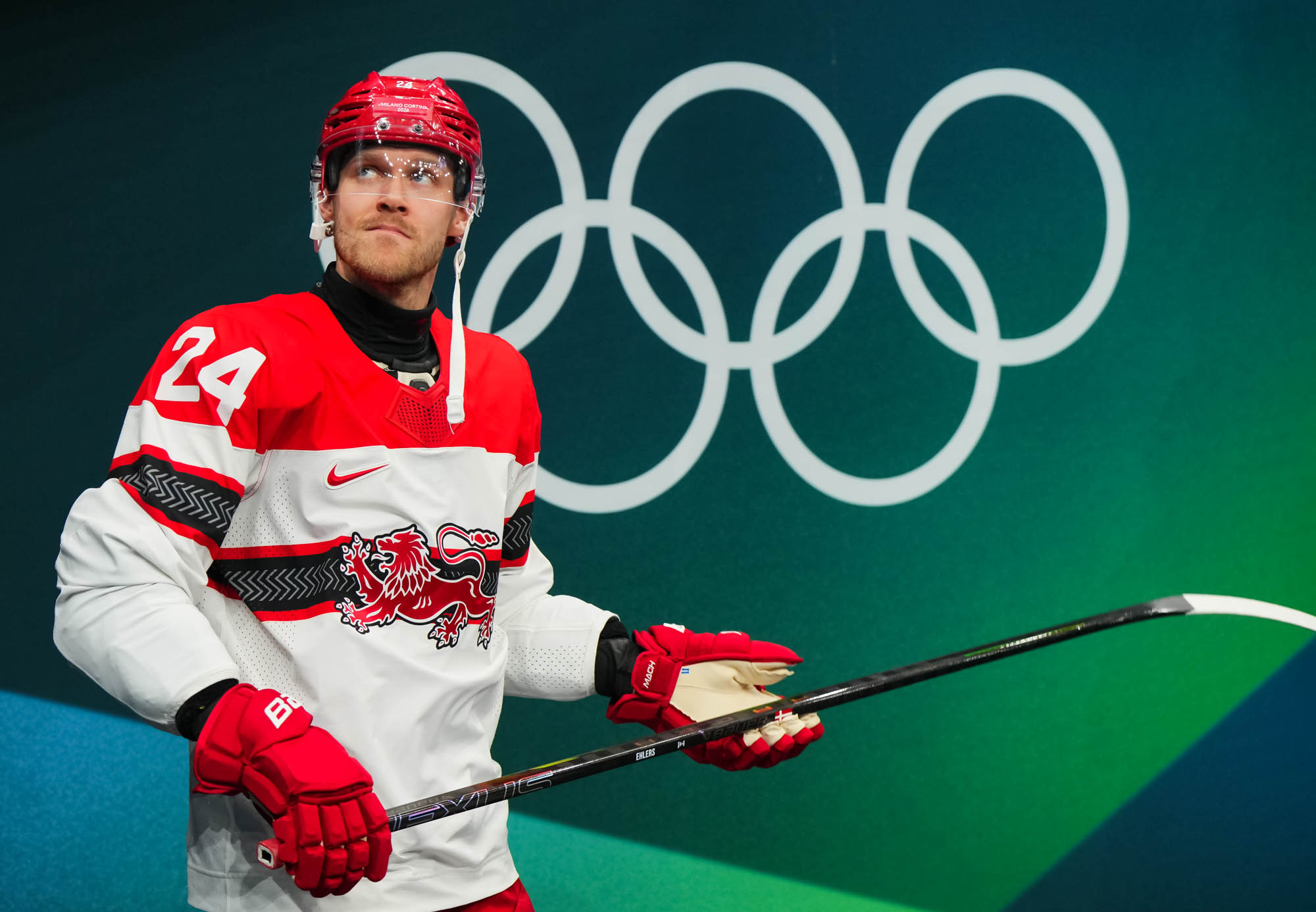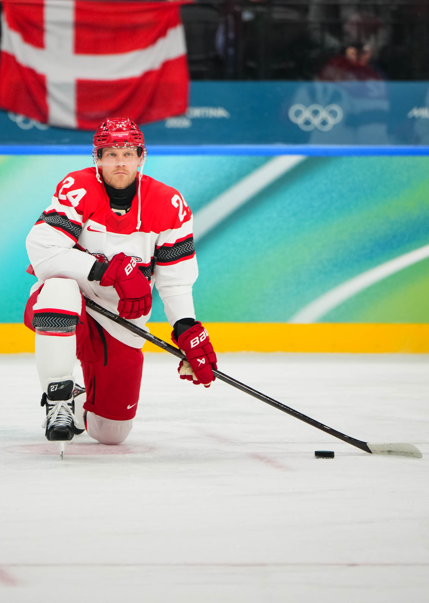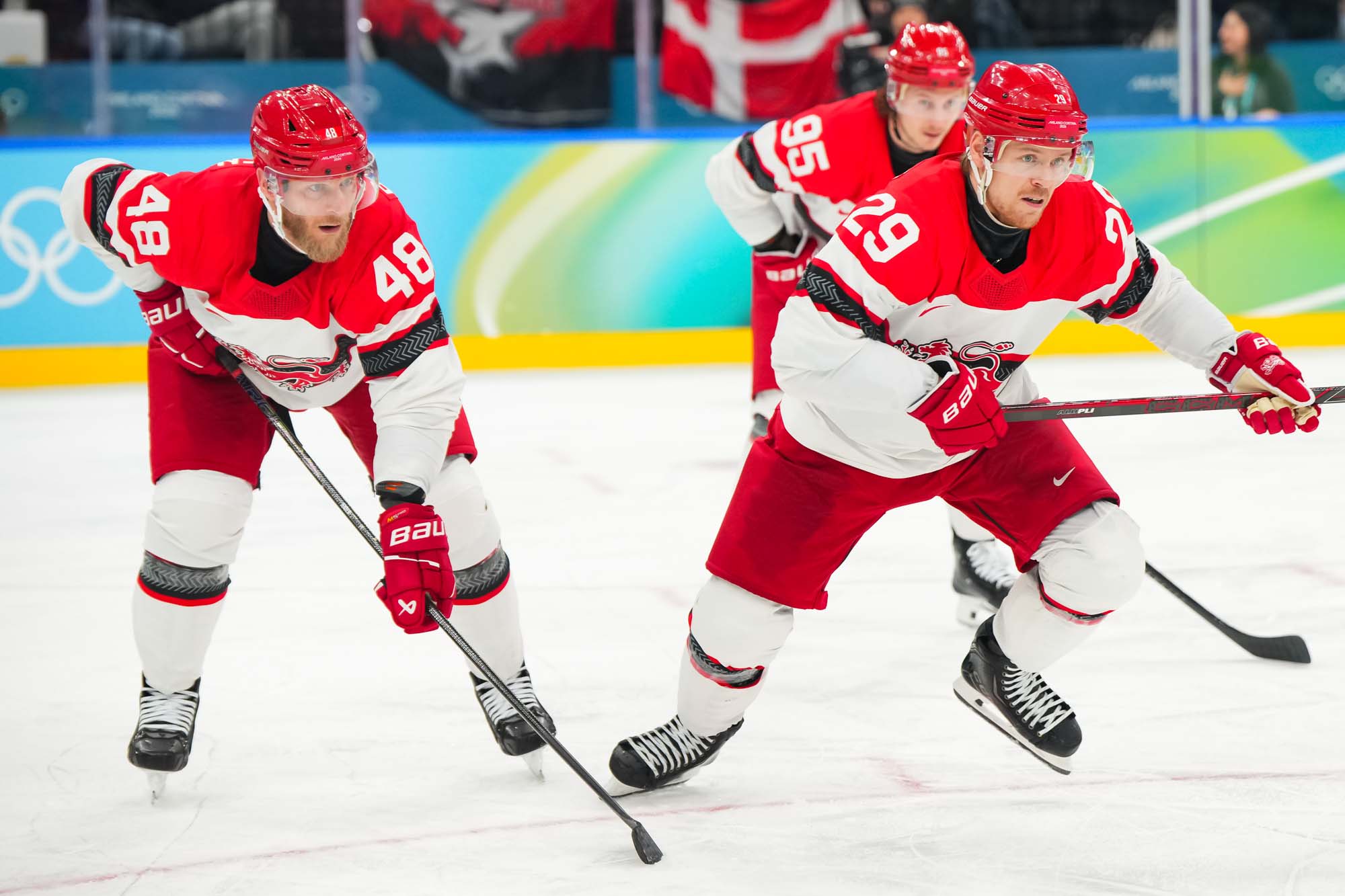 But only a fool would think Denmark had given up. Nick Olesen scored on the power play on a nifty move from the goal line, backing up to the front of the net and beating Dostal with a wrister top shelf, assisted by Oskar Moelgaard and Blichfeld.