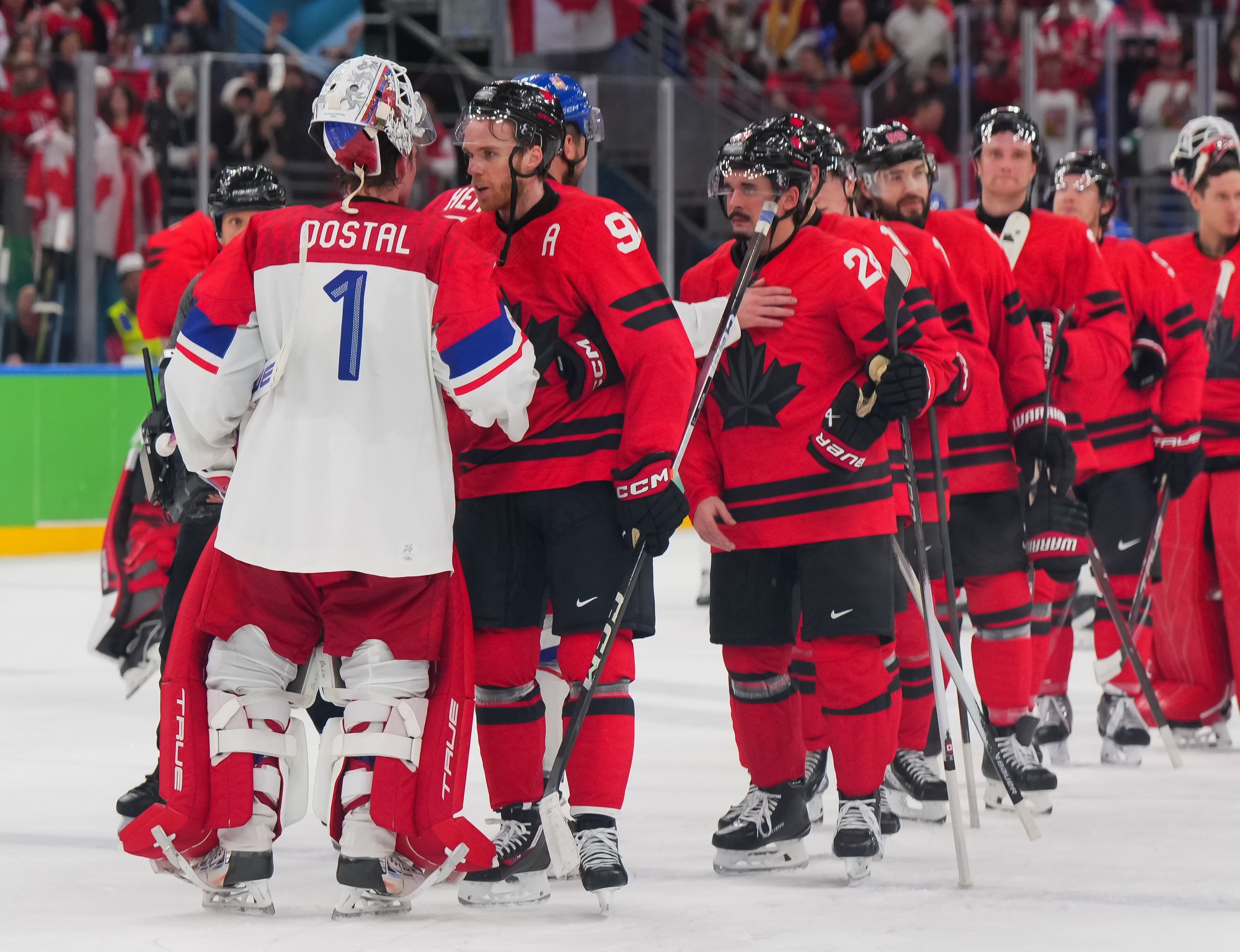 Canada outshot Czechia 41-24. Canadian goalie Jordan Binnington, who played in the opening 5-0 win over Czechia and the 10-2 rout of France, got the job done. Dostal was exceptional in the Czech net.