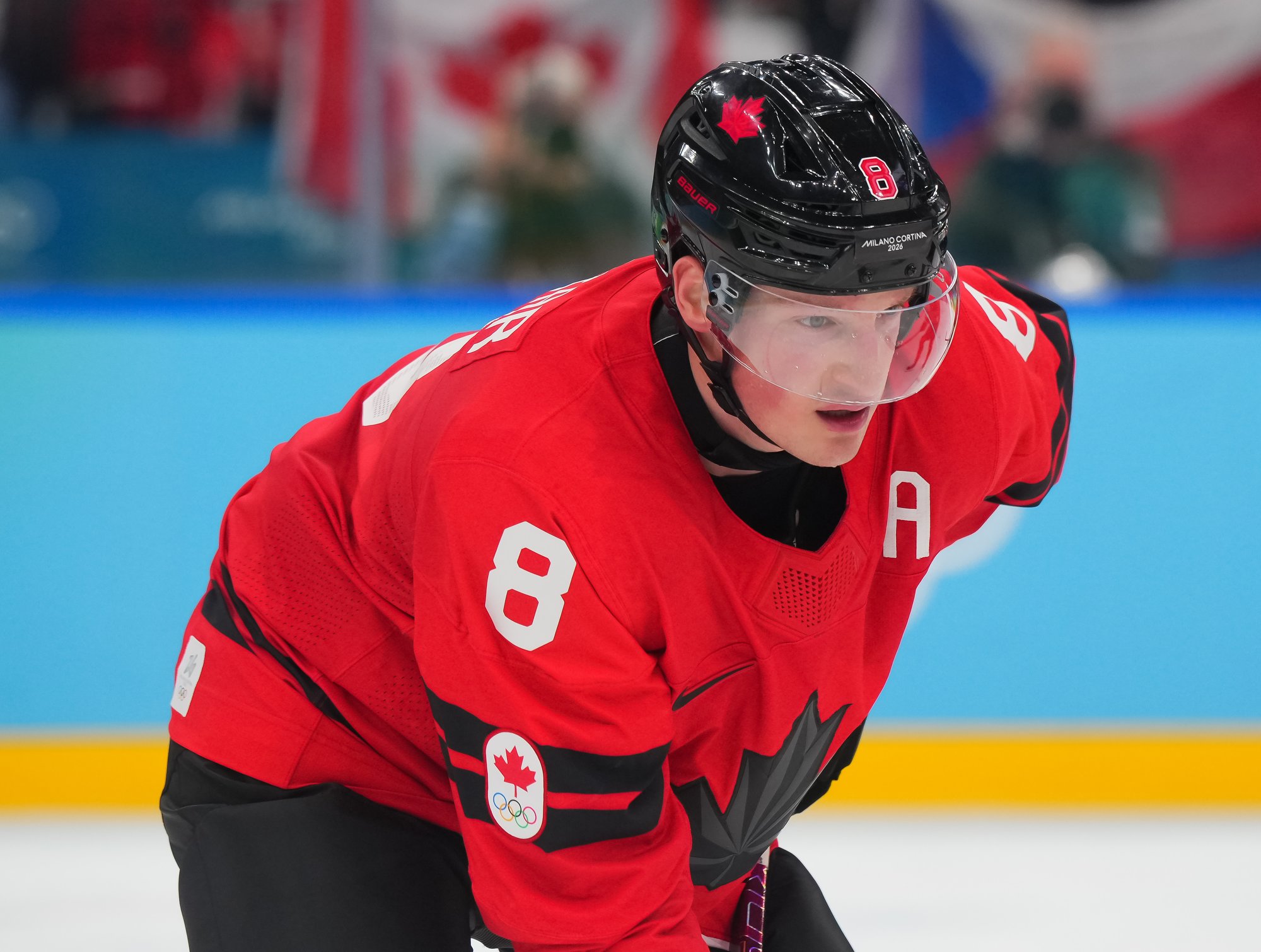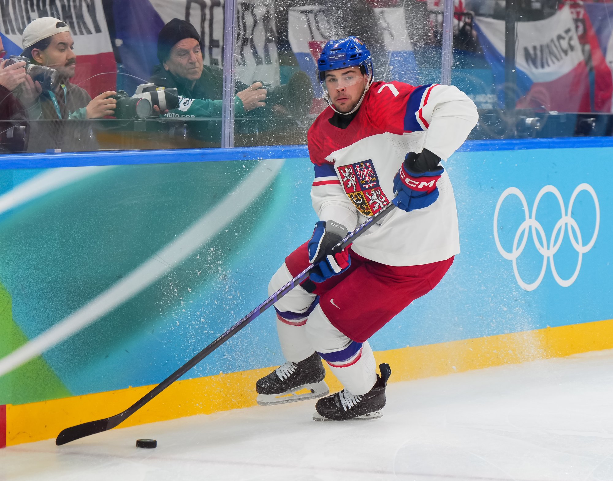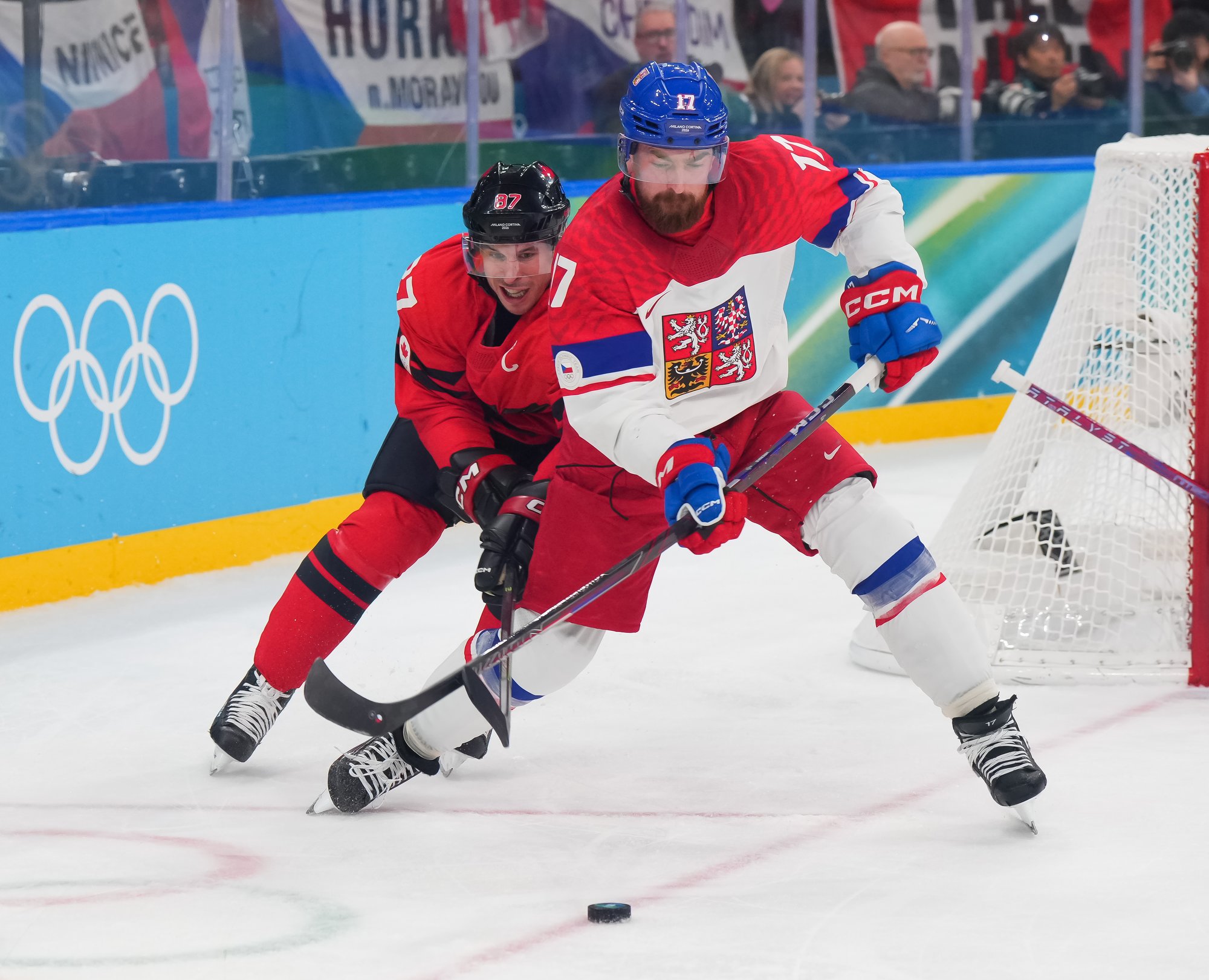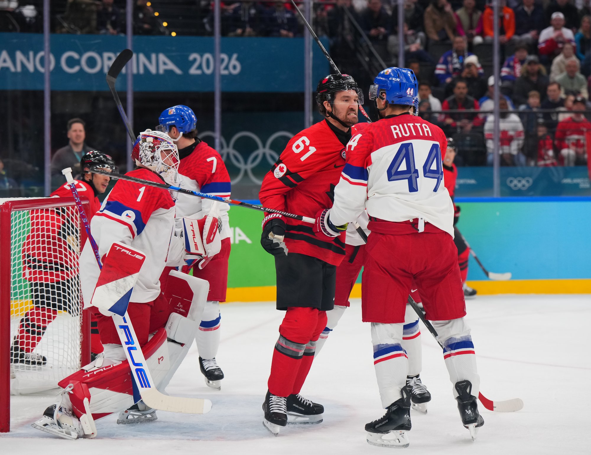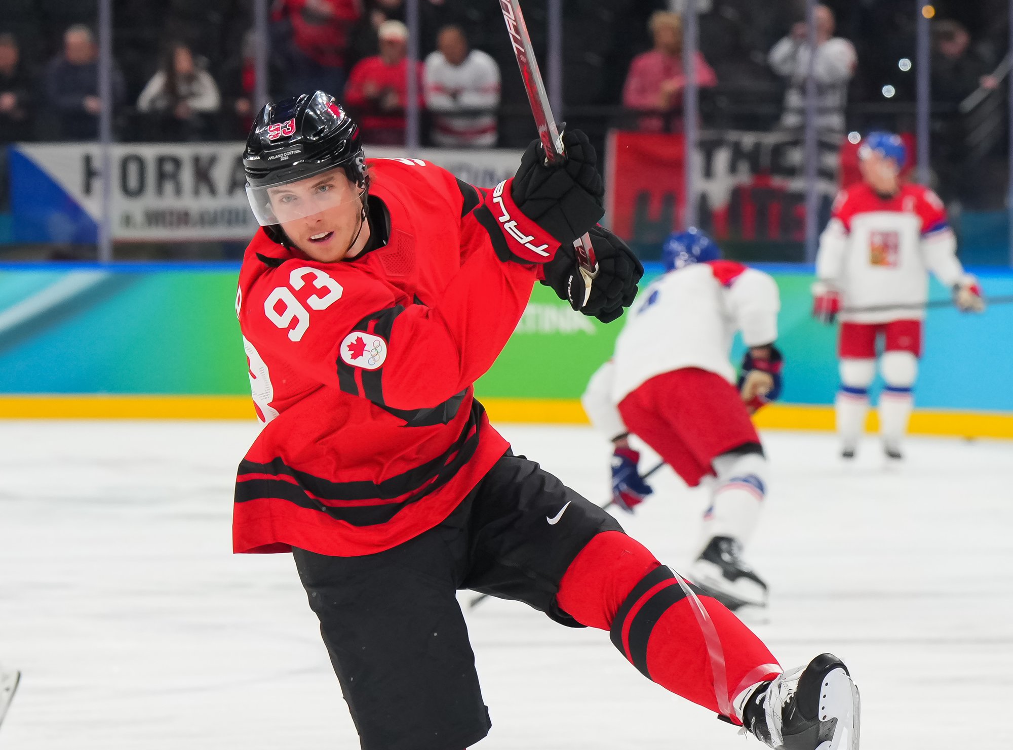 The Czechs showed some early nerves puckhandling-wise. It bit them when McDavid stole the puck from Pastrnak inside the Czech blue line and then sent it back in the slot to Celebrini, who zinged home his tournament-leading fifth goal at 3:05.