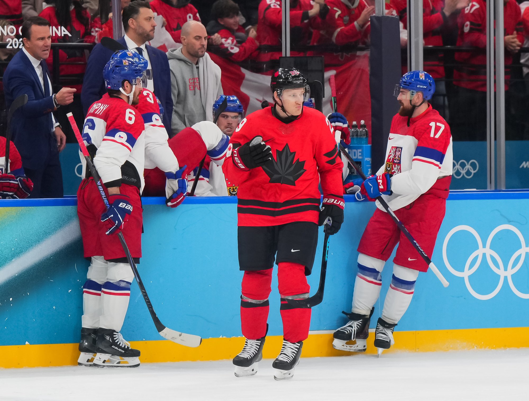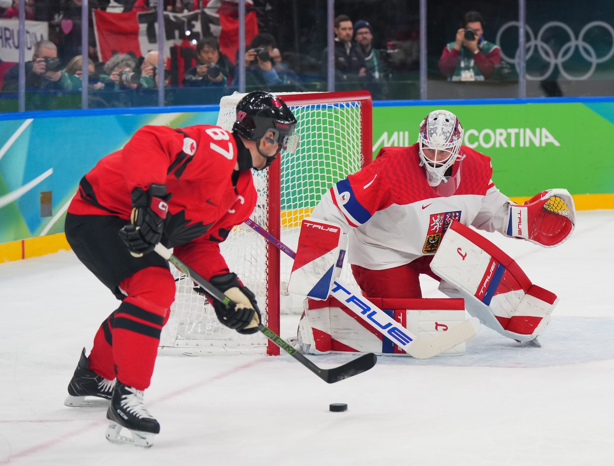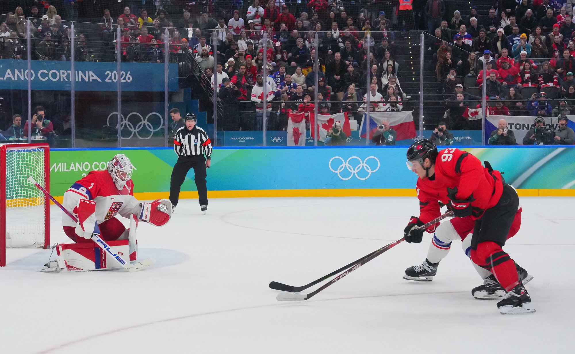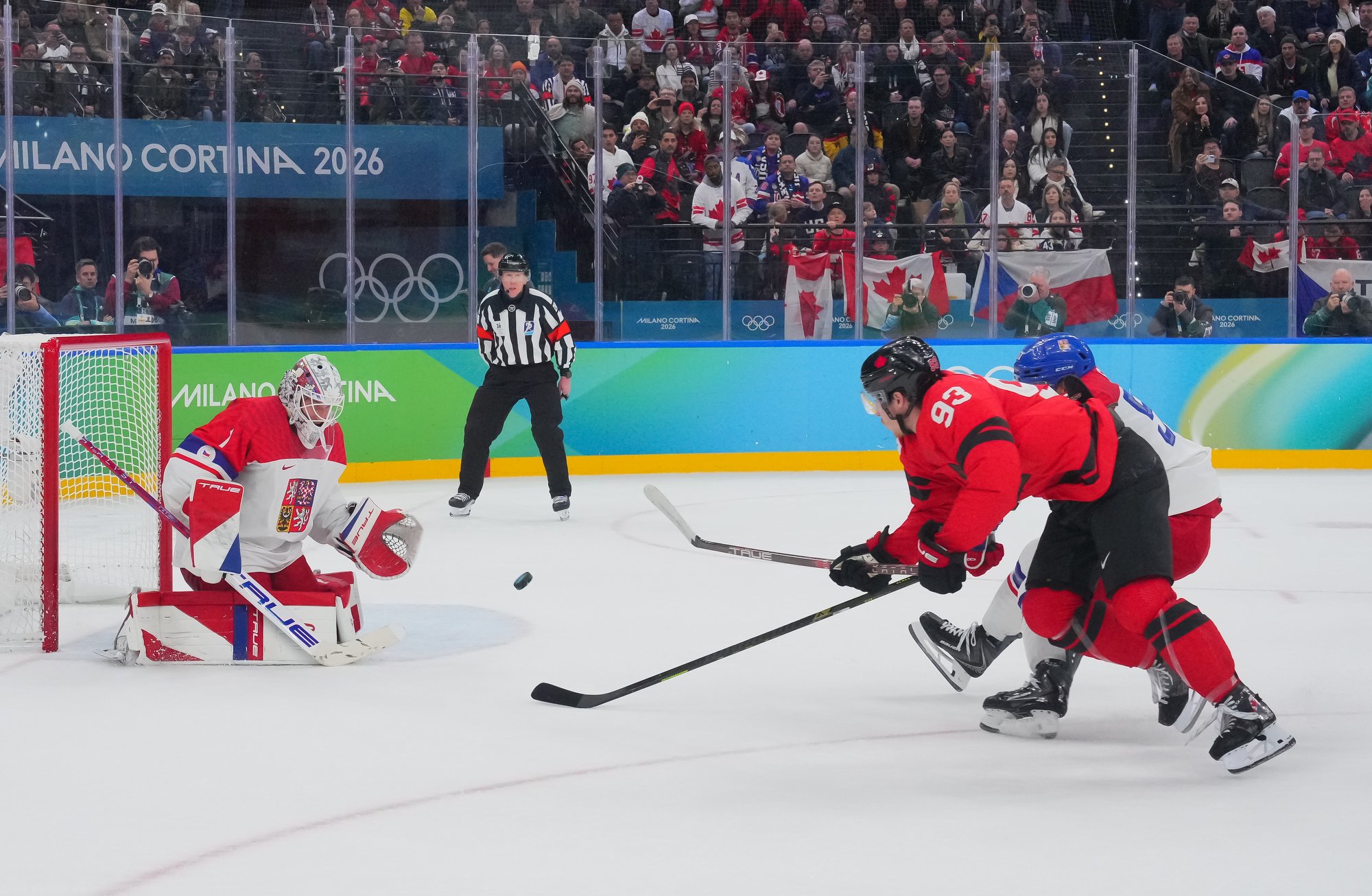At 14:49, Pastrnak atoned for his earlier error, giving Czechia a 2-1 lead on a power-play one-timer from his favourite spot in the left faceoff circle. It was the same spot from which the Boston Bruins superstar scored the gold-medal winner against Switzerland at the 2024 IIHF Ice Hockey World Championship in Prague. This marked the first time Canada has trailed at these Olymipcs.