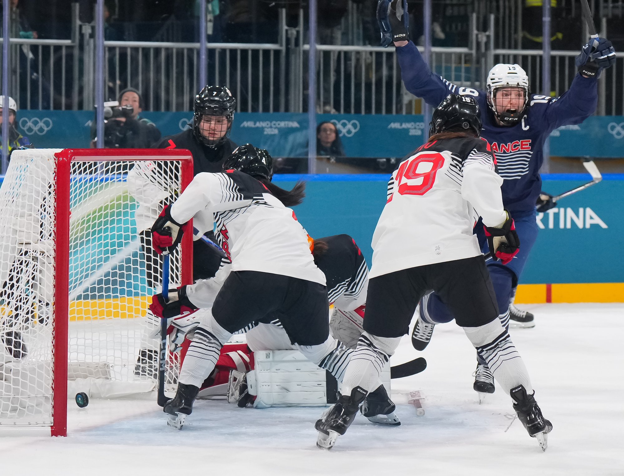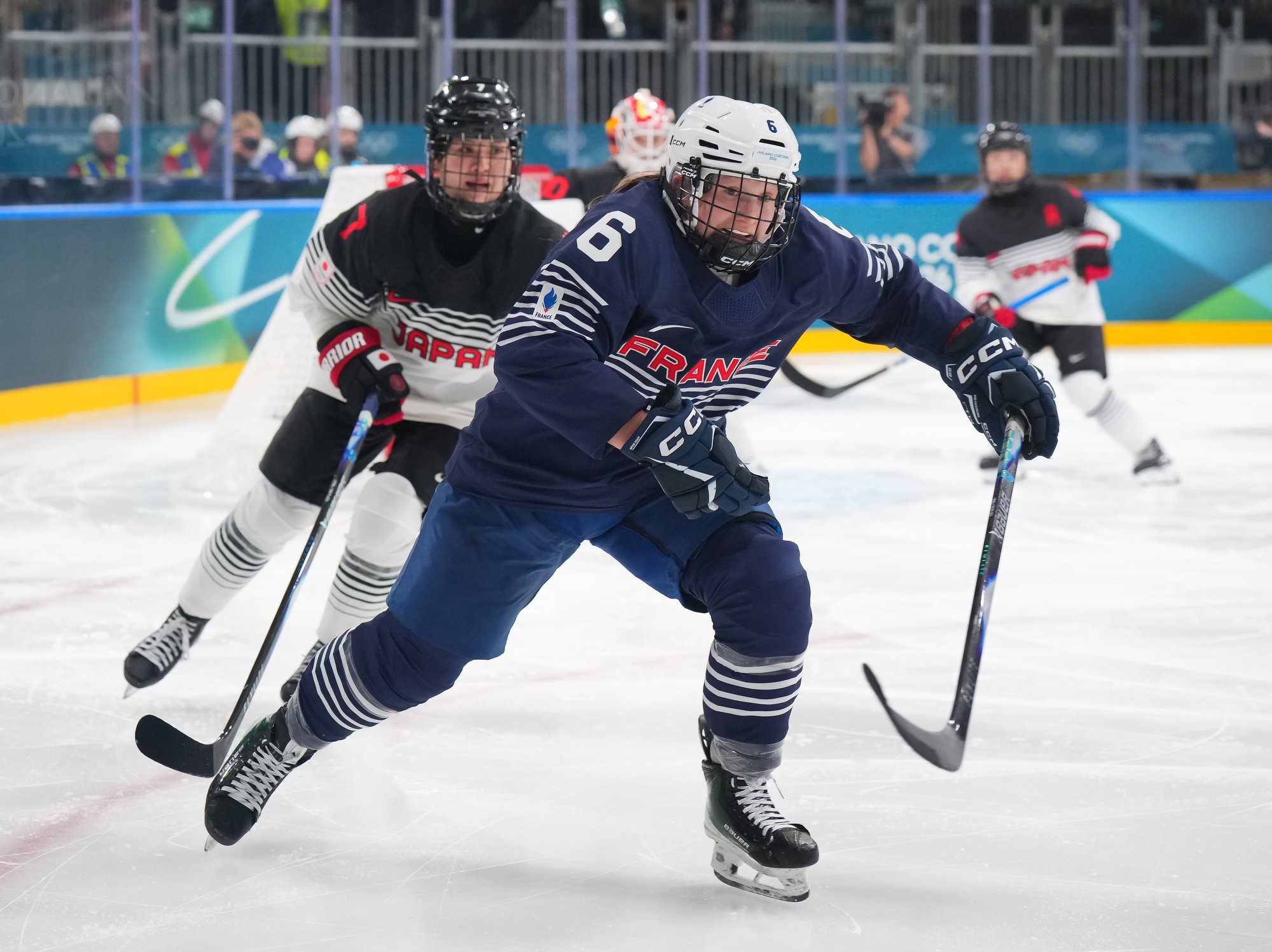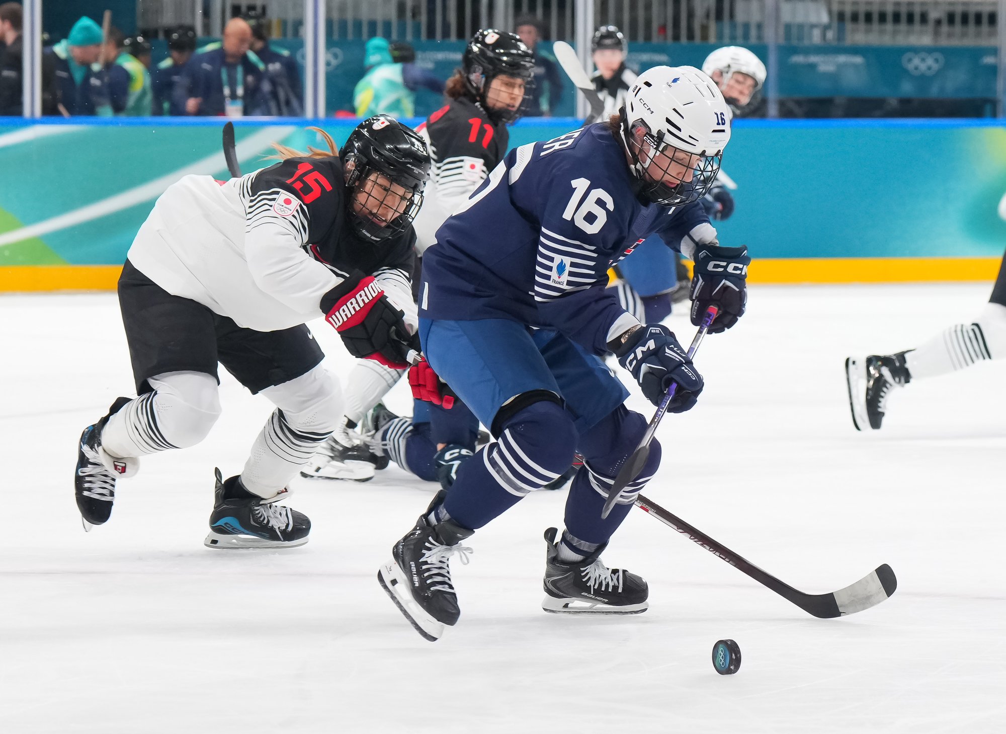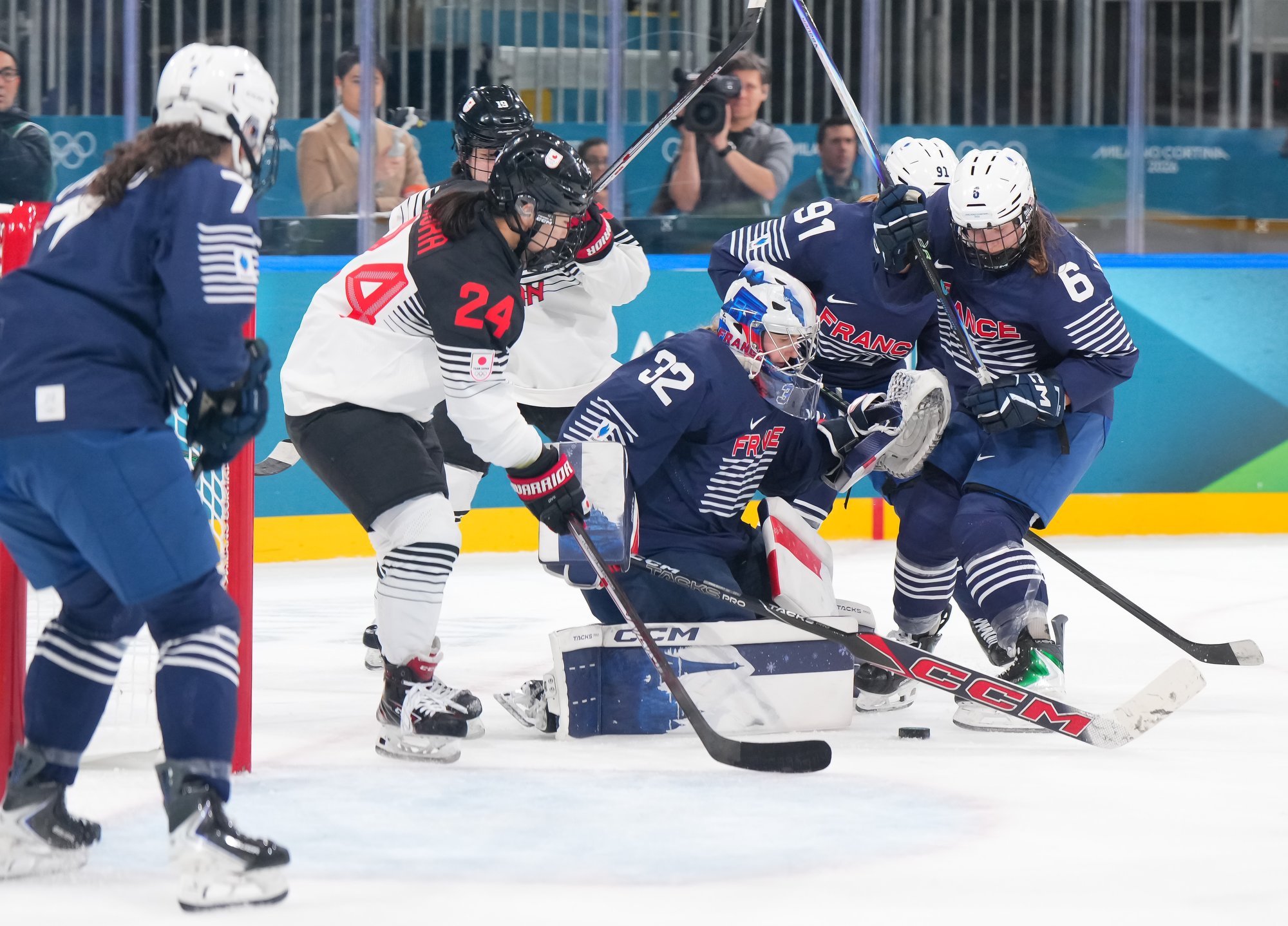 Indeed, the best pure opportunity belonged to France. Julia Mesplede fired a low shot from the slot that was nicely stopped by the left pad of Miyuu Masuhara, who was the third goalie at the 2022 Games and was making her Olympics debut.