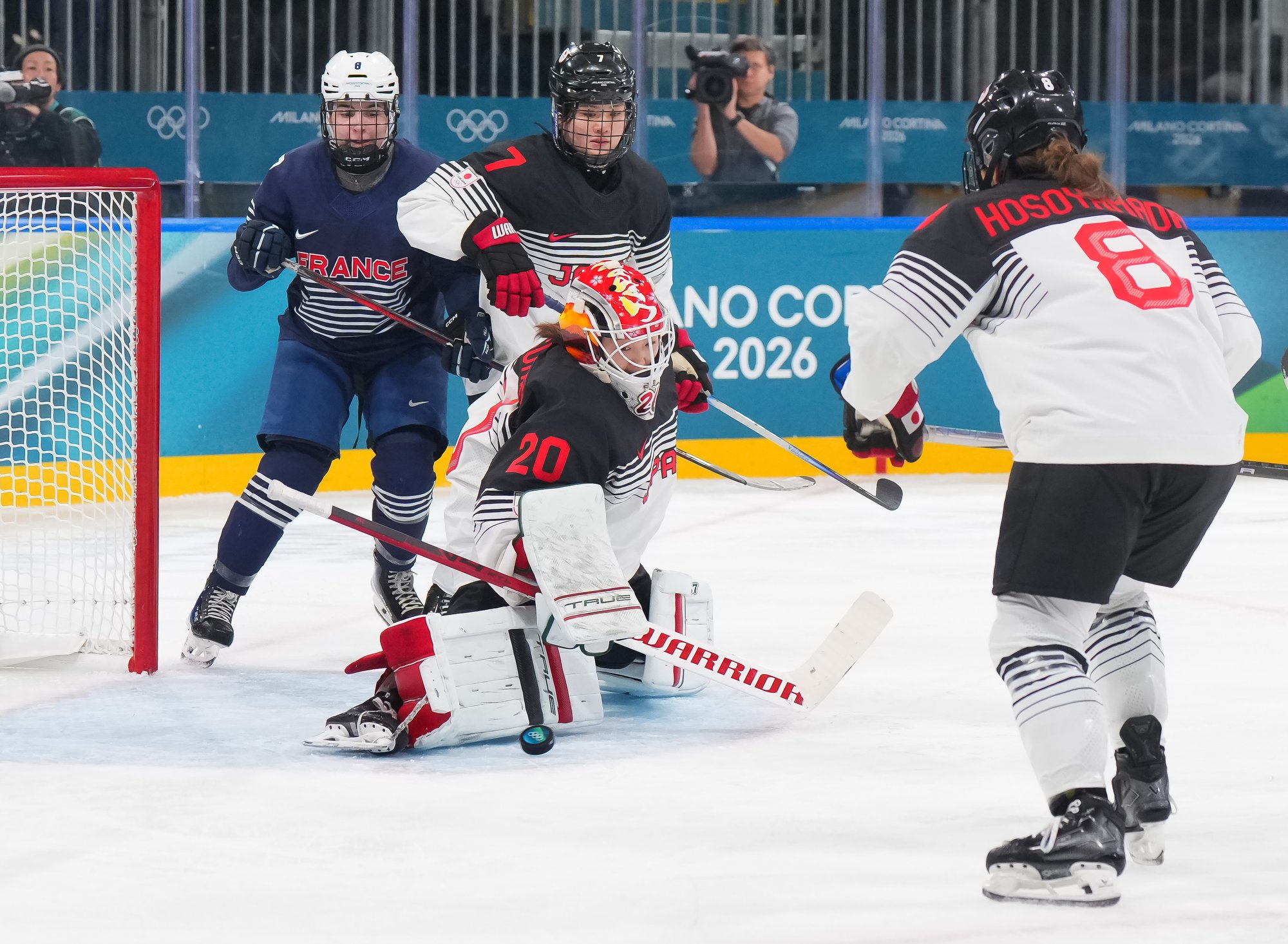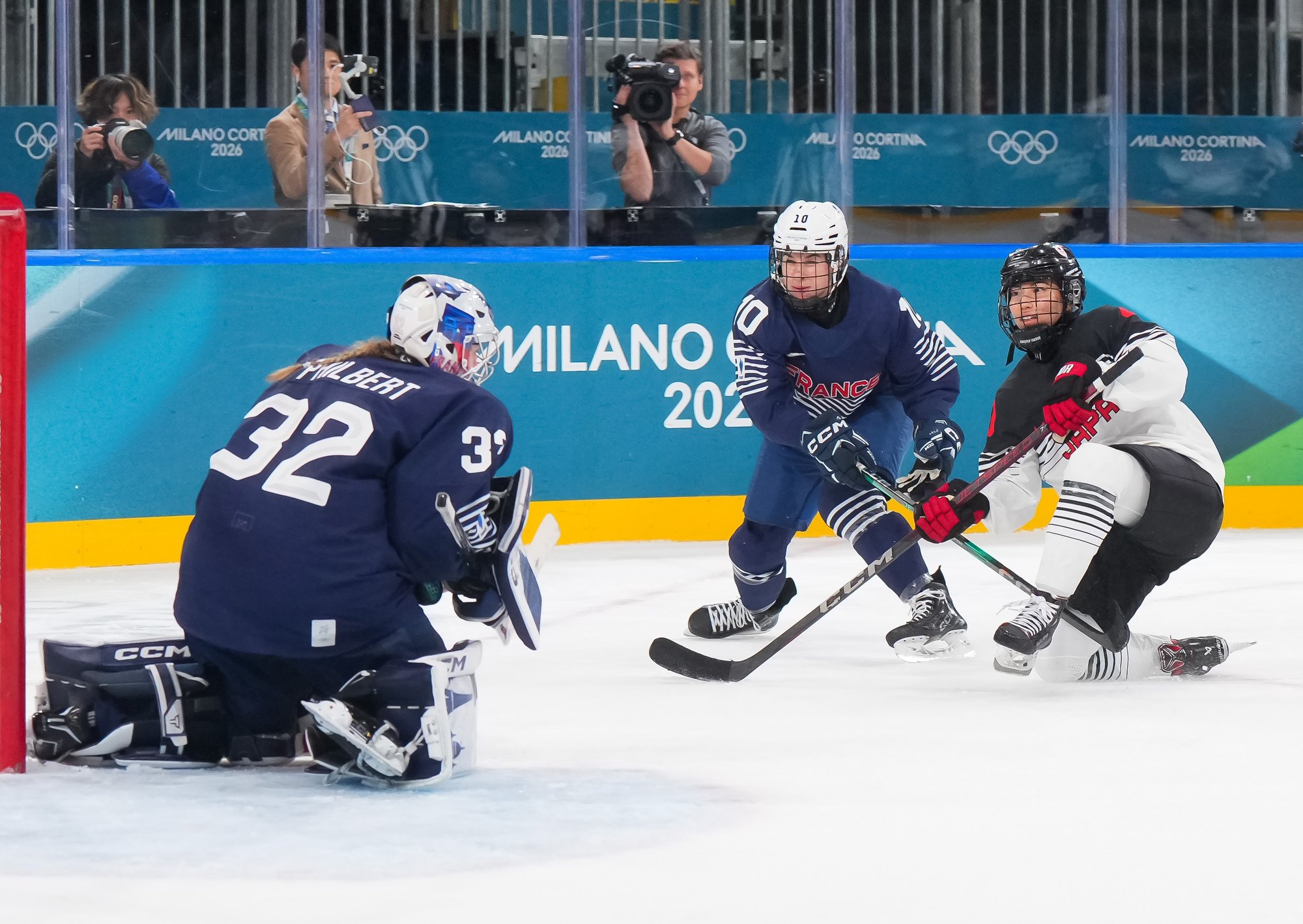 In the dying seconds with Philbert on the bench and France on their first power play of the game, Gabrielle de Serres got the French to within a goal but only 13.3 seconds remaining. They couldn't rally further.