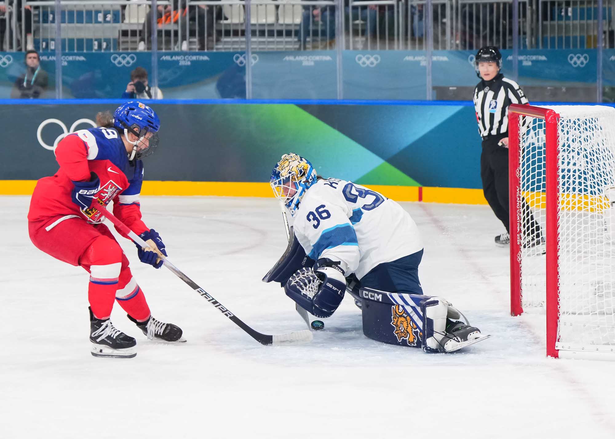Suomi had a great chance to tie the game early in the second when Michelle Karvinen came out of the penalty box to take a breakaway pass. She was stoned by a shoulder save from Peslarova. At the other end, Mlynkova burst up the middle, blowing by three Finns and charging in on goal where she was denied by Keisala.