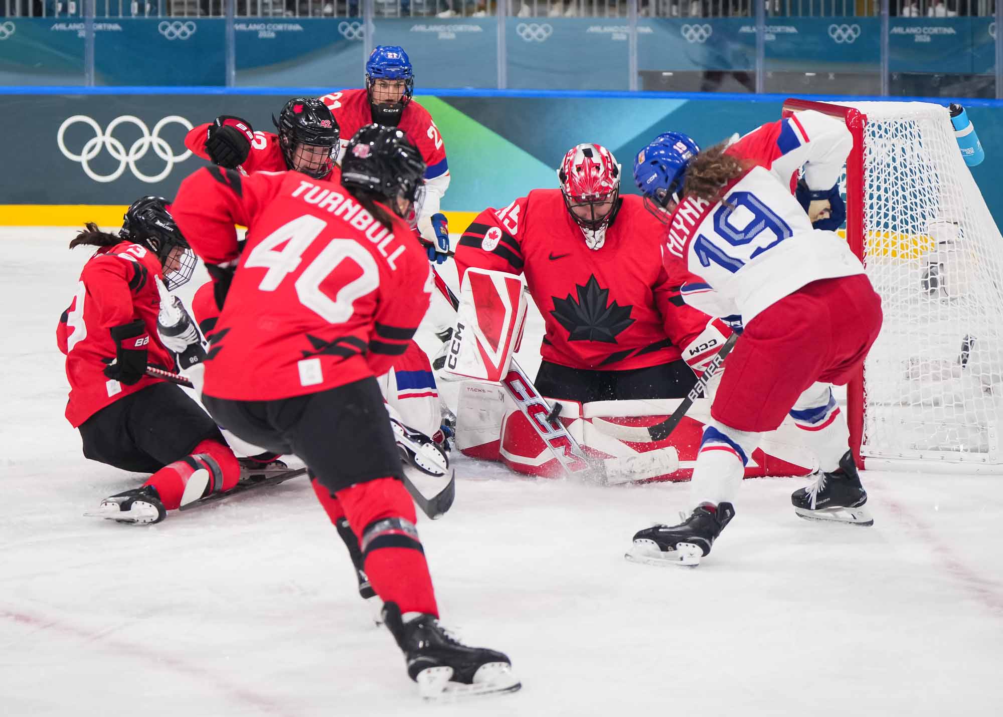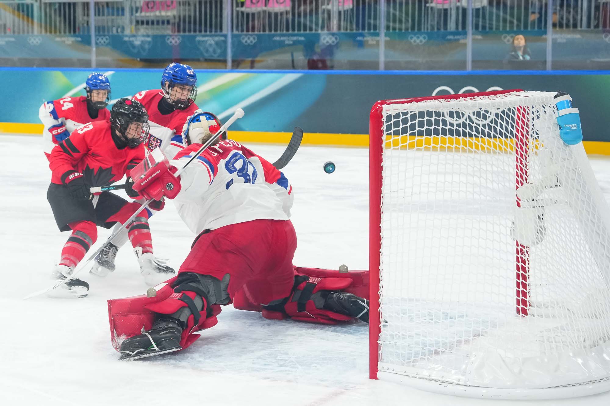 The Czechs ended Desbiens' shutout bid midway through the third on the power play. The goalie stopped a shot by Kaltounkova but couldn't control the rebound, and Natalie Mlynkova was there to bang it in at 8:38.