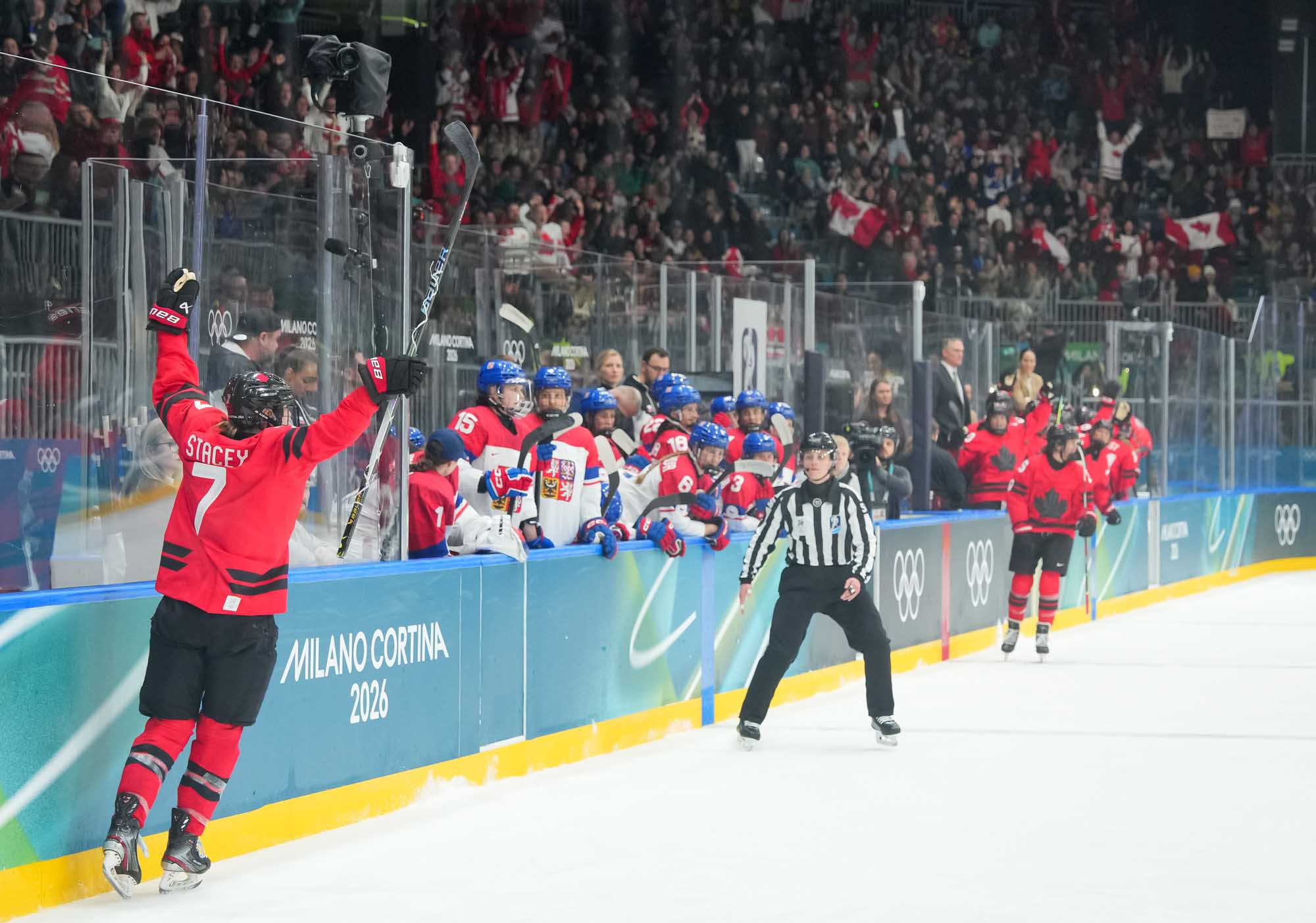 Ann-Renee Desbiens made her best save of the period soon after, stoning Tereza Vanisova from in close. Kaltounkova, who leads the PWHL in goals with eleven, took another penalty for a late hit, giving Canada a two-skater advantage. Julia Gosling banged in a rebound at 18:57 moments after Poulin returned to the bench, acknowledged by a roar from the crowd. Her return, however, was only to boost the spirits of her teammates. She didn’t return to the bench to start the second.