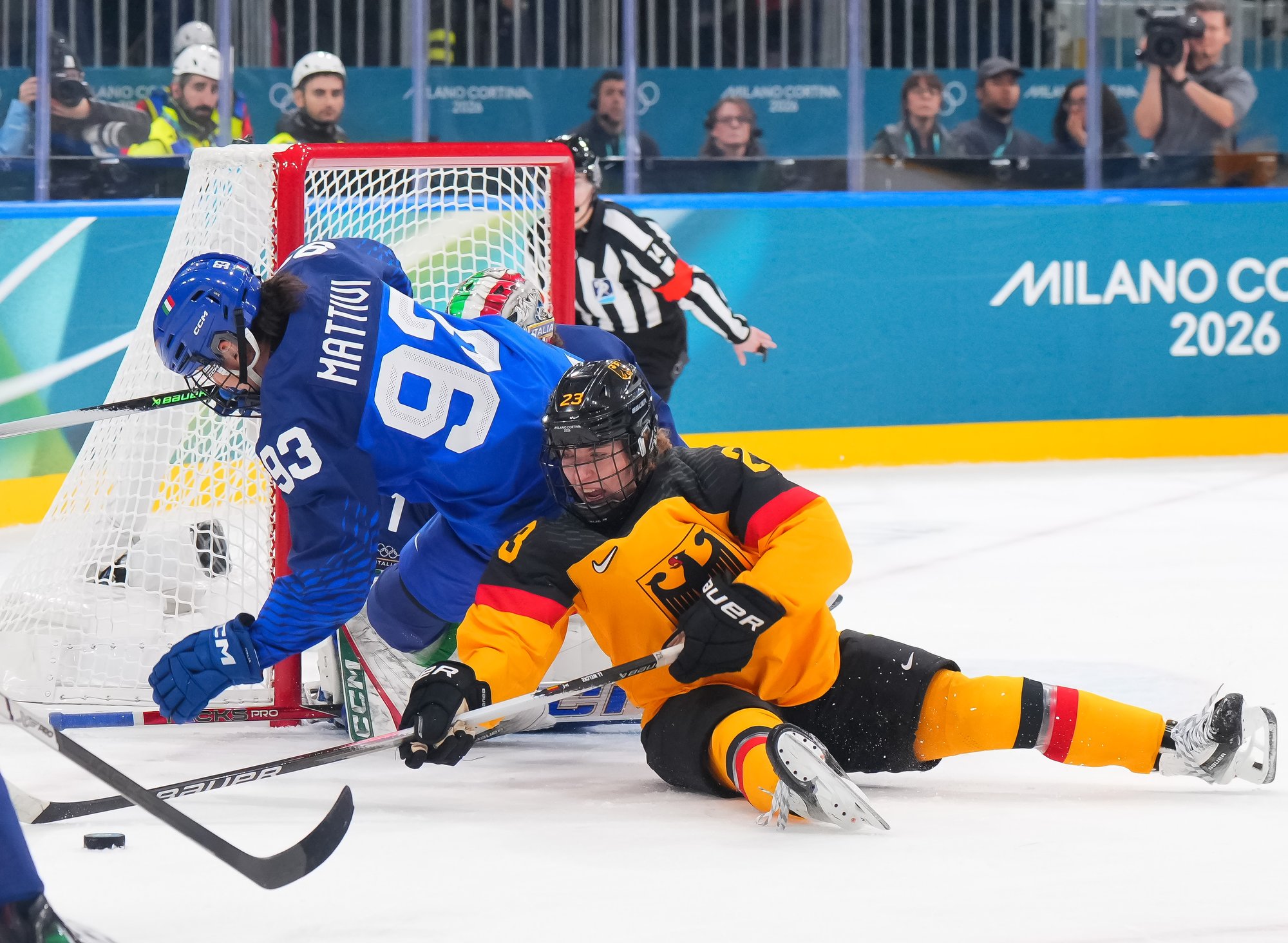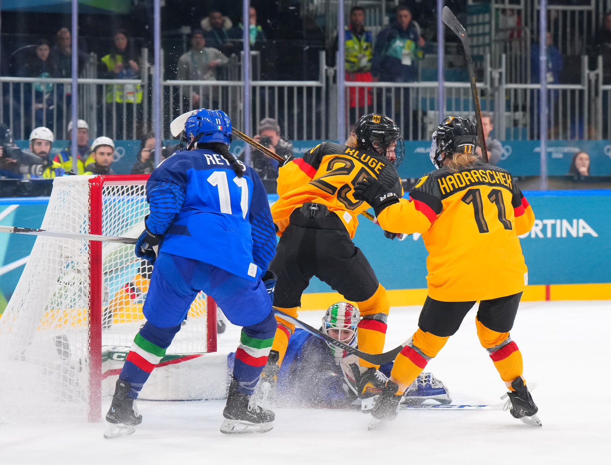 Germany held off host Italy with a 2-1 win to wrap up Group B action at the 2026 Olympic women's hockey tournament.