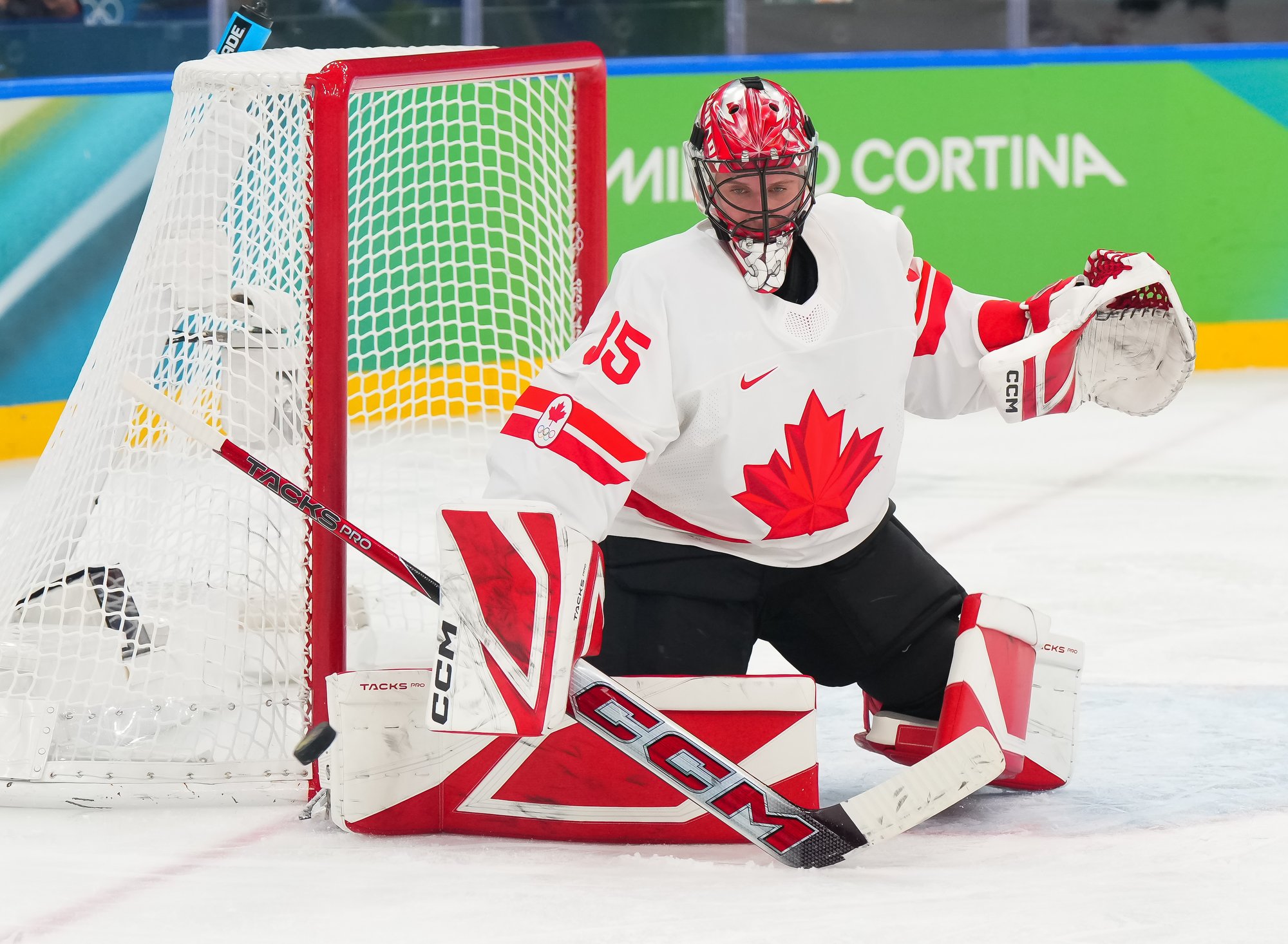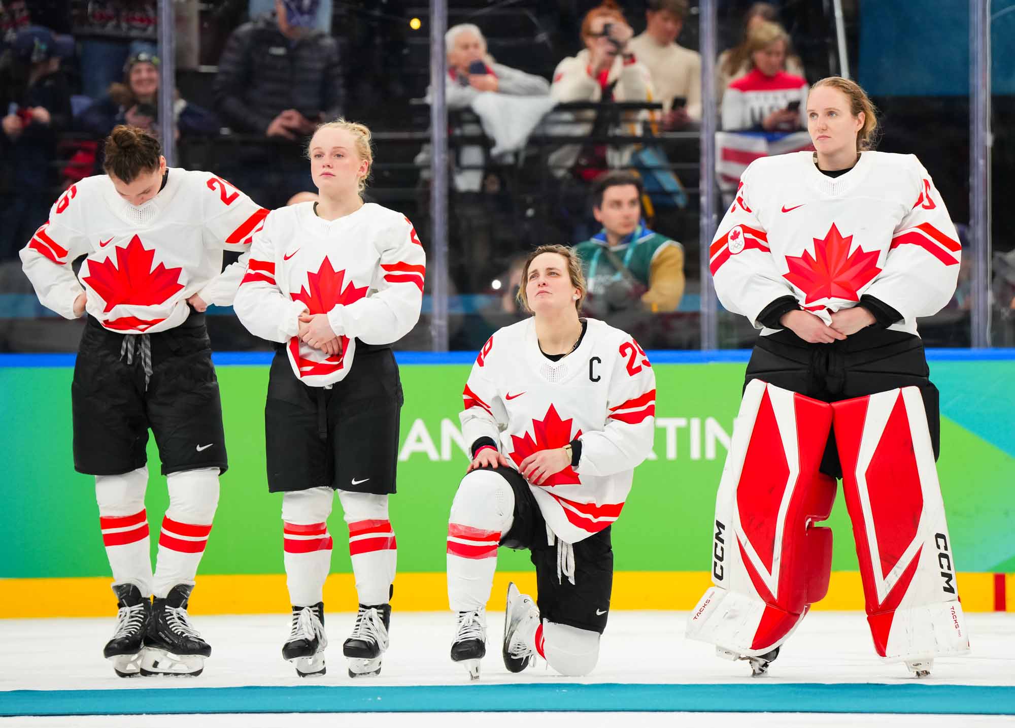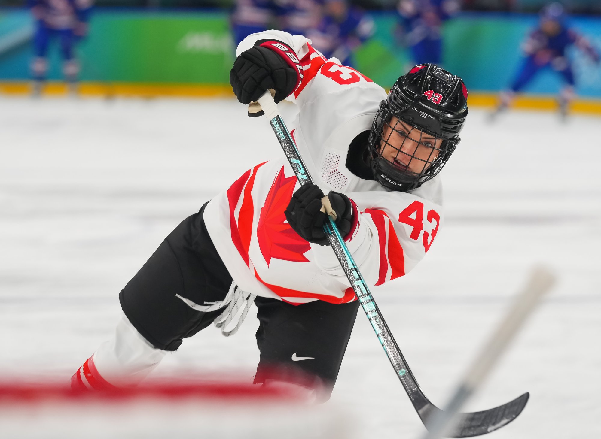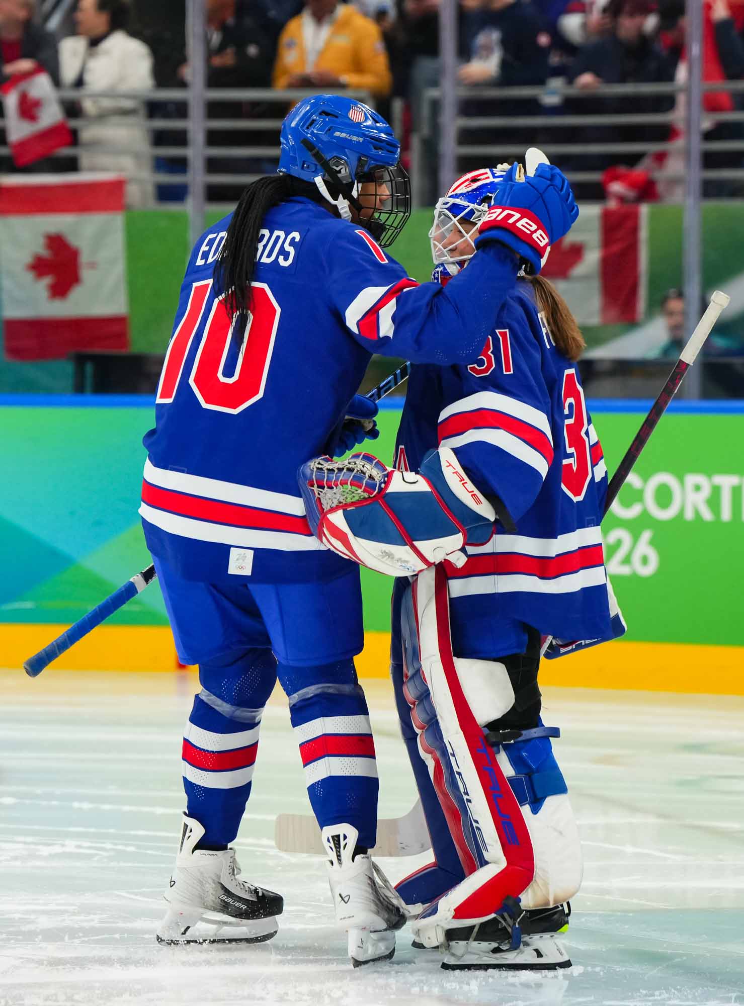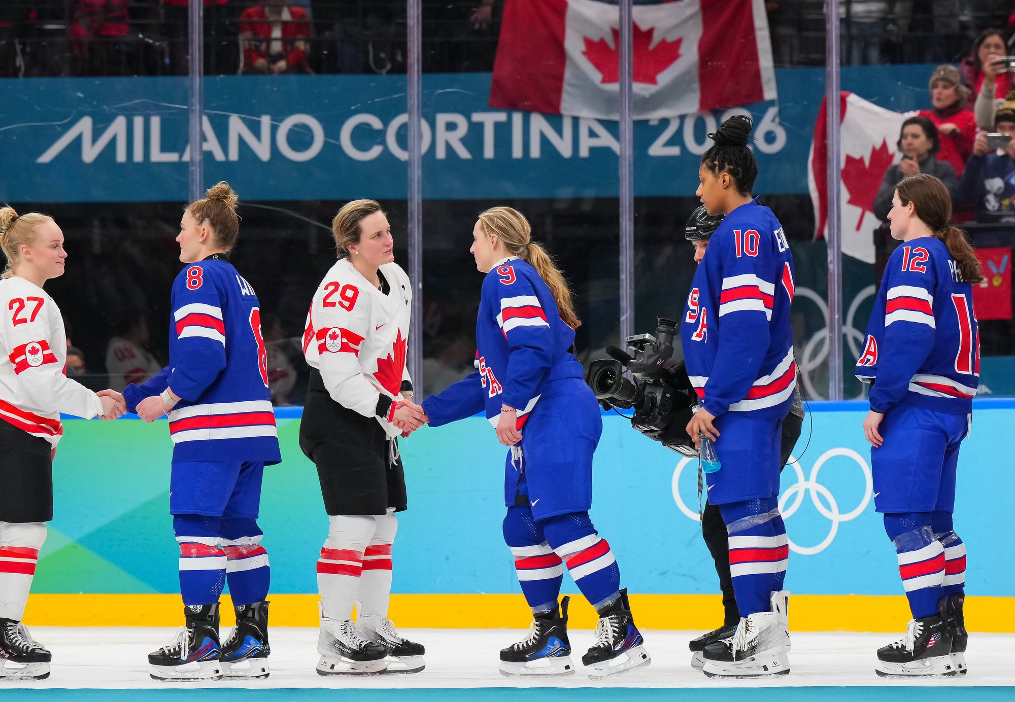 Santagiulia was packed with screaming fans, split more or less evenly between the two nations, and they had plenty to cheer for right from the get-go. Canada’s biggest challenge was to negate the U.S.’s flow and speed. To that end, they dumped the puck in and made the American defence chase the puck. In trouble in their own end, they cleared the puck to open ice, again forcing the Americans to chase down every loose puck. One-on-one battles along the boards? Not so much. Canada wasn’t interested.