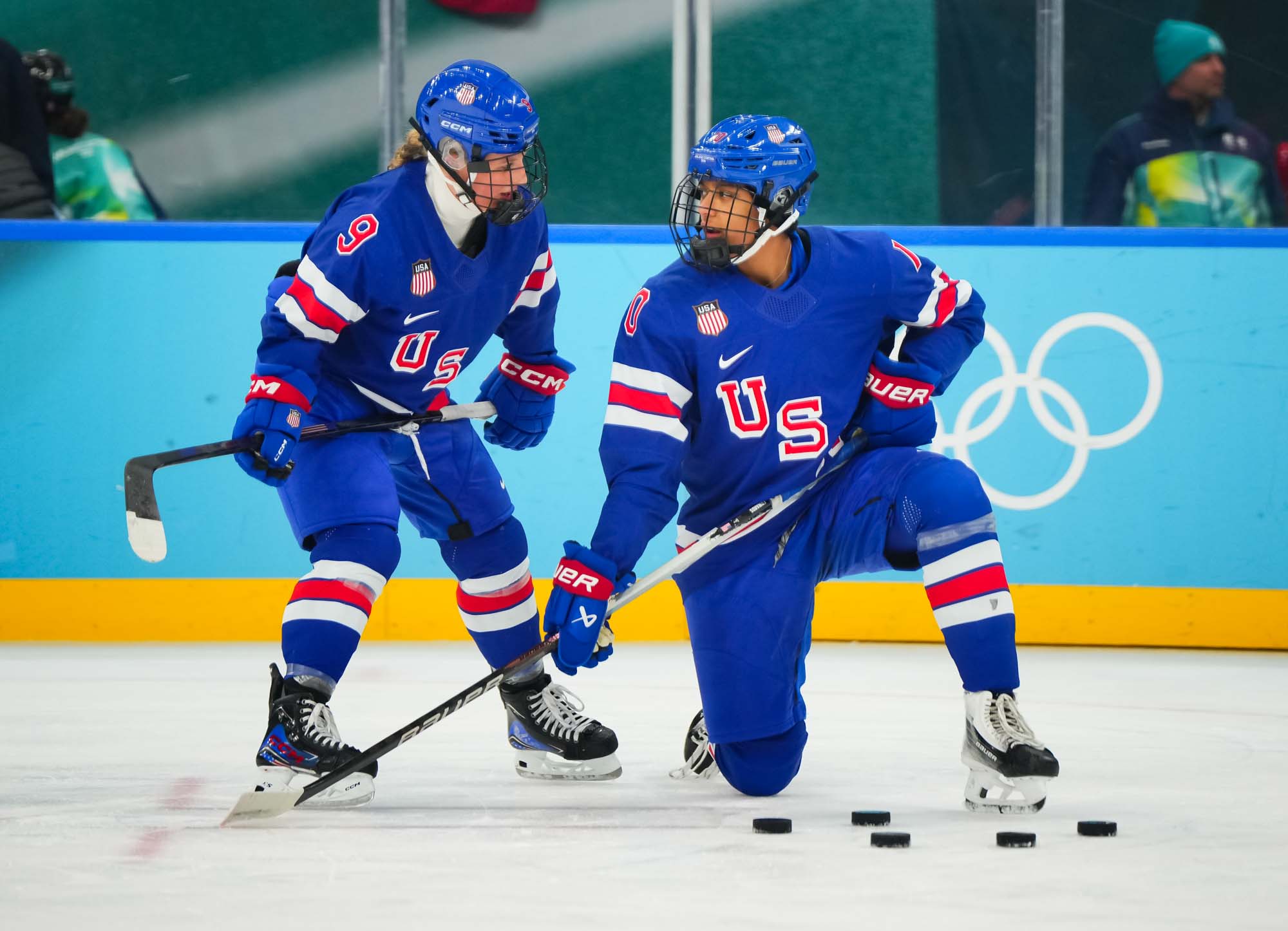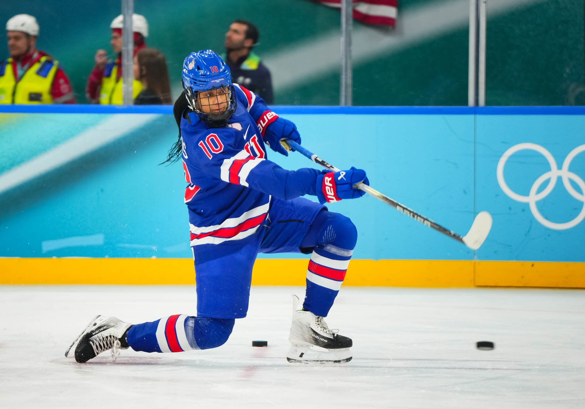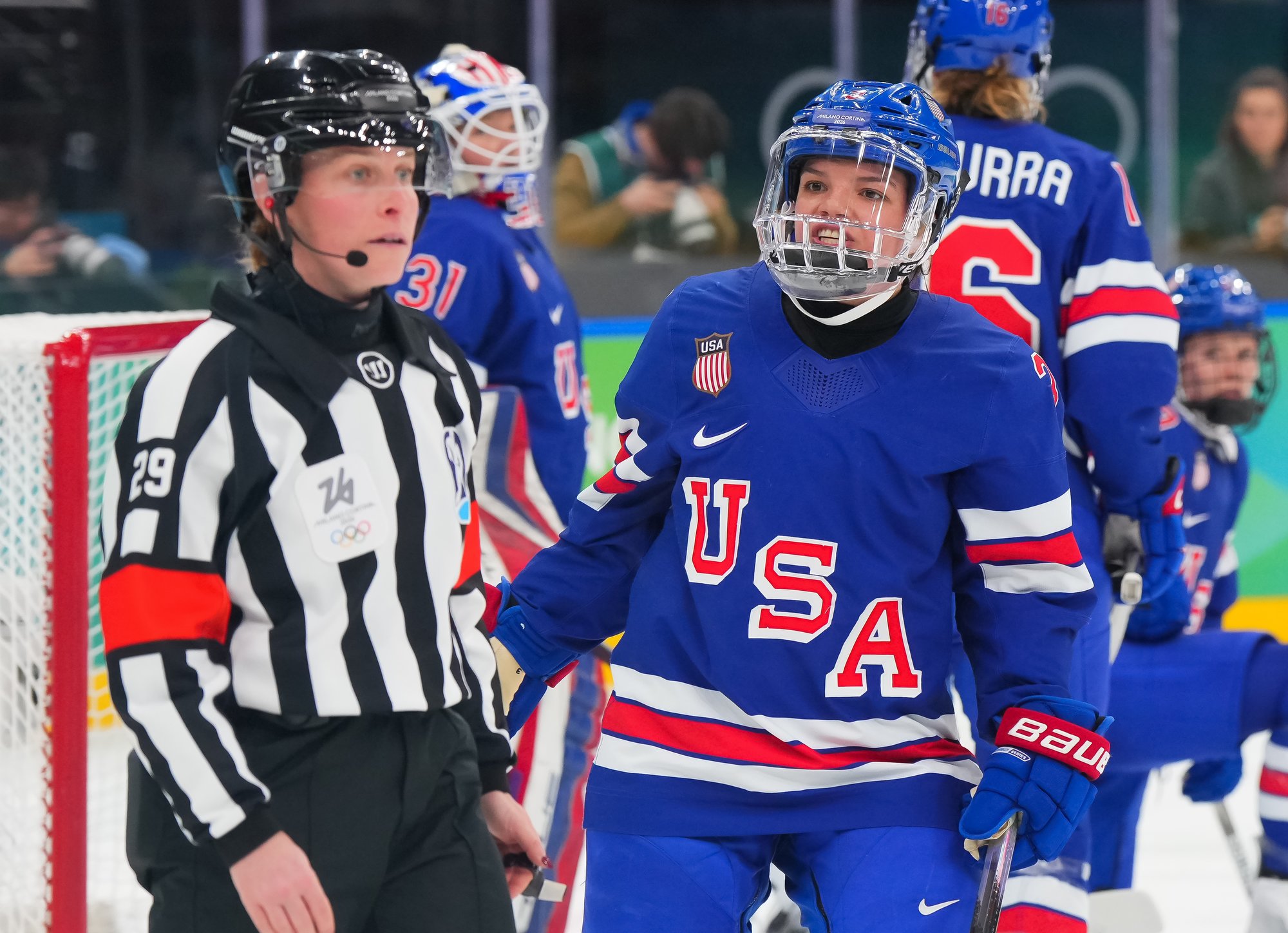The U.S. had the first and best chance of the period when Abbey Murphy created a little room coming down the right side. But she shot a little earlier than she would have liked, and Desbiens was there to make a solid save.
