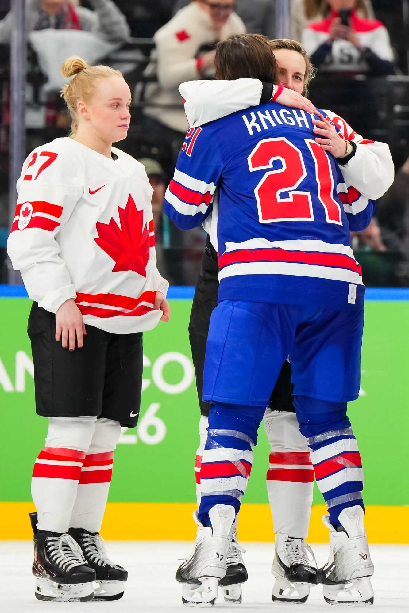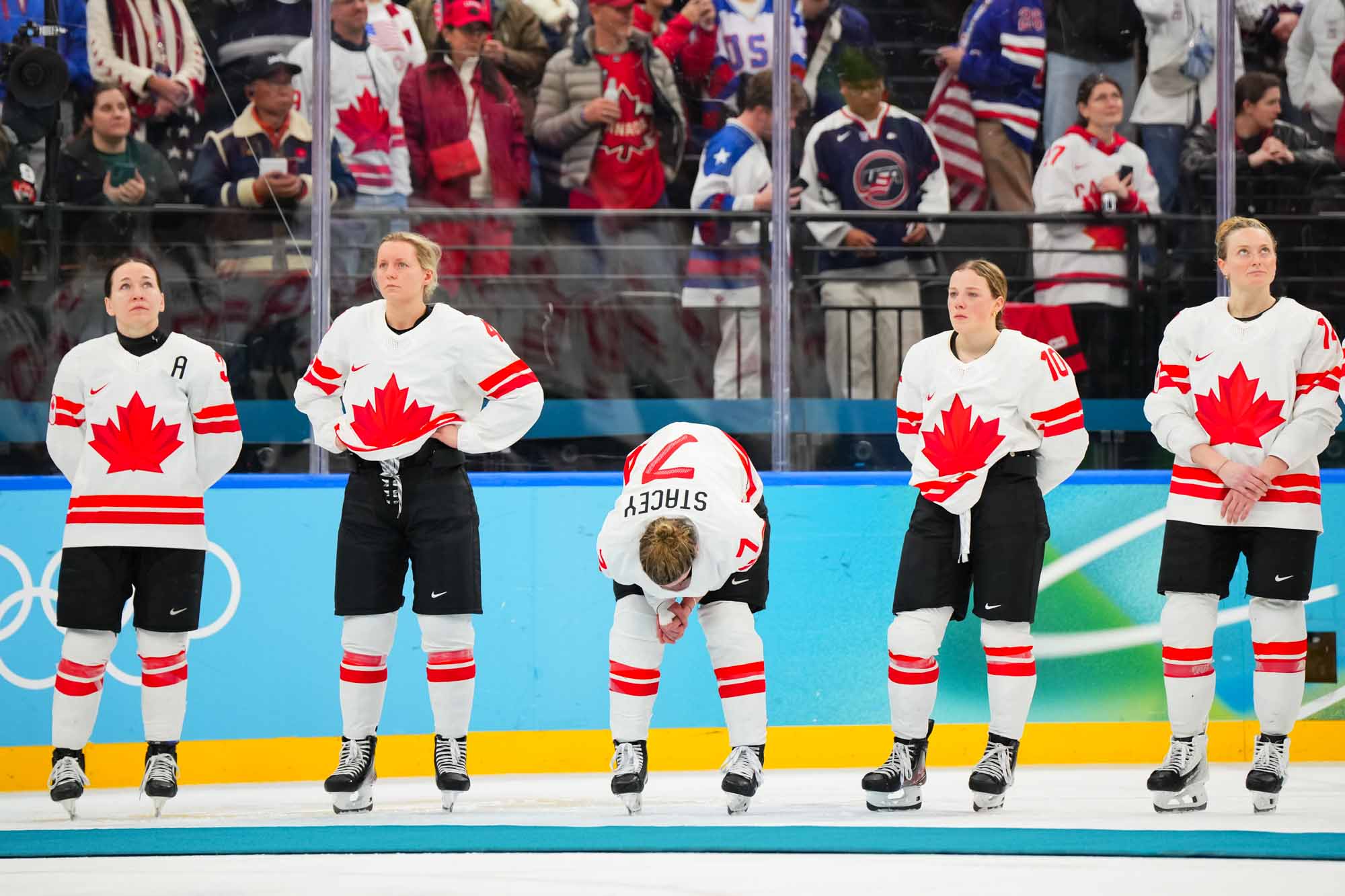 Back and forth the teams went, and when there was trouble the Canadians were happy to pin the puck along the boards rather than make a bad giveaway. The Americans used their speed more effectively, but Canada reacted with even more determination.