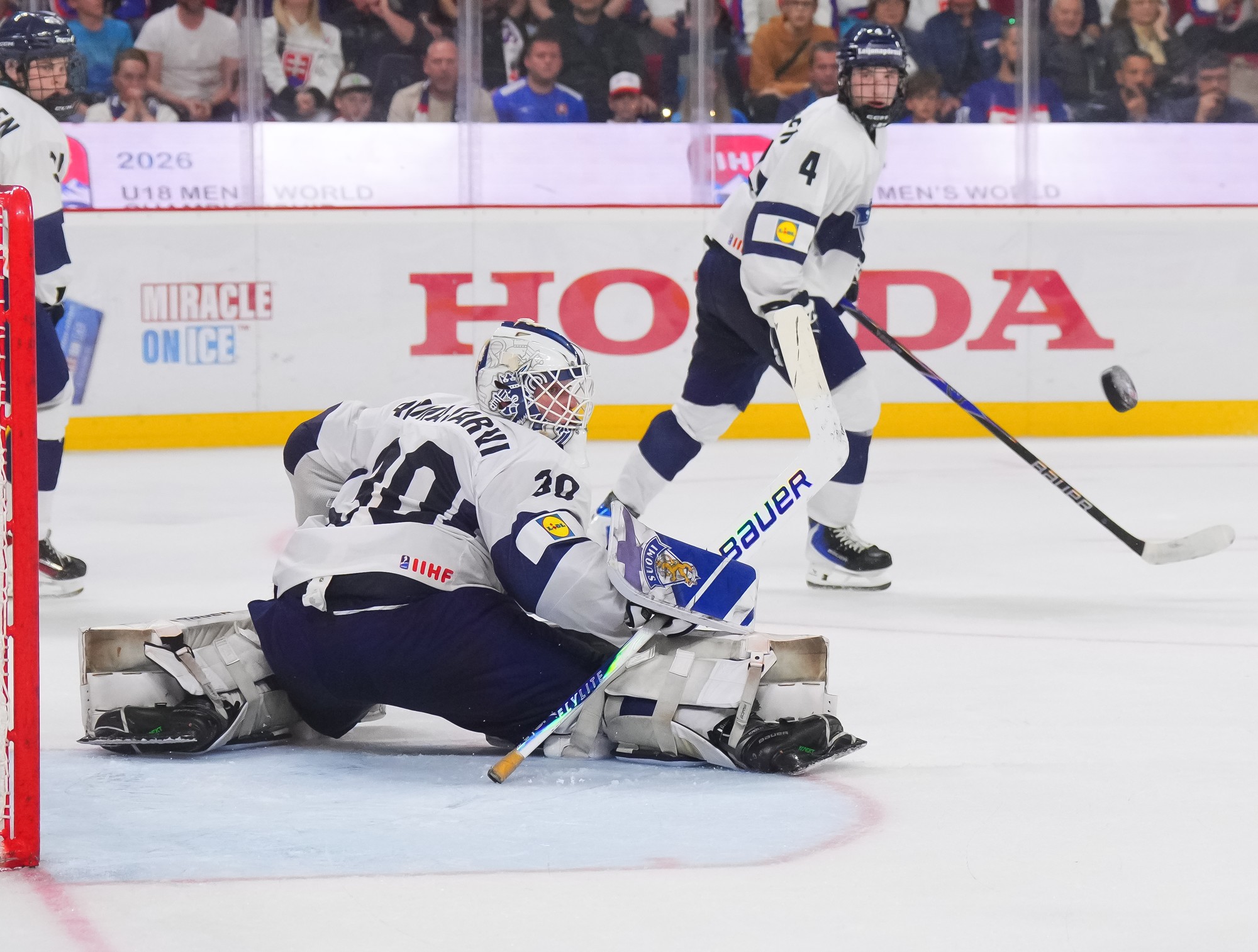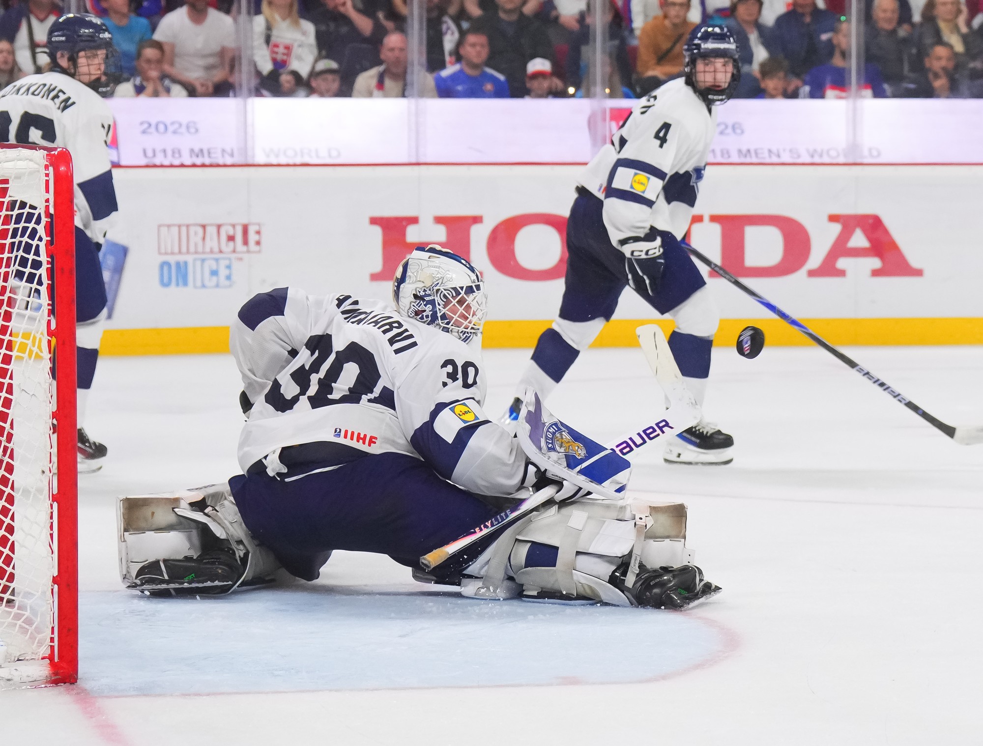 An overtime goal from Oliver Suvanto ended Slovakia’s winning start at the 2026 IIHF U18 Men’s World Championship.