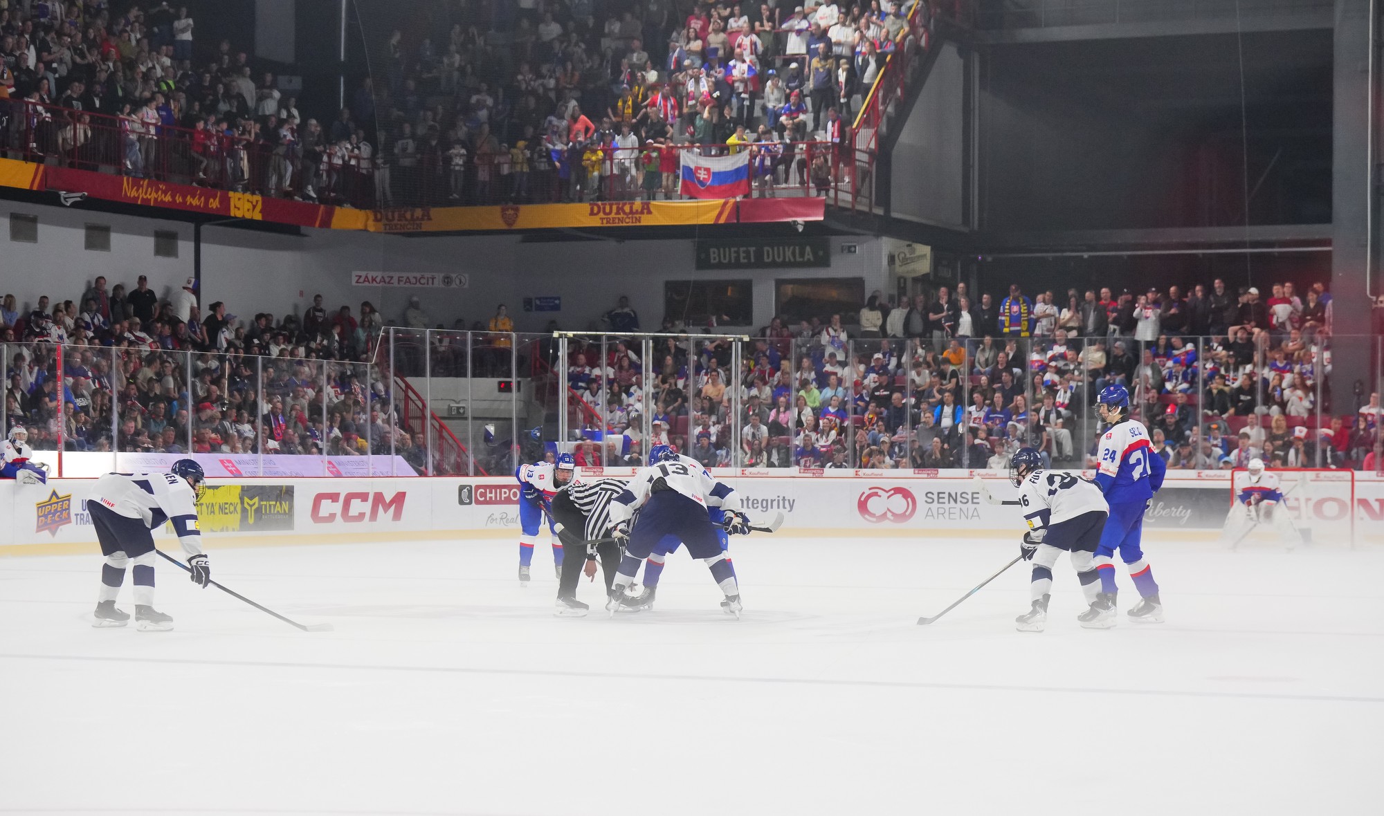 A sell-out crowd at the Pavol Demitra Stadium in Trencin witnessed a thrilling game that saw the lead change hands repeatedly before regulation finished tied at 4-4.
