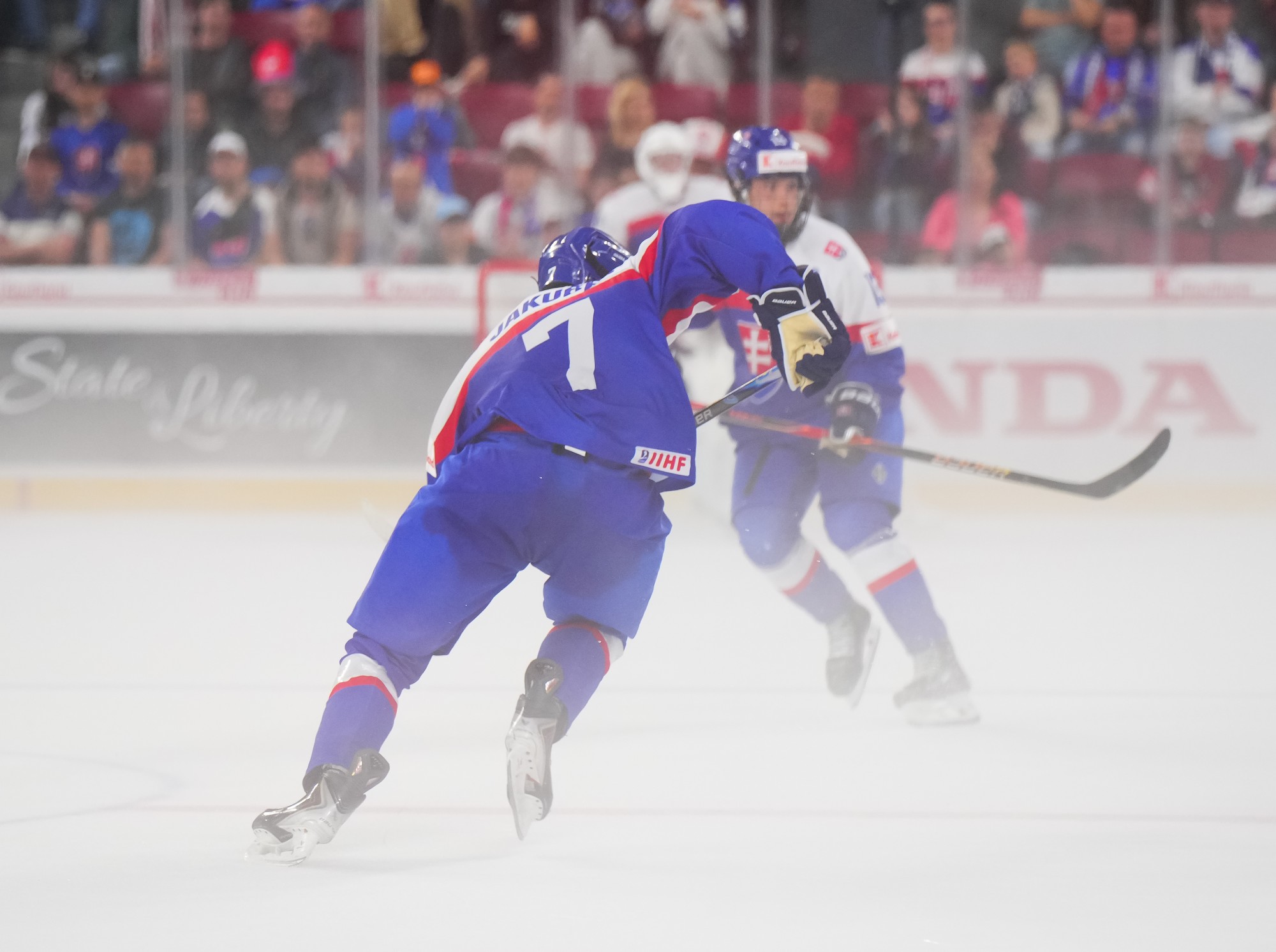 But after 1:50 of the extras – the first overtime we’ve seen in Trencin in this tournament – Suvanto jumped off the bench in a well-timed line change. He skated onto Luca Santala’s feed after the forward had circled behind the Slovak net, and advanced to beat Denis Celko and win the game.
