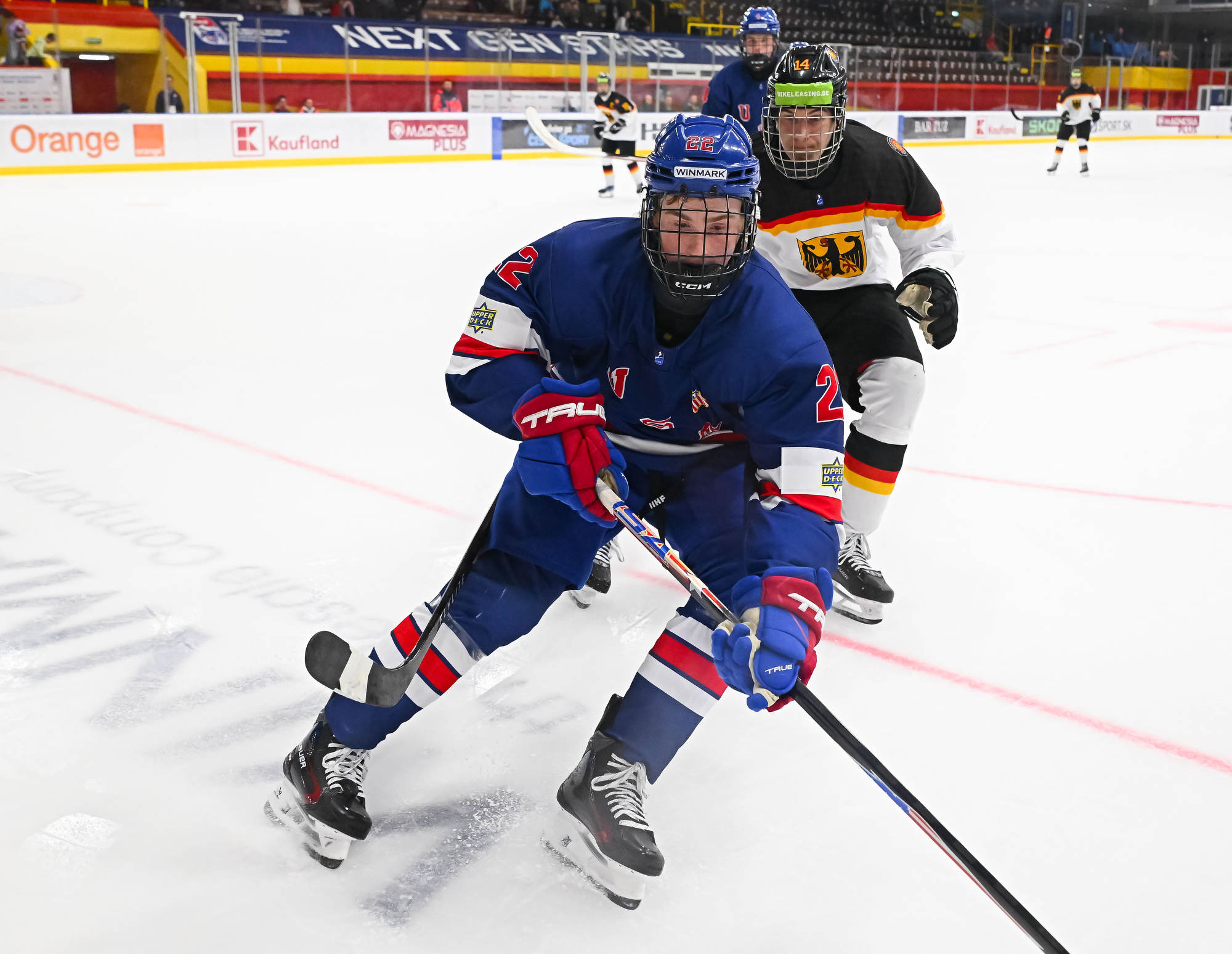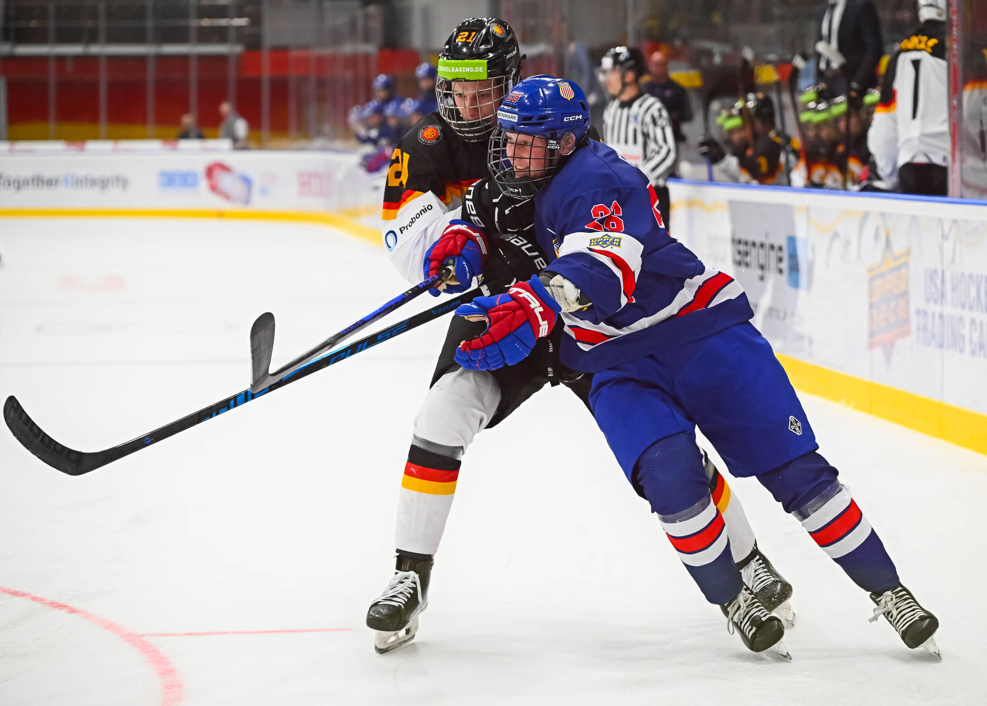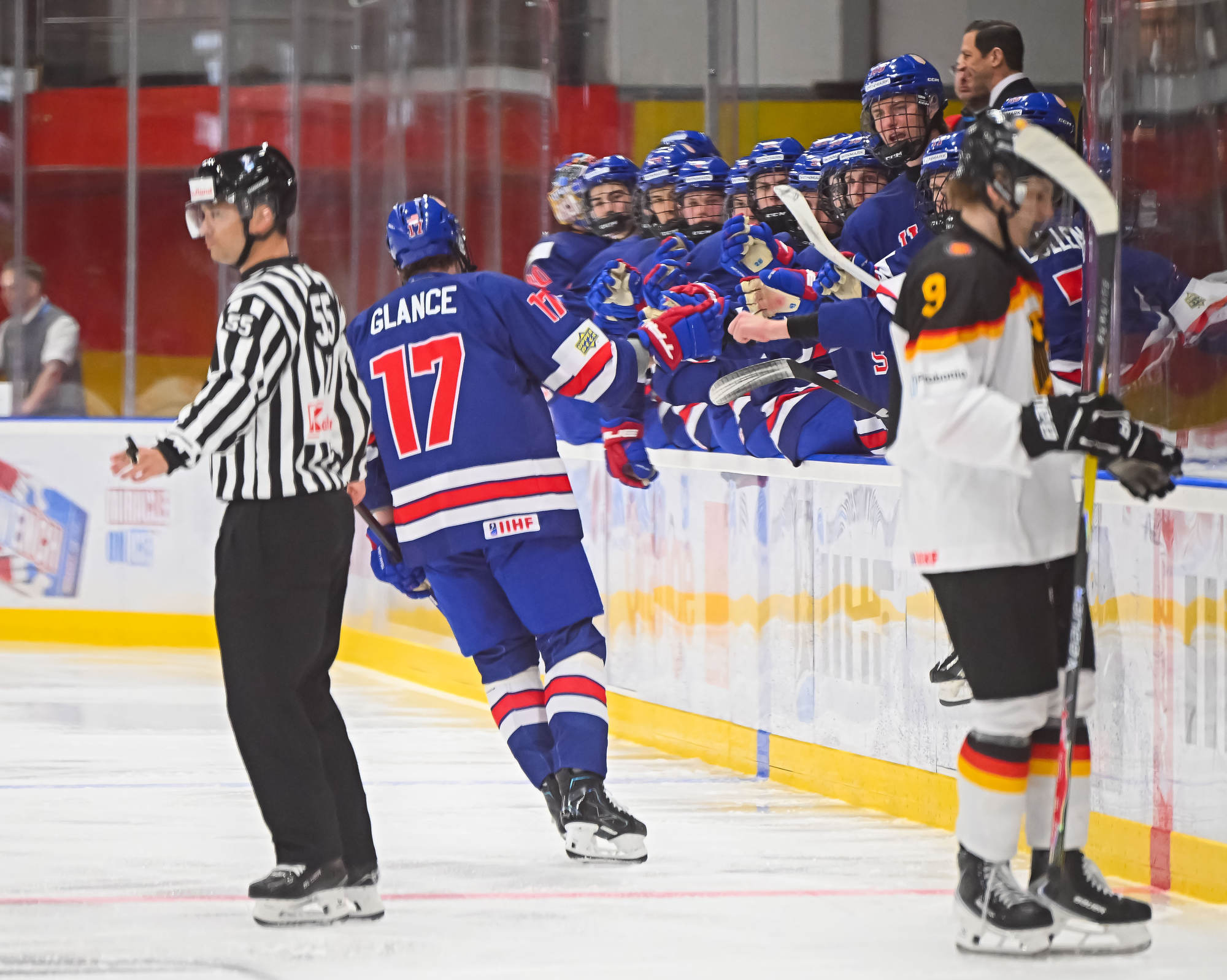 Glance opened the scoring at 1:25, picking the corner high blocker-side on German starting goaltender Max Bolle. Just 44 seconds later, the U.S. was on the power play when Glance found Wyatt Cullen alone at the side of the net for the tap-in goal.
