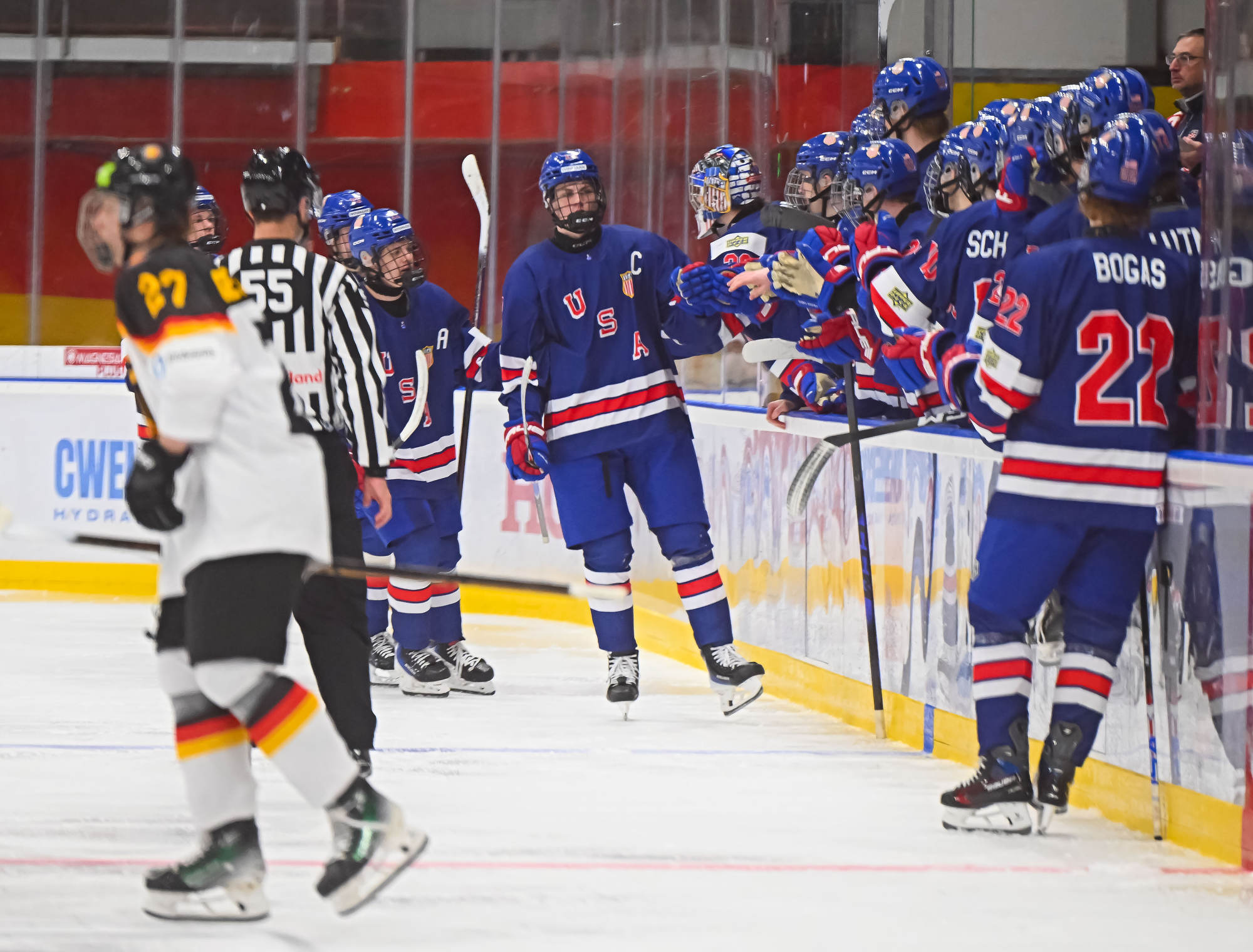 Jamie Glance had a goal and three assists for the Americans, with Wyatt Cullen, Mikey Berchild and Lukas Zajic recording three points each. The USA outshot Germany 53-26 in the game, with Luke Carrithers making 24 stops.