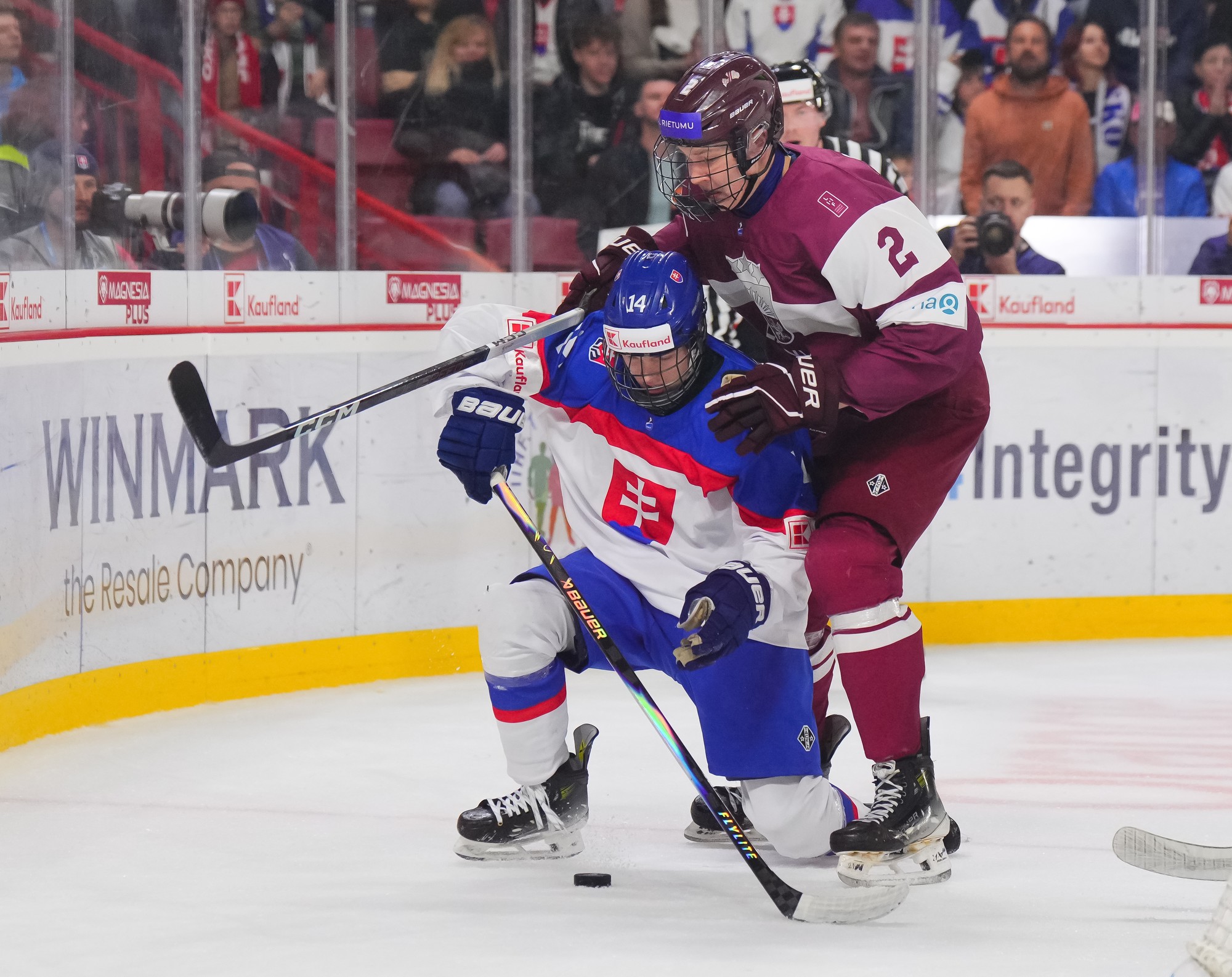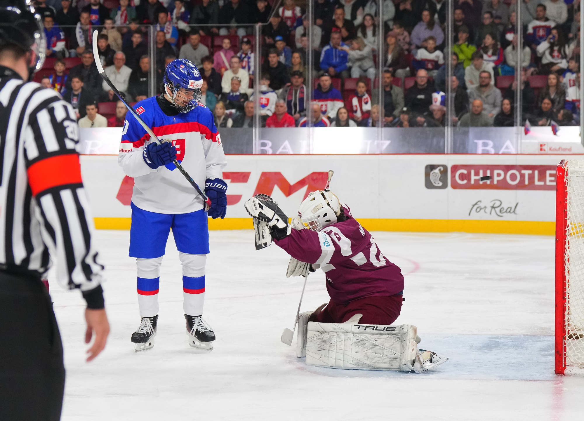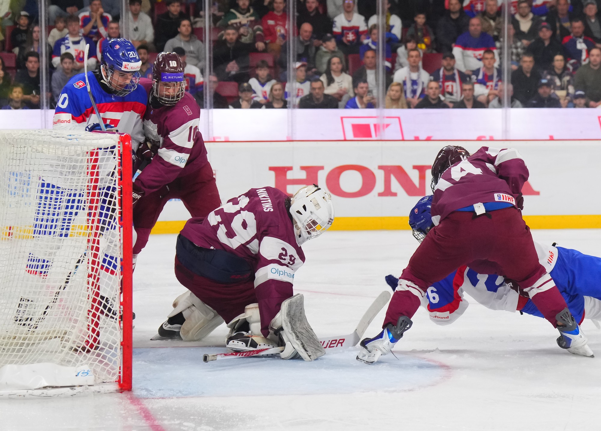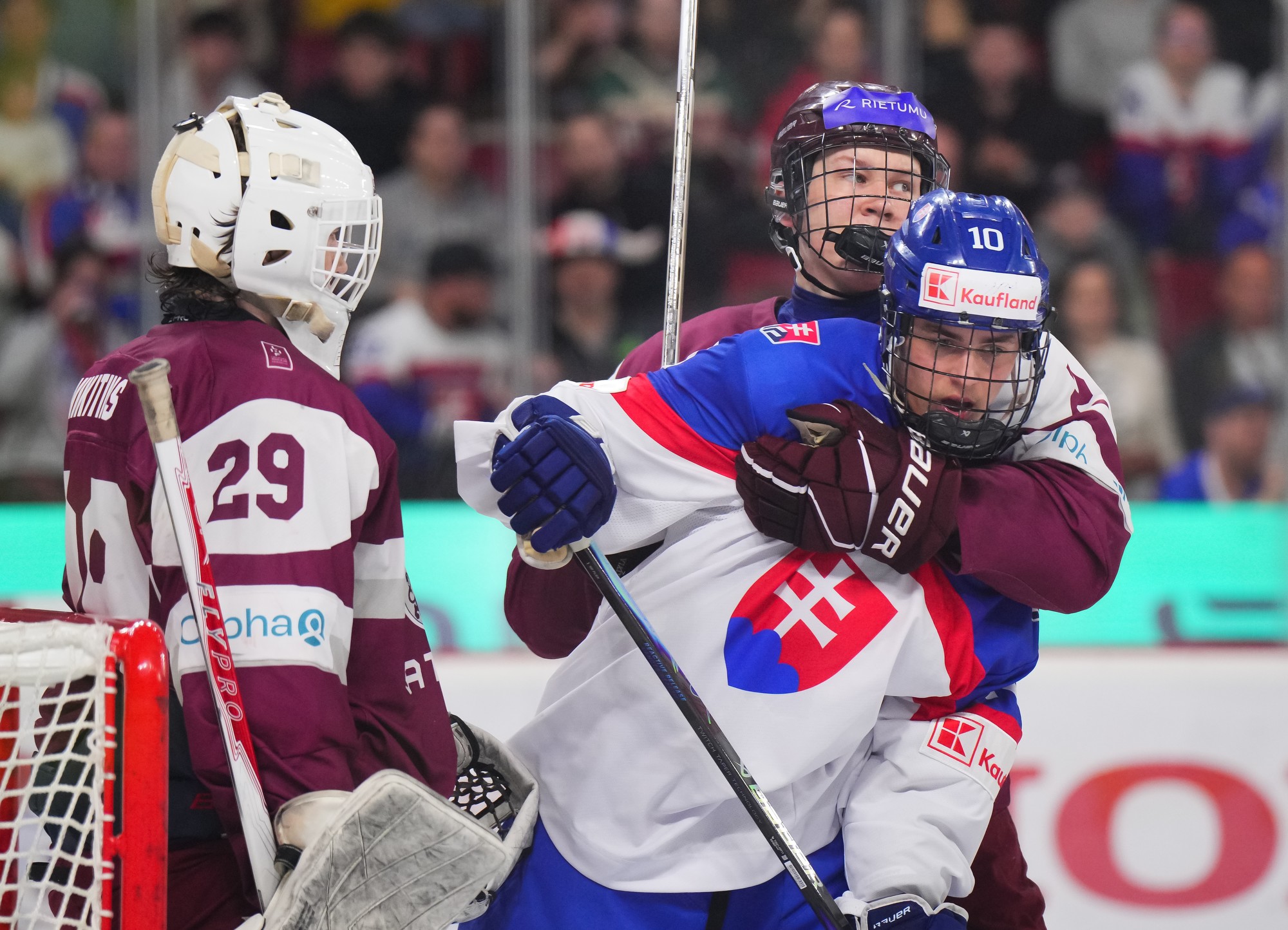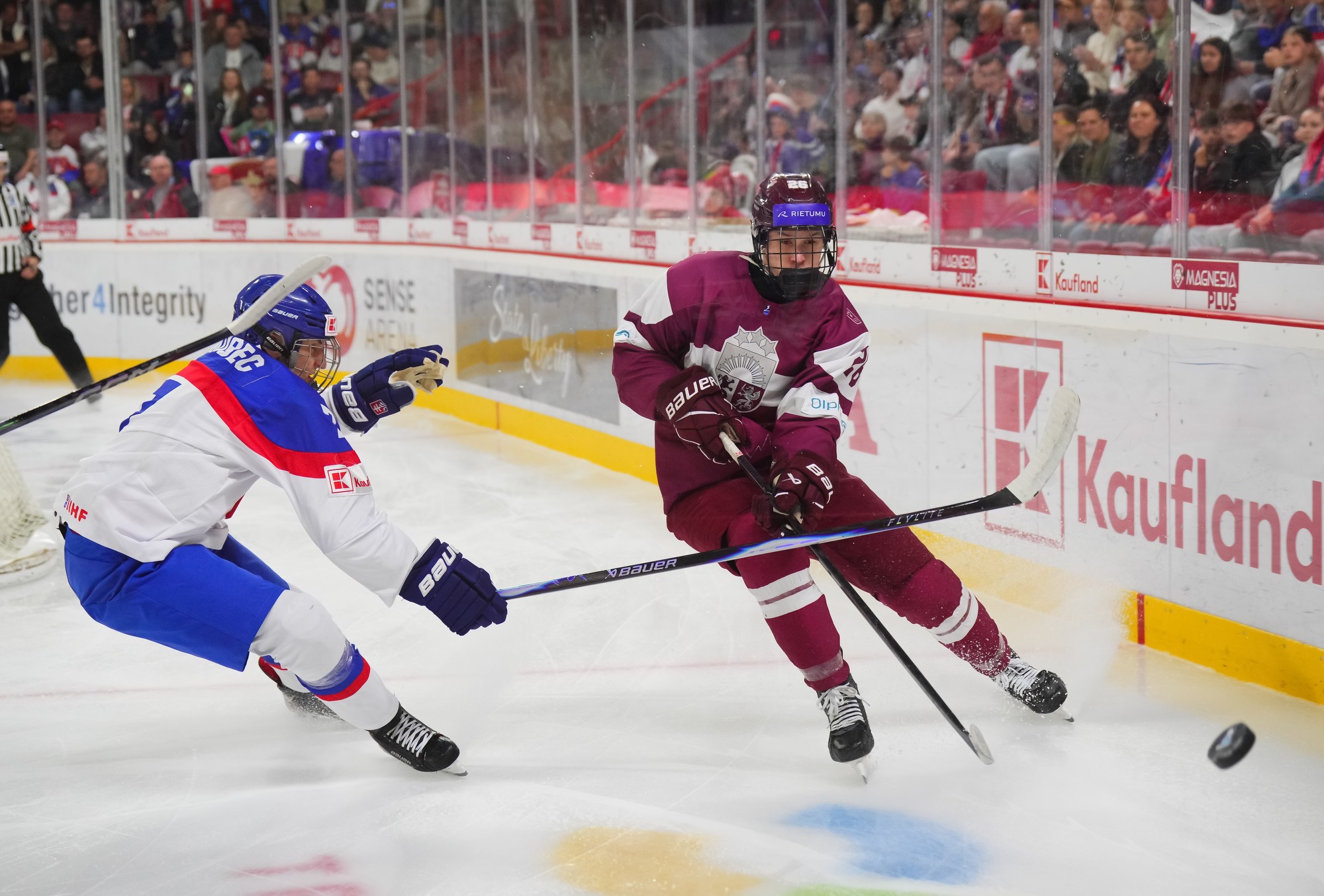 Kristers Obuks scored late in the first period for Latvia, making a game of it until Slovakia took it away early in the third.