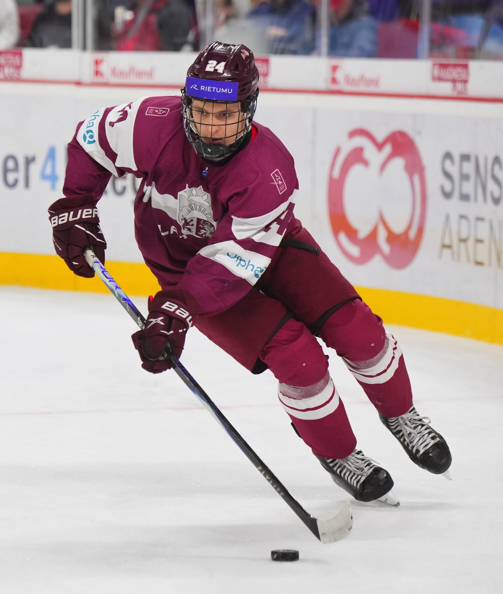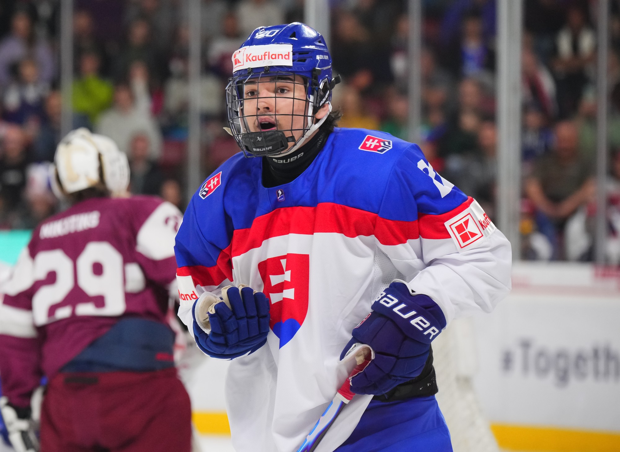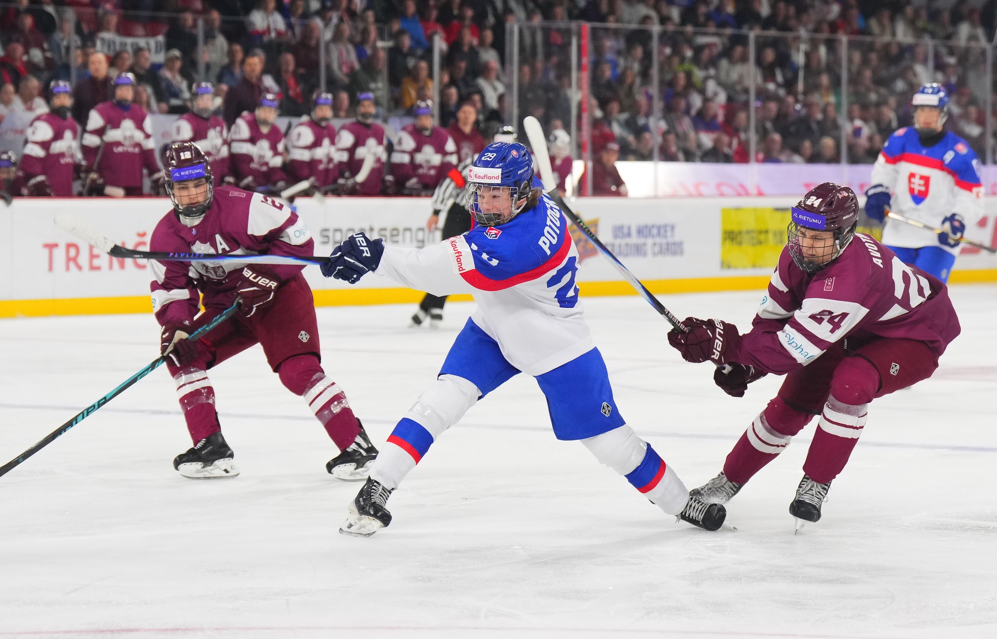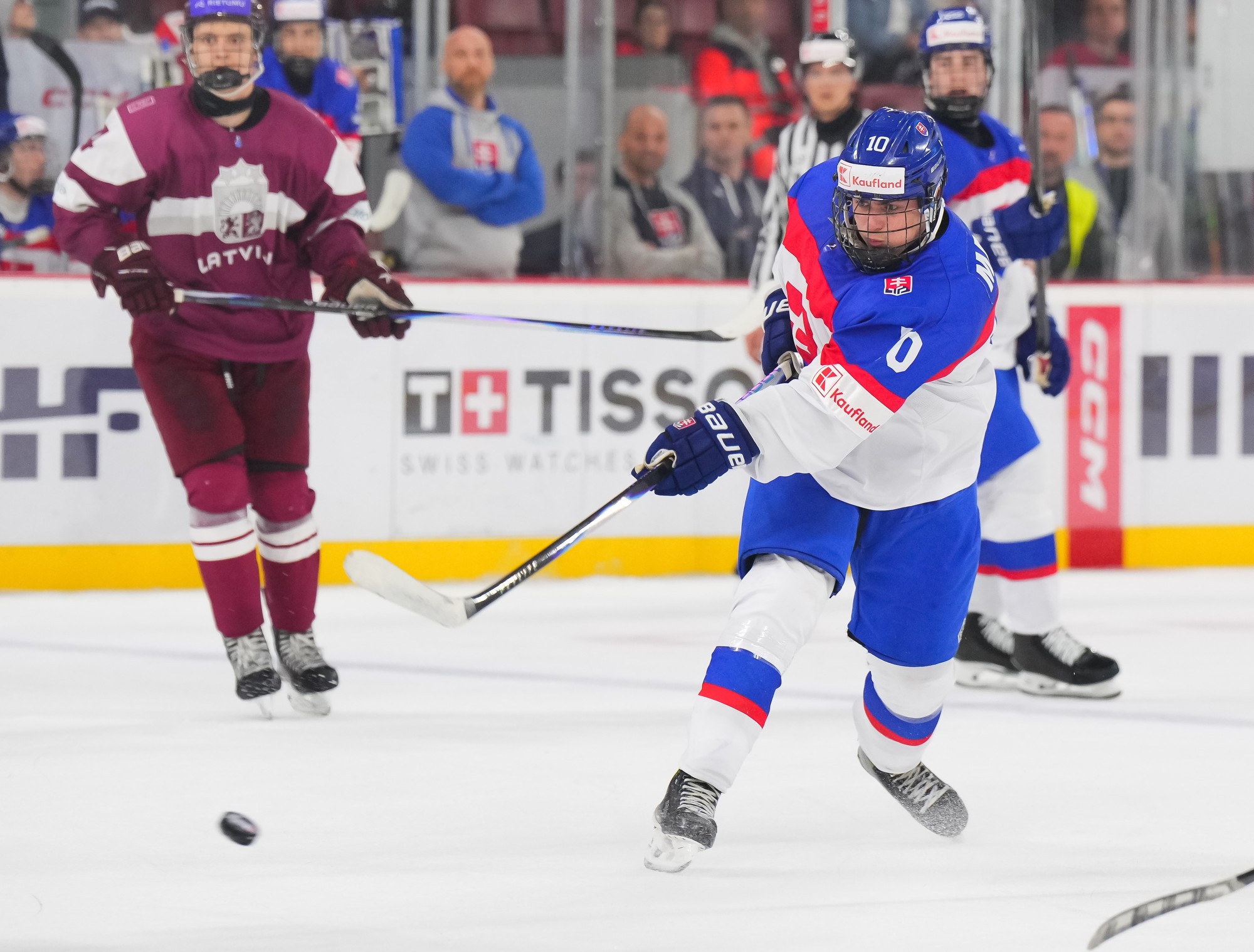 Kristers Obuks scored late in the first period for Latvia, making a game of it until Slovakia took it away early in the third.