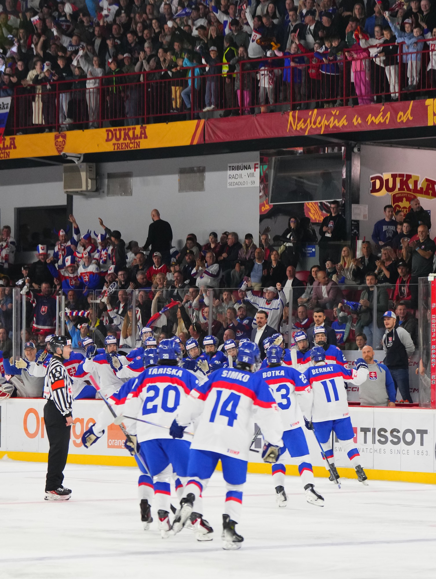 Slovakia celebrated another big win as the drums pounded in the arena. And Martin Dendis's team goes into the quarter-finals with every hope of claiming a medal.